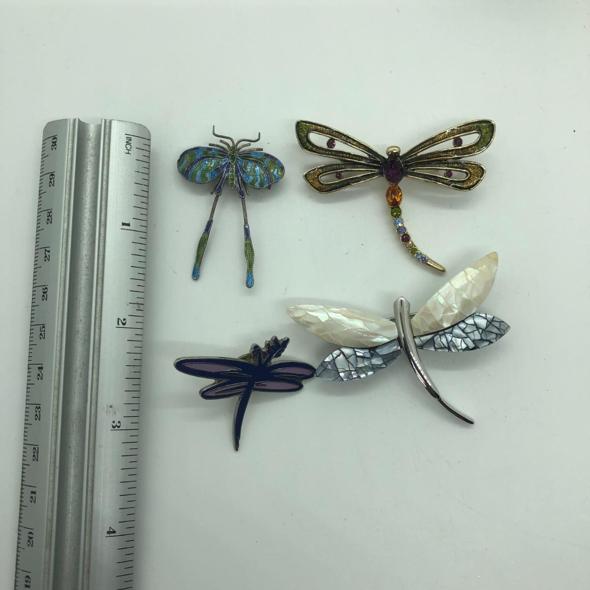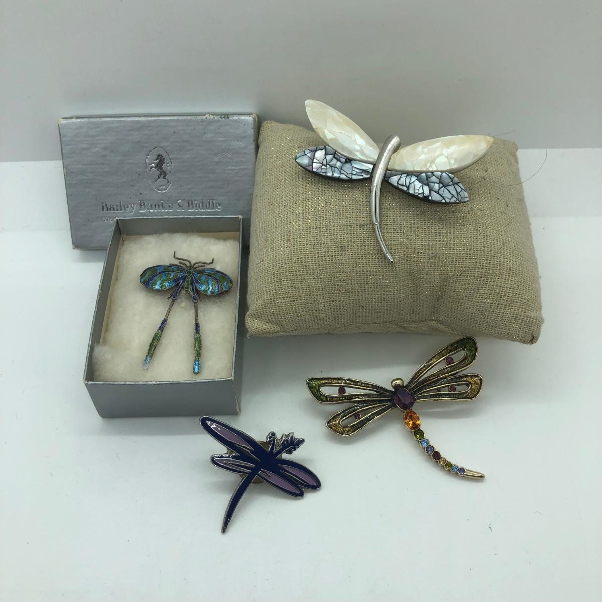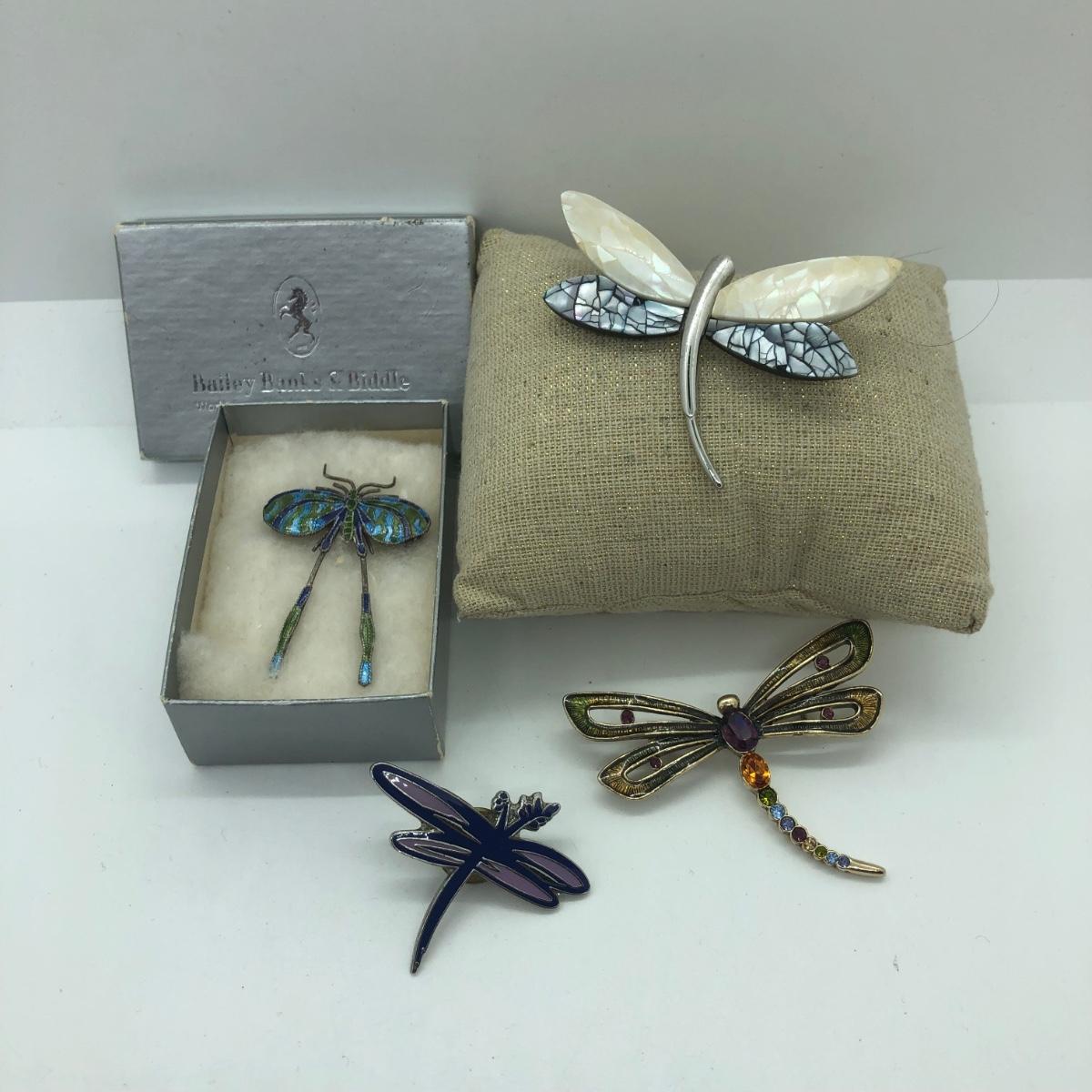 LOT 37J: Dragonfly Pins & Brooches - Vintage 925 Sterling Silver and Intricate Enamel Work Brooch, Monet Brooch & More