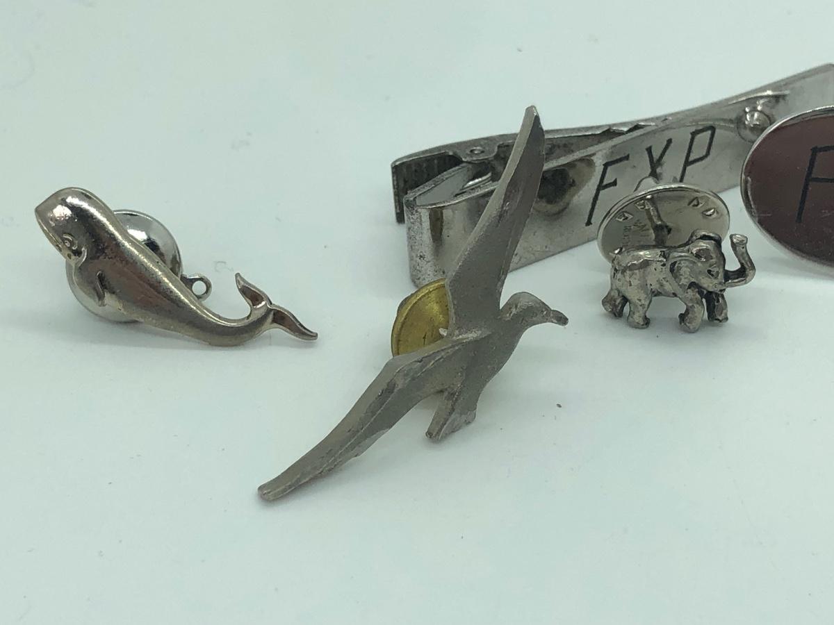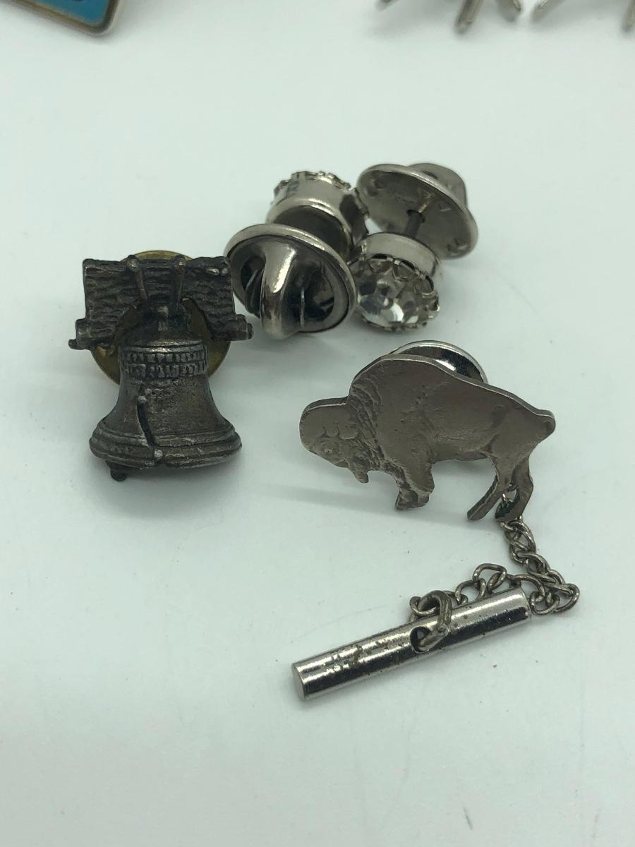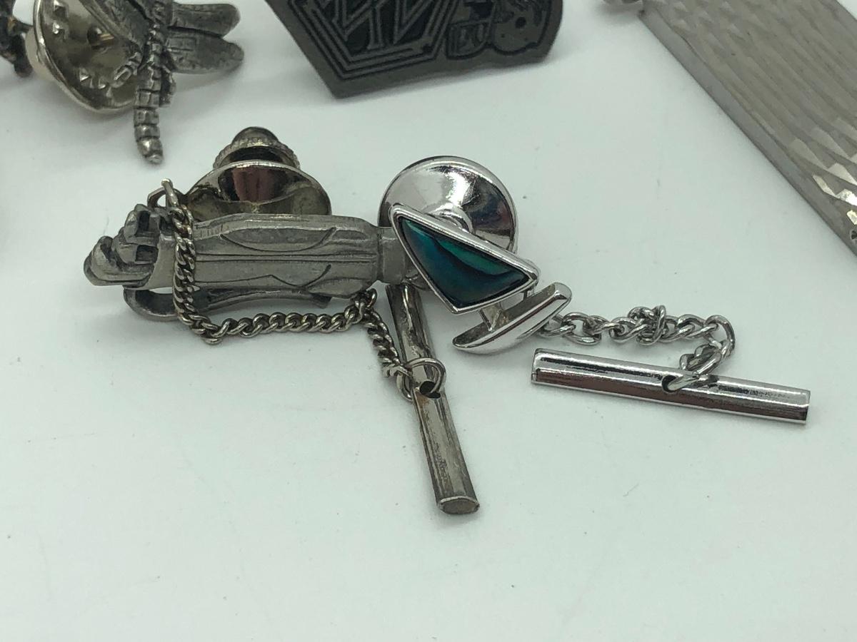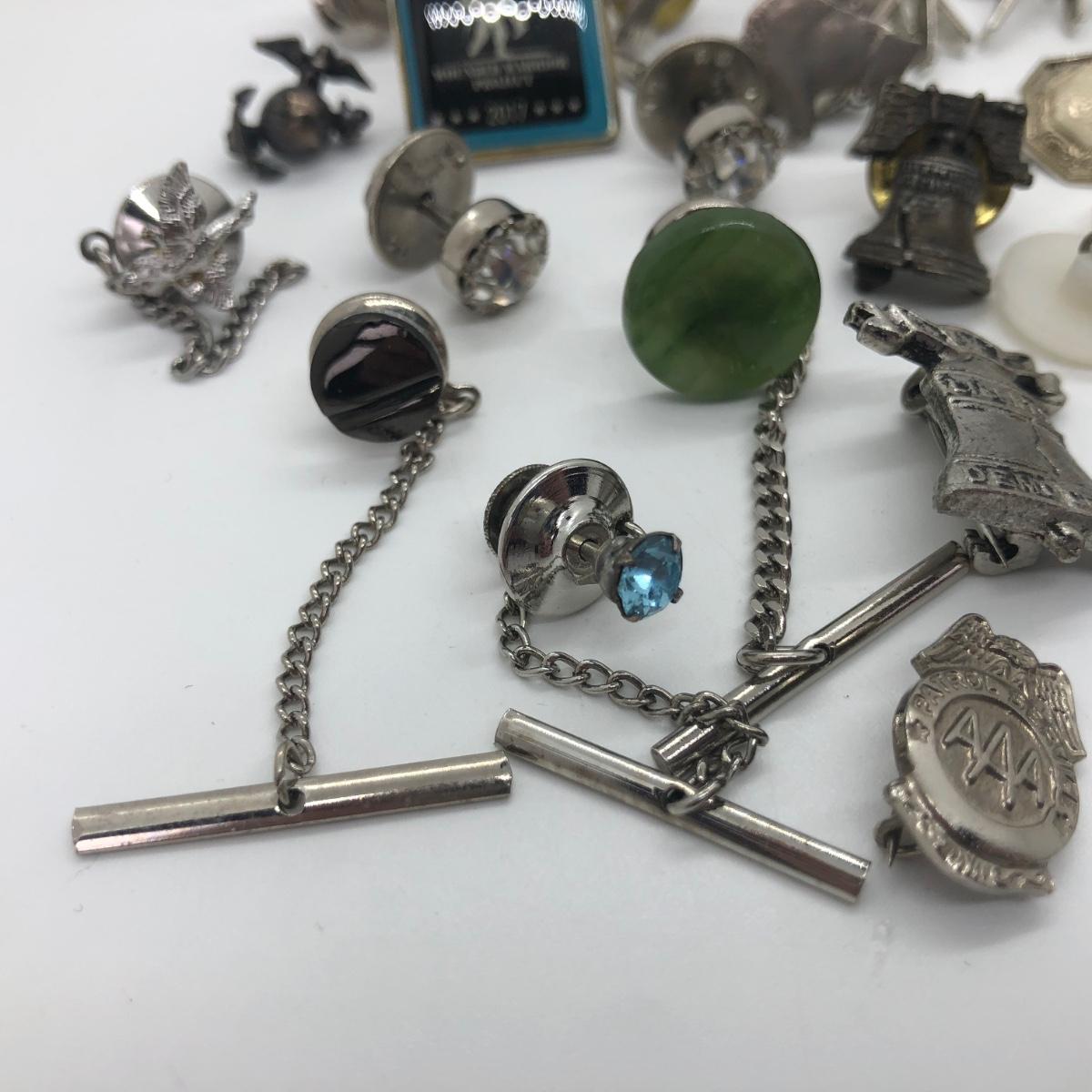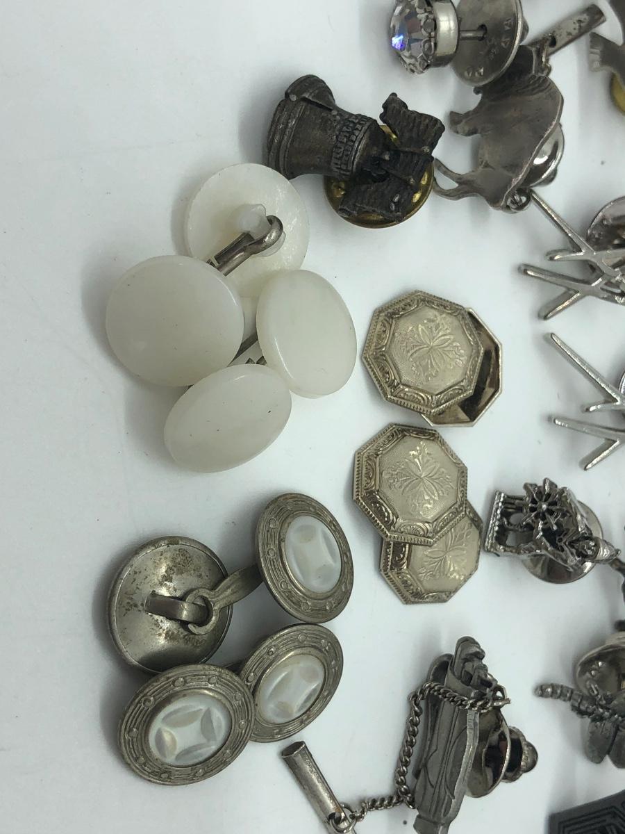 LOT 41J: Silver Tone Collection of Pins, Cufflinks, Tie Tacks & More