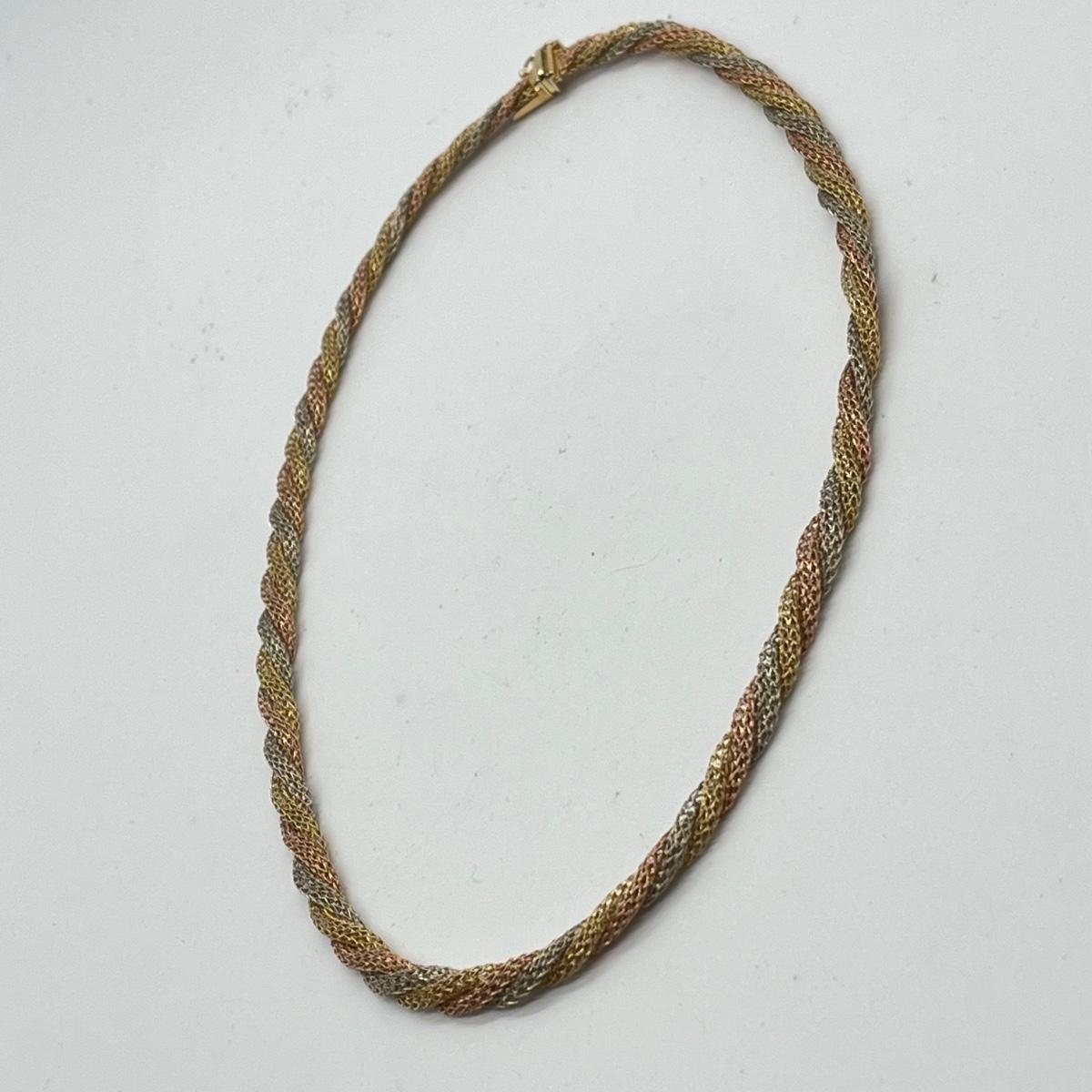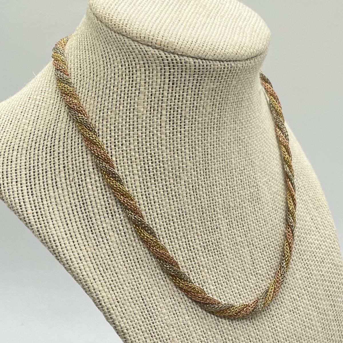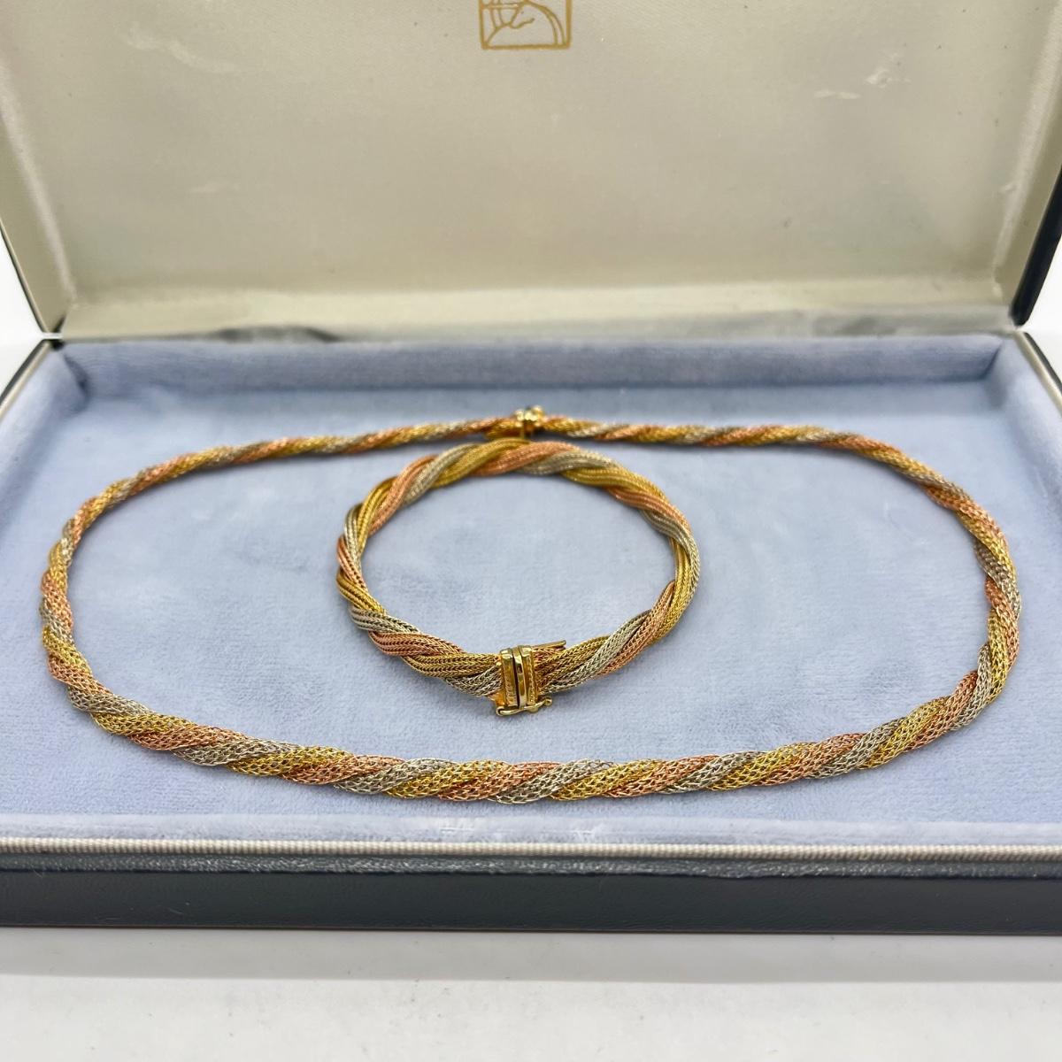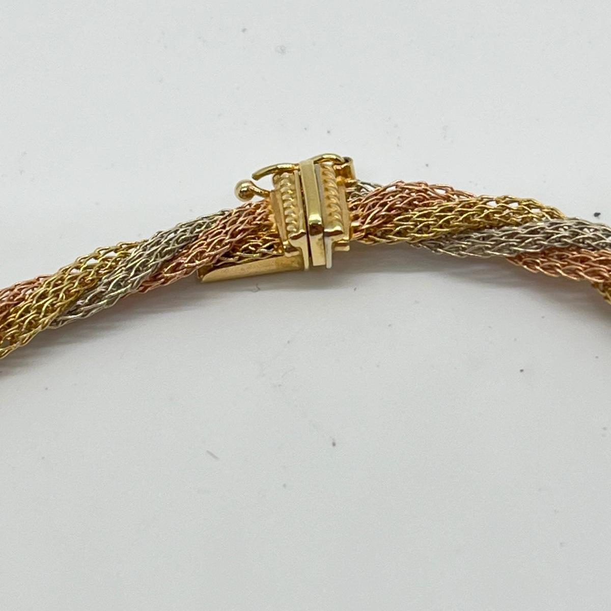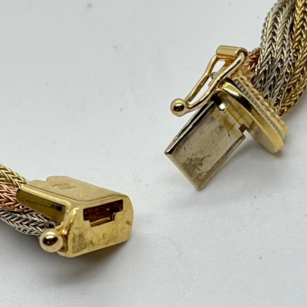 LOT 87J: 14K Italian Yellow, Rose and White Gold Woven Braided Wheat Link Mesh Bracelet and Necklace