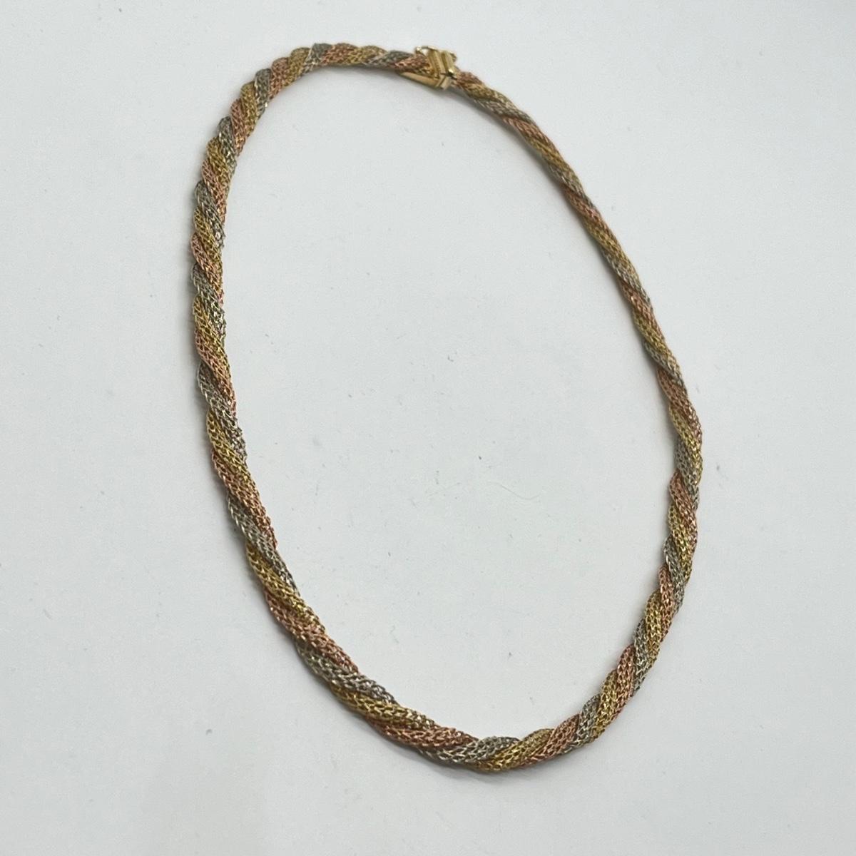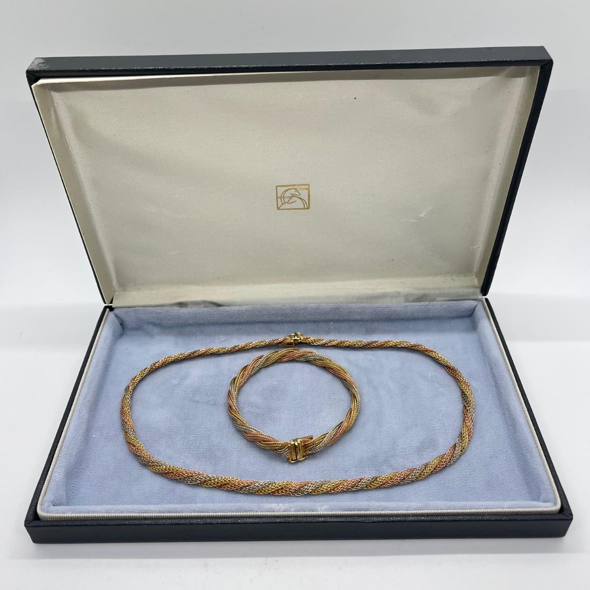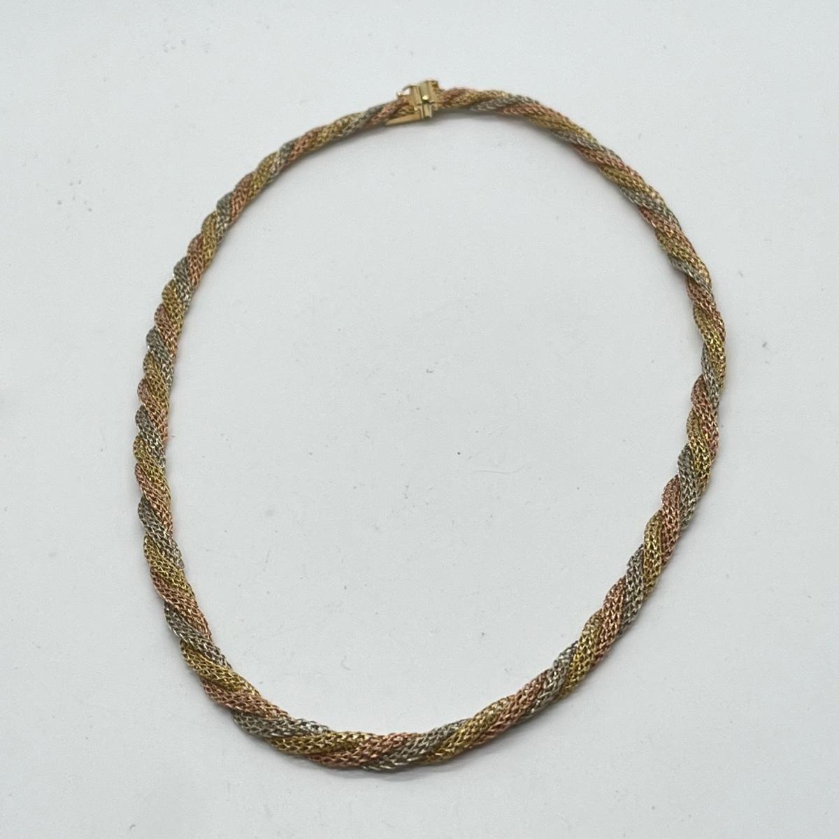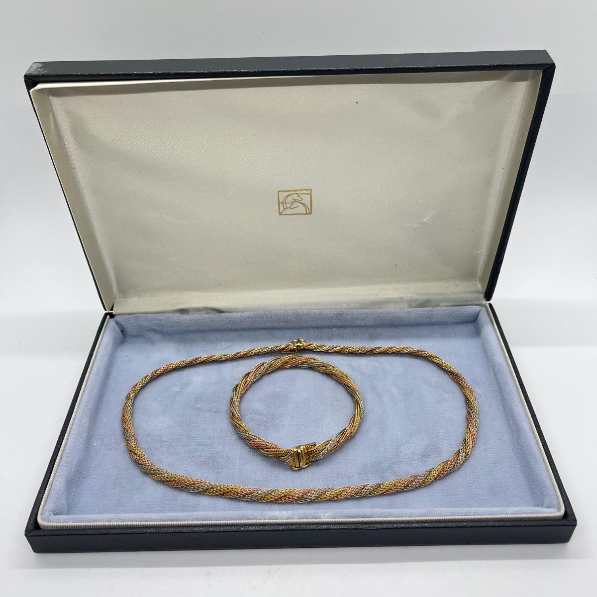 LOT 87J: 14K Italian Yellow, Rose and White Gold Woven Braided Wheat Link Mesh Bracelet and Necklace