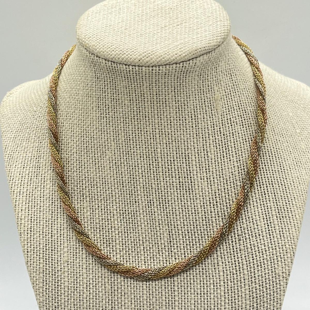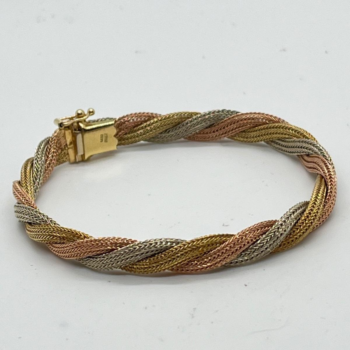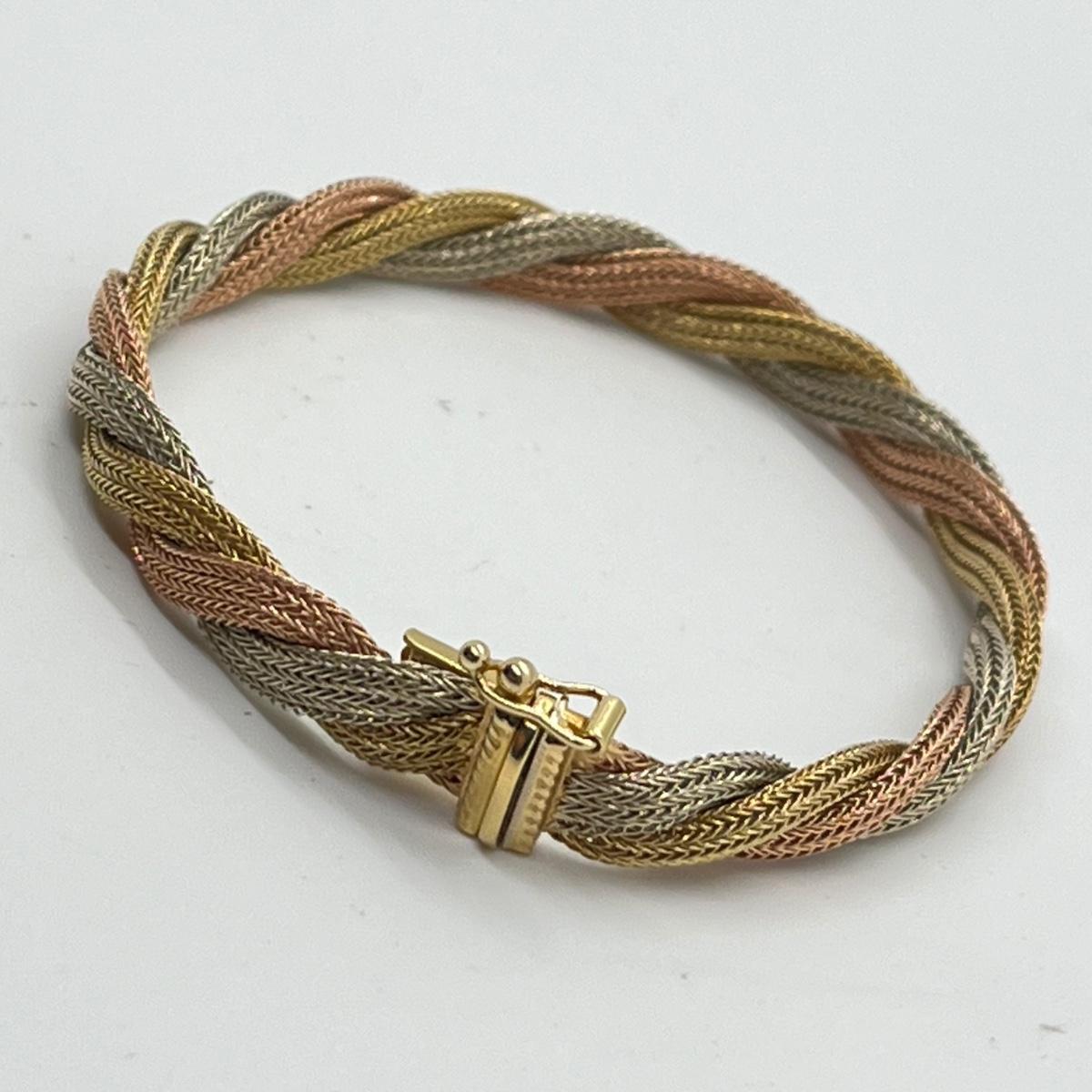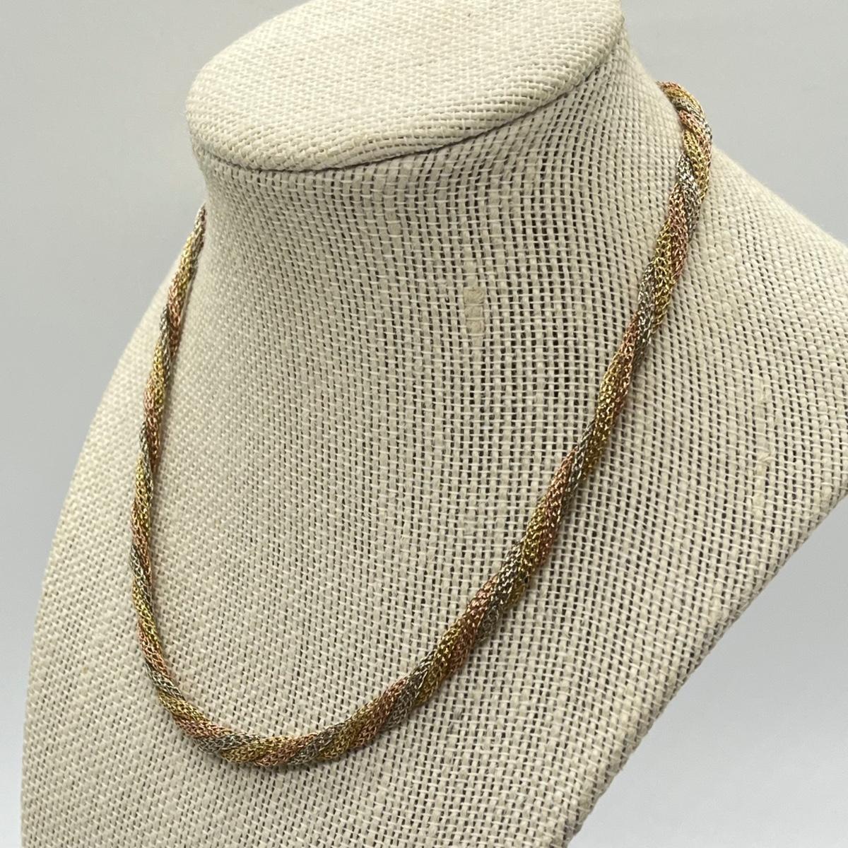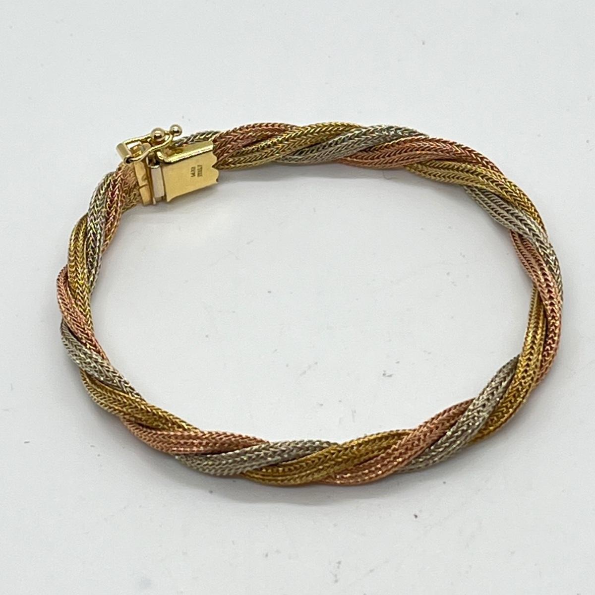 LOT 87J: 14K Italian Yellow, Rose and White Gold Woven Braided Wheat Link Mesh Bracelet and Necklace