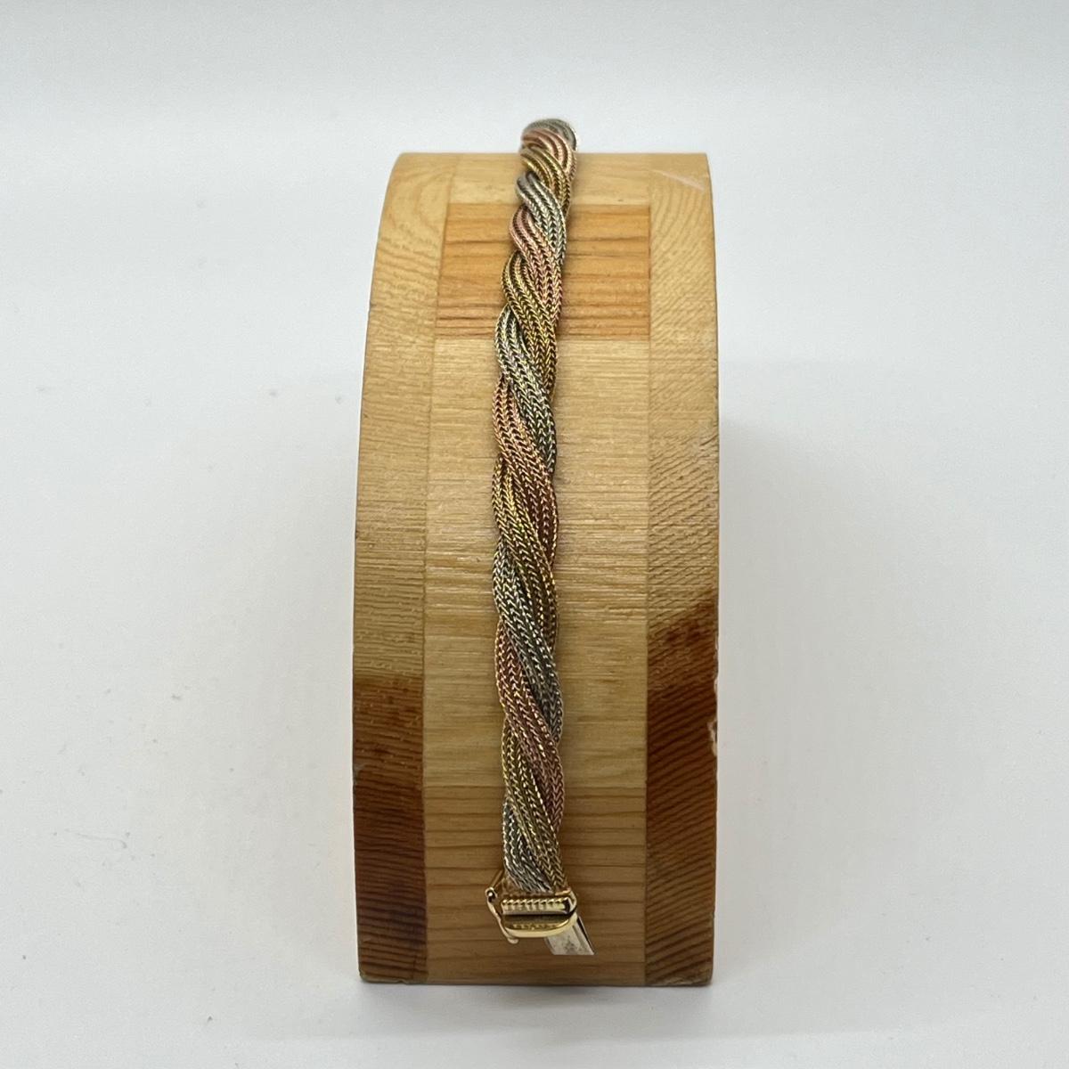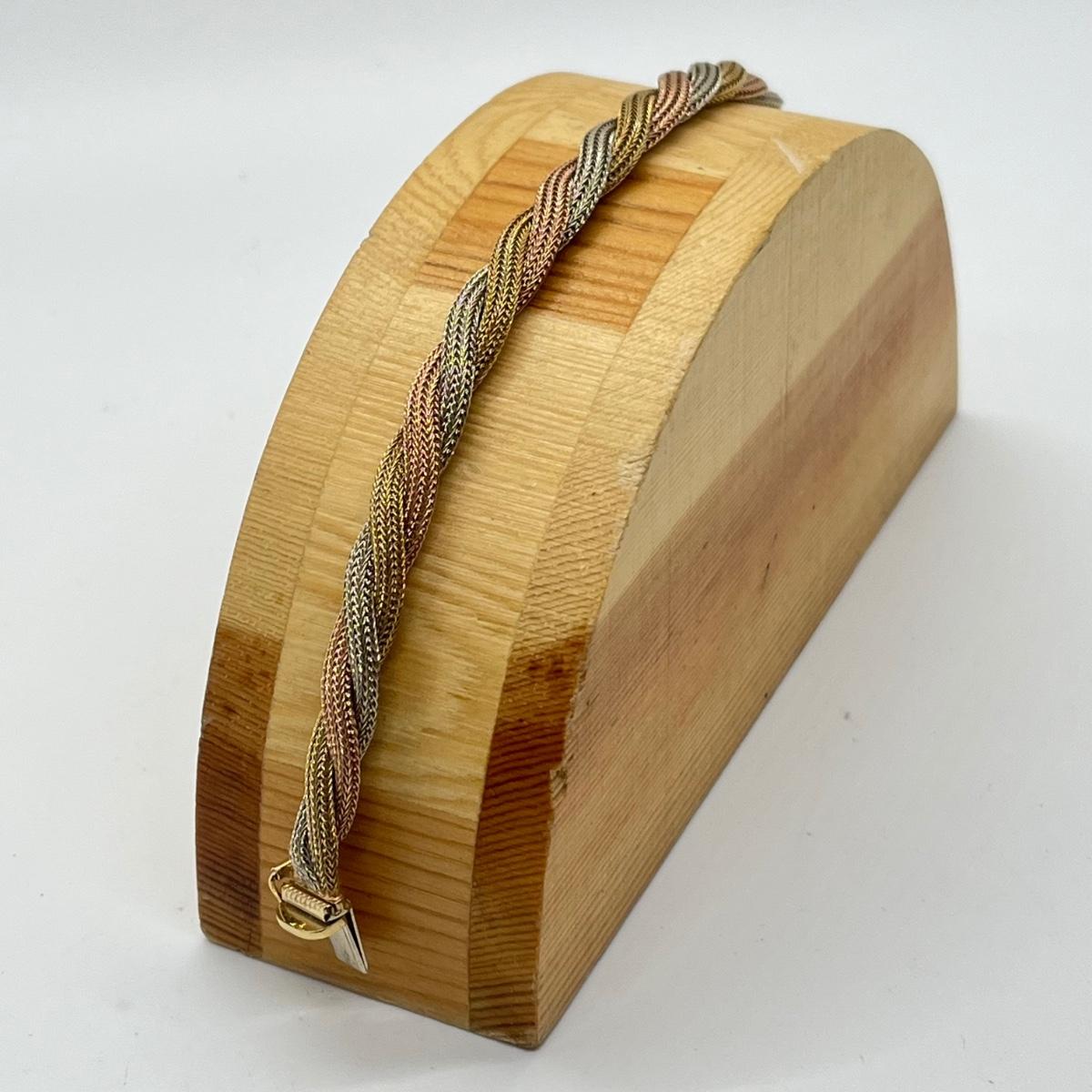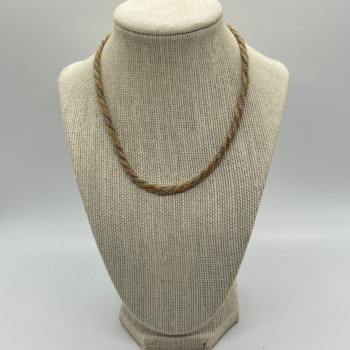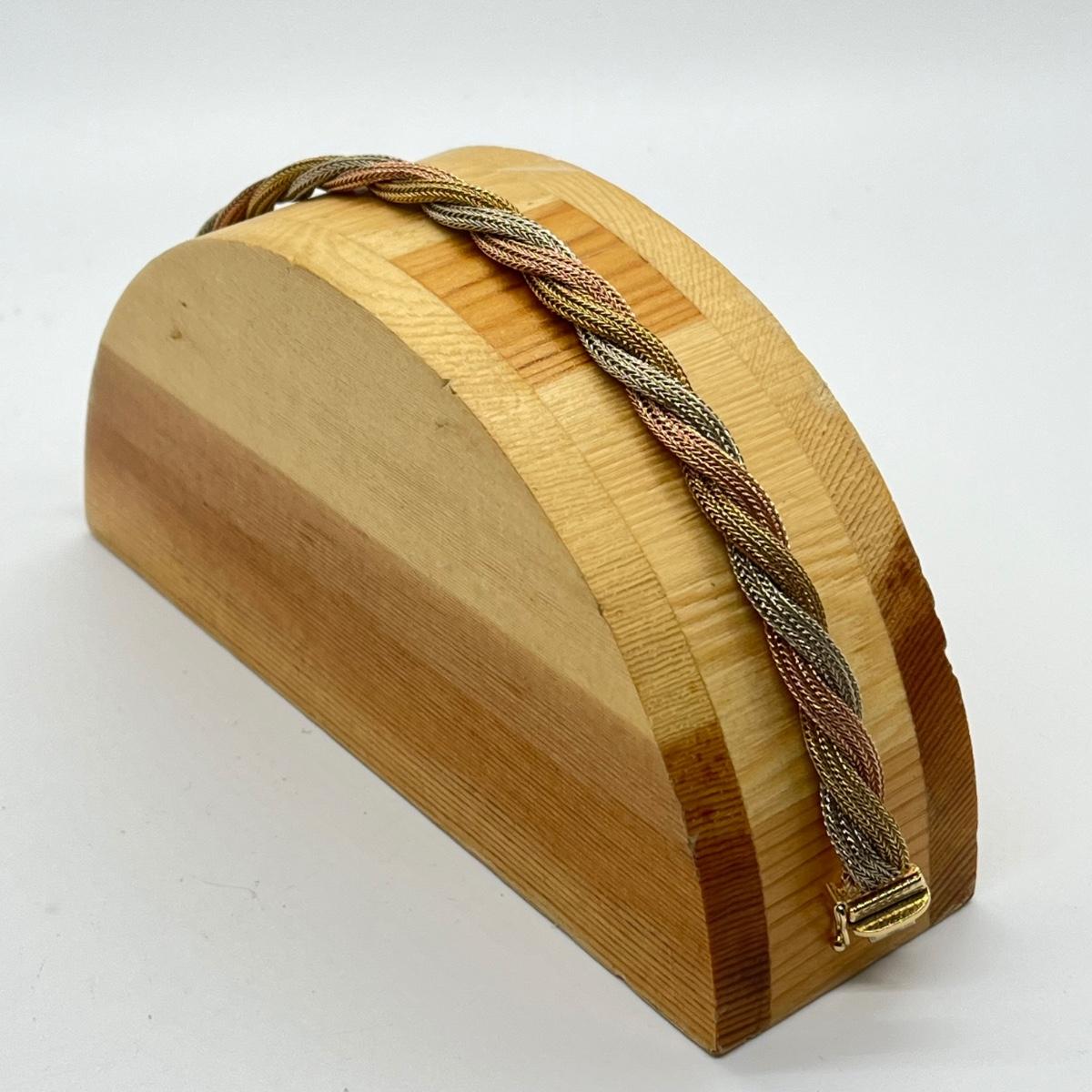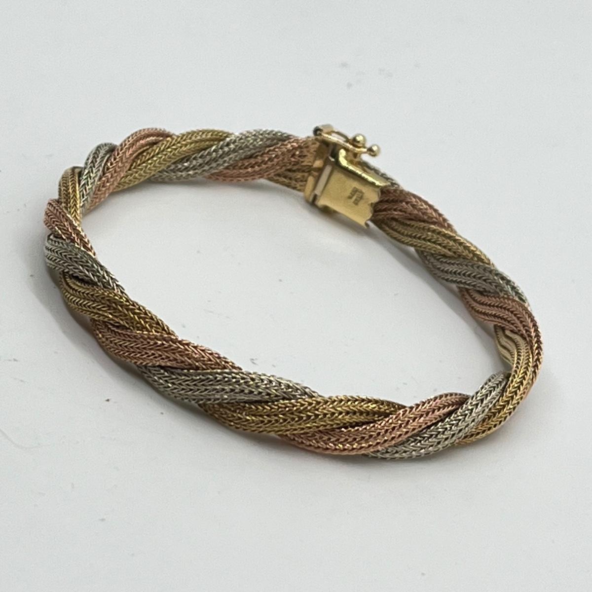 LOT 87J: 14K Italian Yellow, Rose and White Gold Woven Braided Wheat Link Mesh Bracelet and Necklace