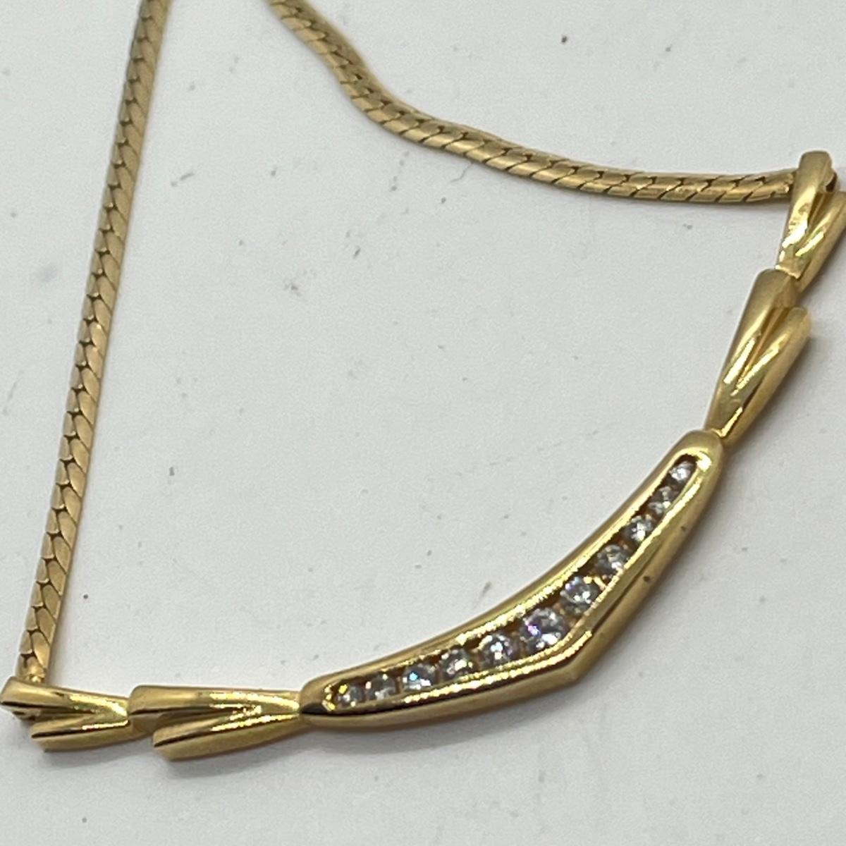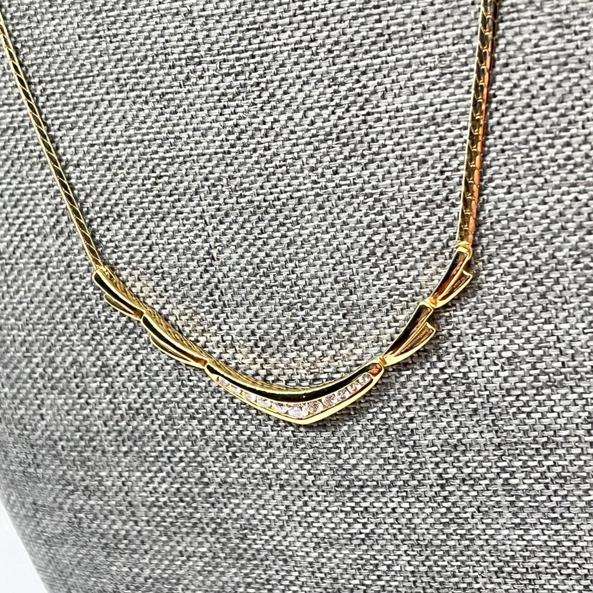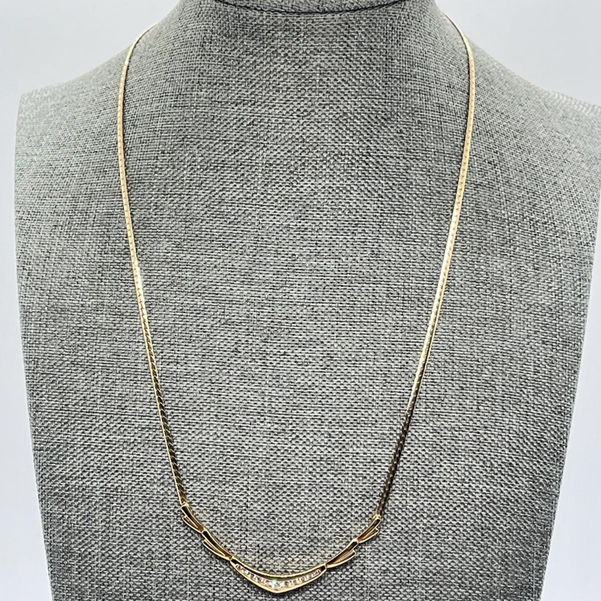 LOT 91J: 7.8g 14K Yellow Gold and Diamond V-Neck Necklace 18" L- Absolutely GORGEOUS!