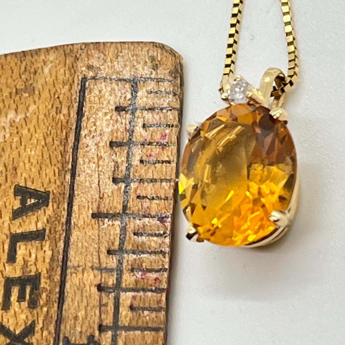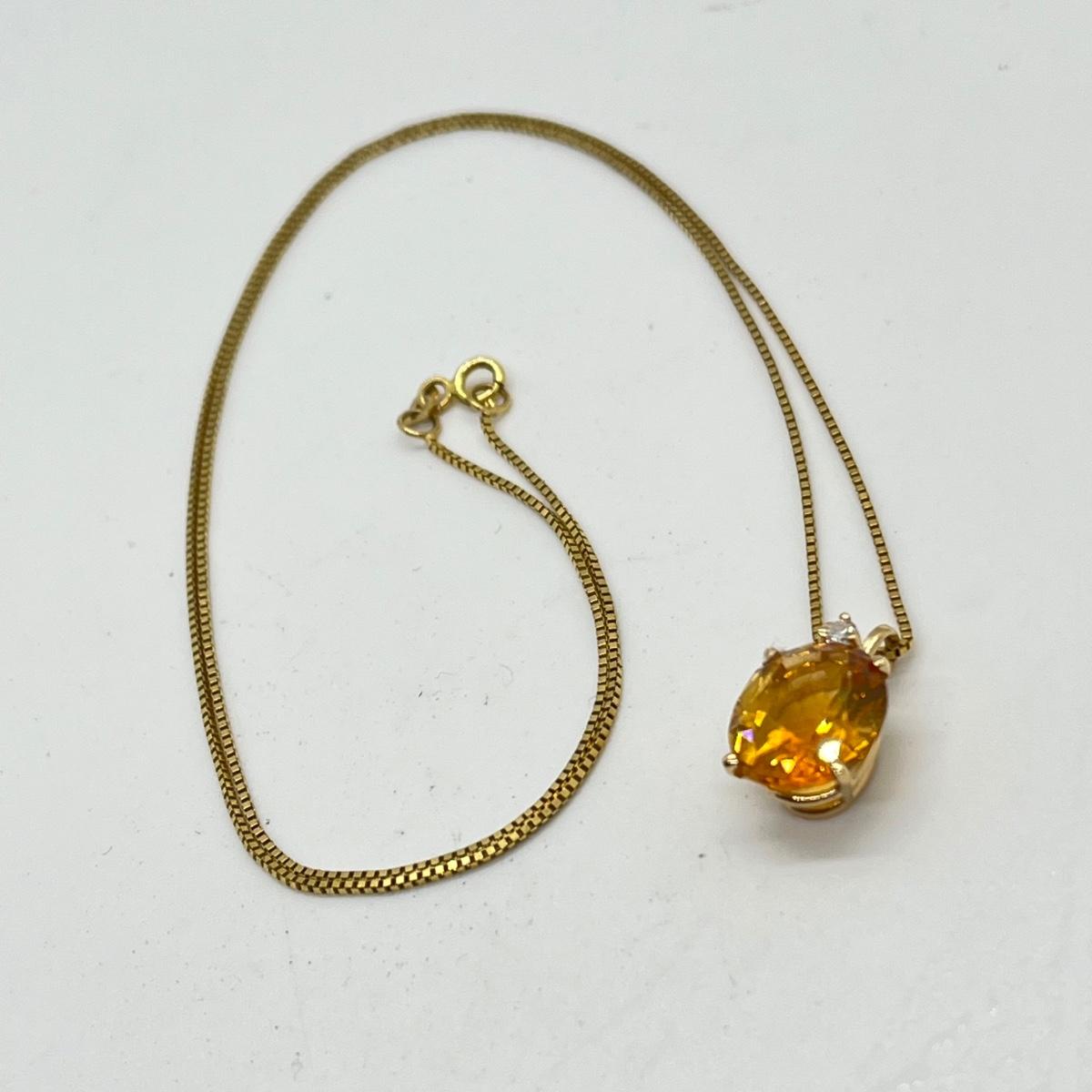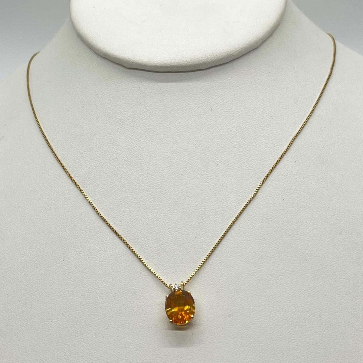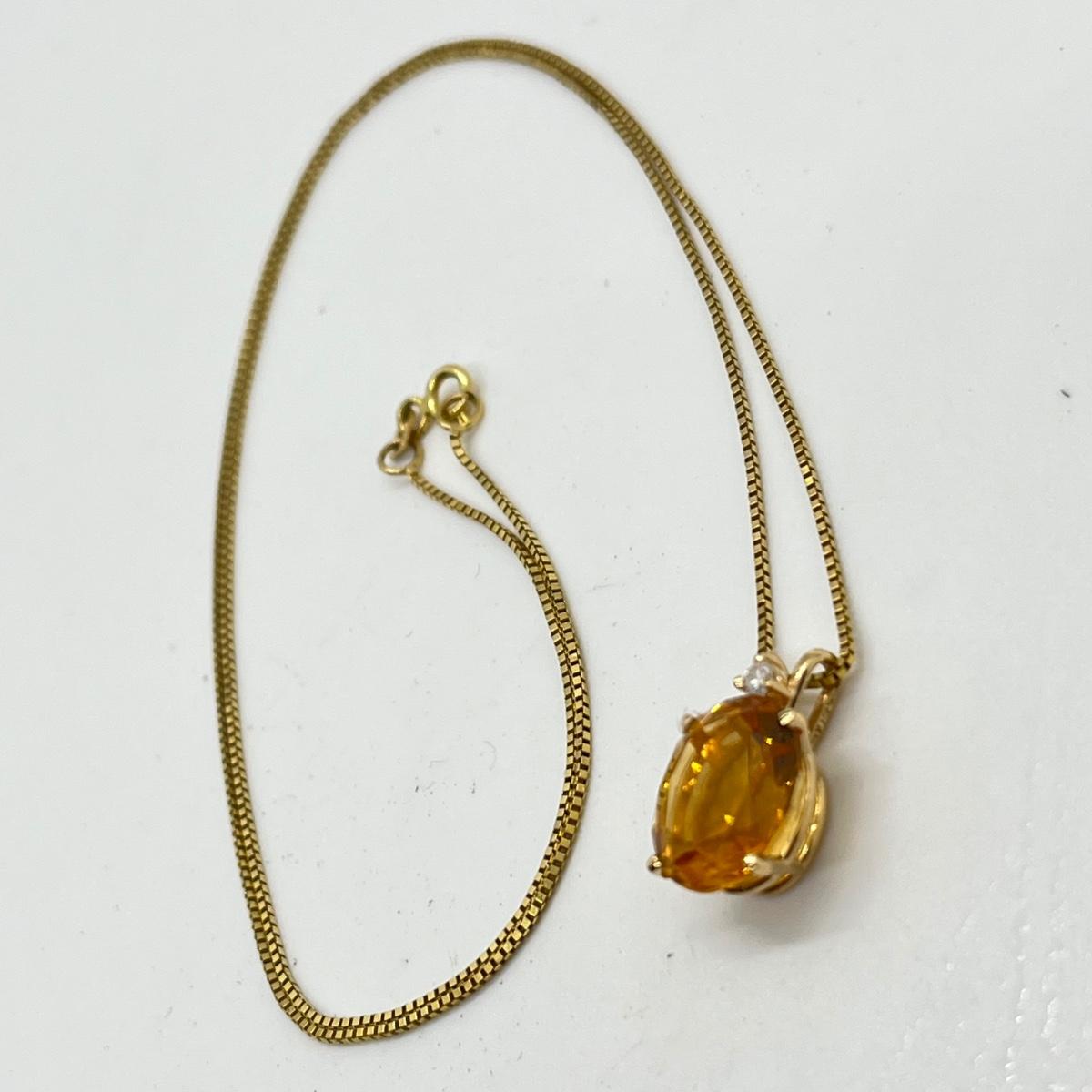 LOT 96J: Citrine and Diamond Accent Pendant Set in 14K Yellow Gold on a 14K Italian Yellow Gold Box Chain