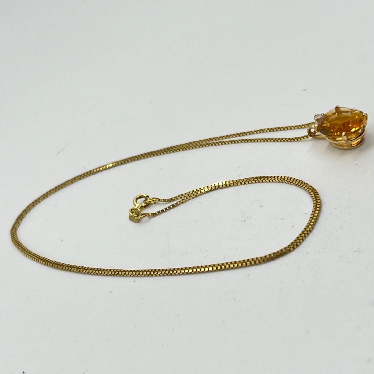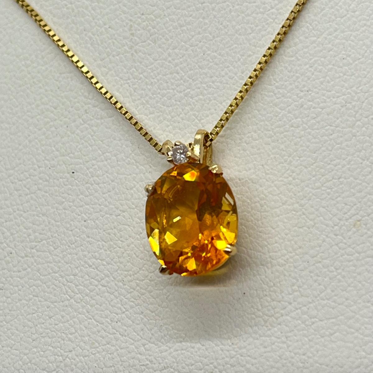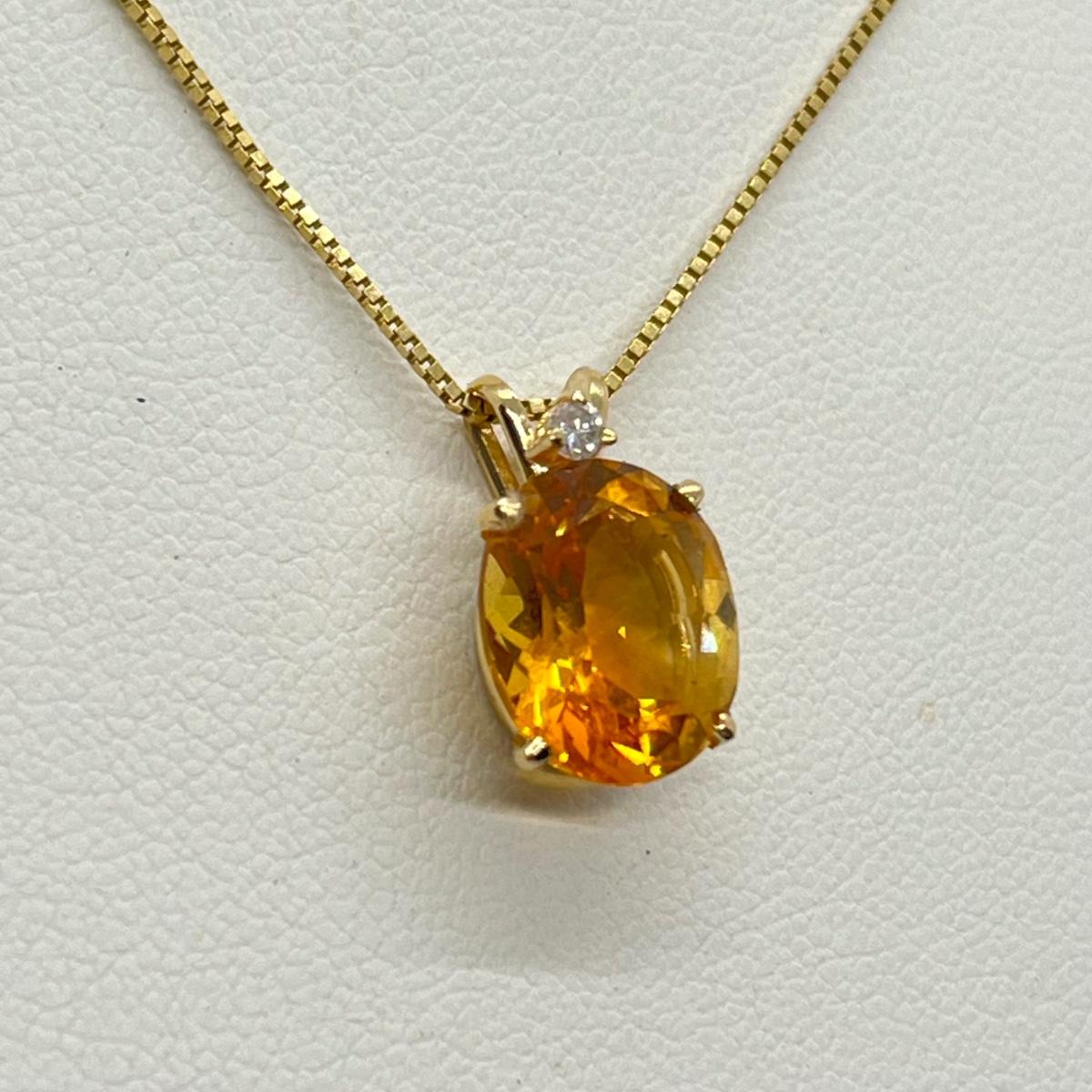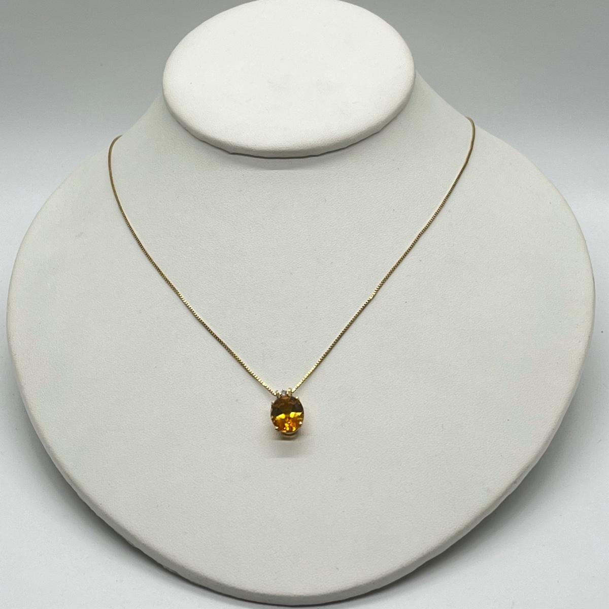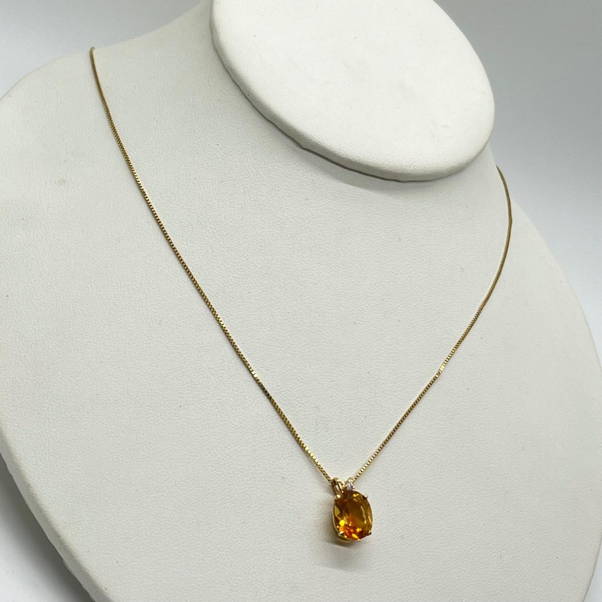 LOT 96J: Citrine and Diamond Accent Pendant Set in 14K Yellow Gold on a 14K Italian Yellow Gold Box Chain