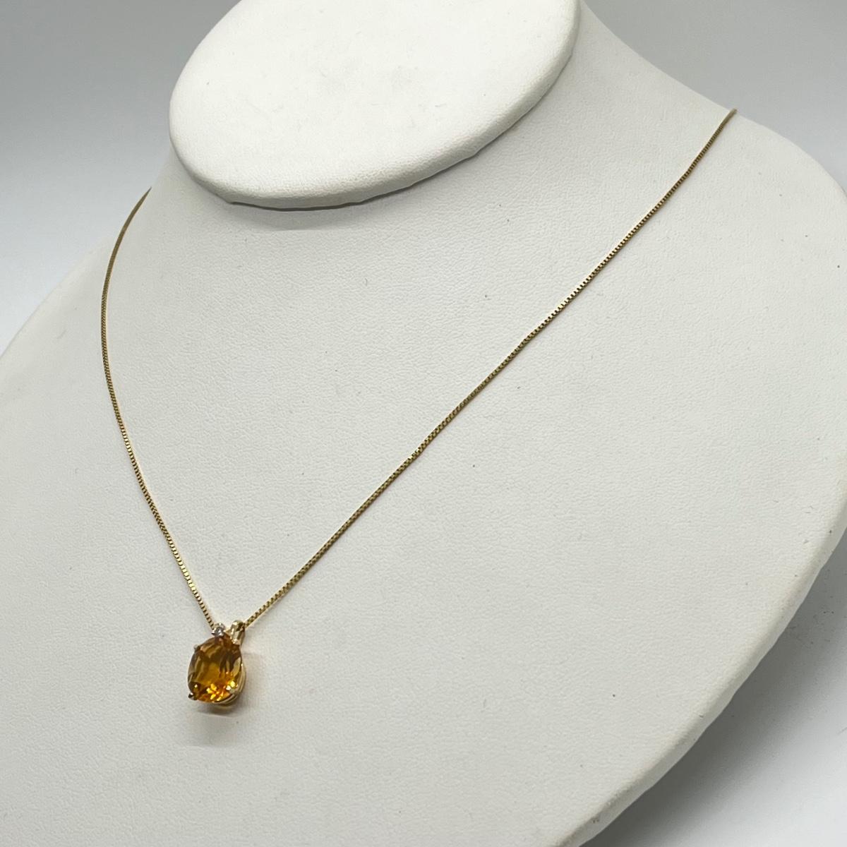 Necklace 20" length. Chain is marked 14KP Italy. Chain alone weighs 1.8 grams. Citrine is 5 carats and the pendant weighs 1.6 grams. Please see all pictures as they are the best representation of the items. The pictures show condition, measurements if taken, and what is included in the lot. Due to the large amount that we photograph and the time frame, we are not always able to take measurements. All items unless noted, are pre-owned and have been used. If you purchased furniture, you must bring help. We do not allow one person to carry large furniture out on their own. Bring help, tools and a truck for the safety of our client’s homes, and your personal safety. Any damages that result to the property including walls, and floors due to moving of the furniture will be charged to the buyer. Company policy. Thank you.