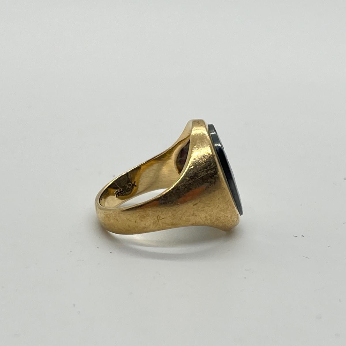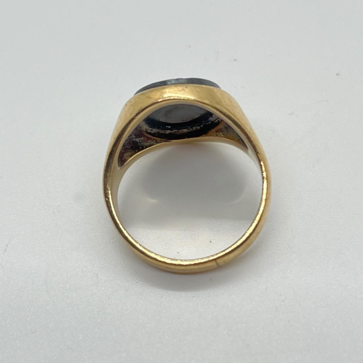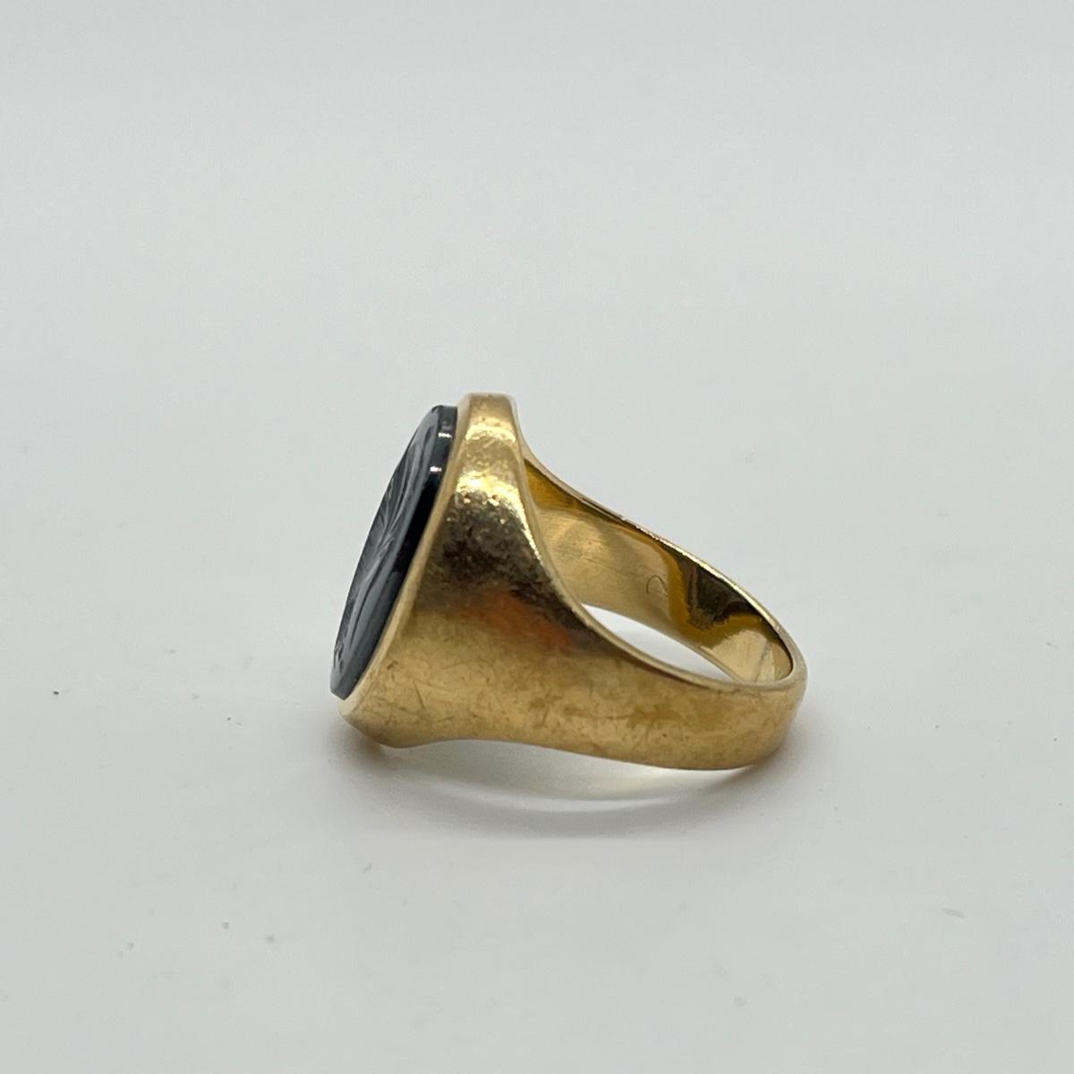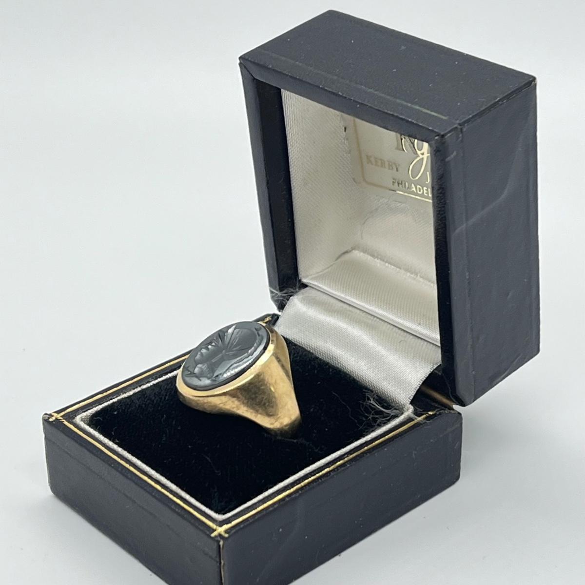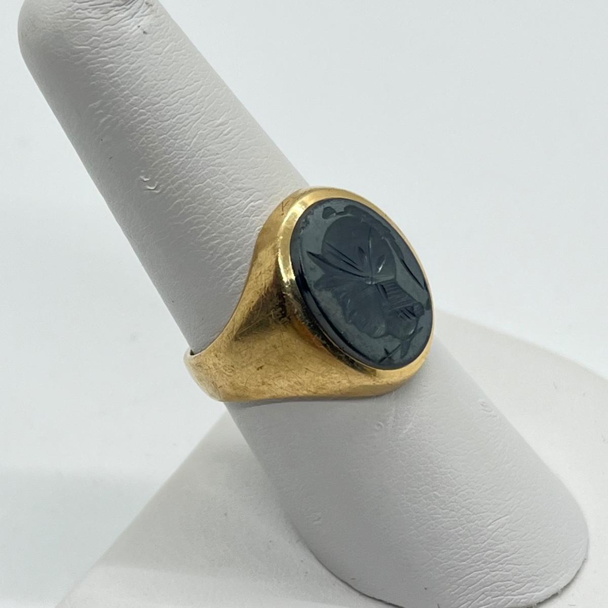 LOT 99J: Vintage 8.3g 10K Yellow Gold Hematite Intaglio Trojan Ring sz 7.5