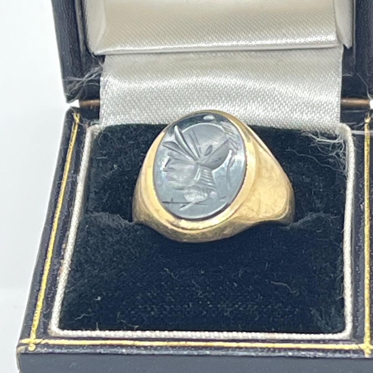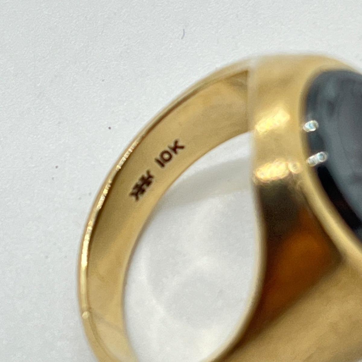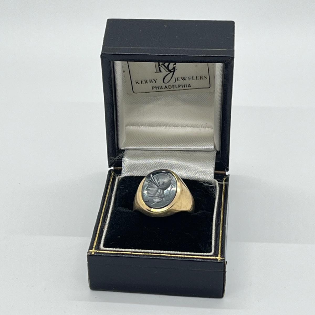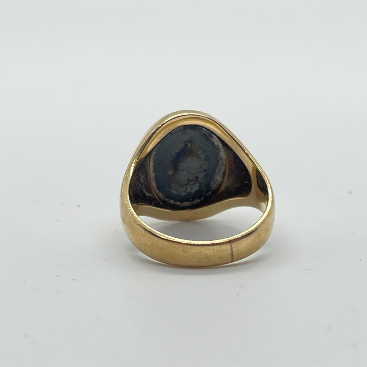 LOT 99J: Vintage 8.3g 10K Yellow Gold Hematite Intaglio Trojan Ring sz 7.5