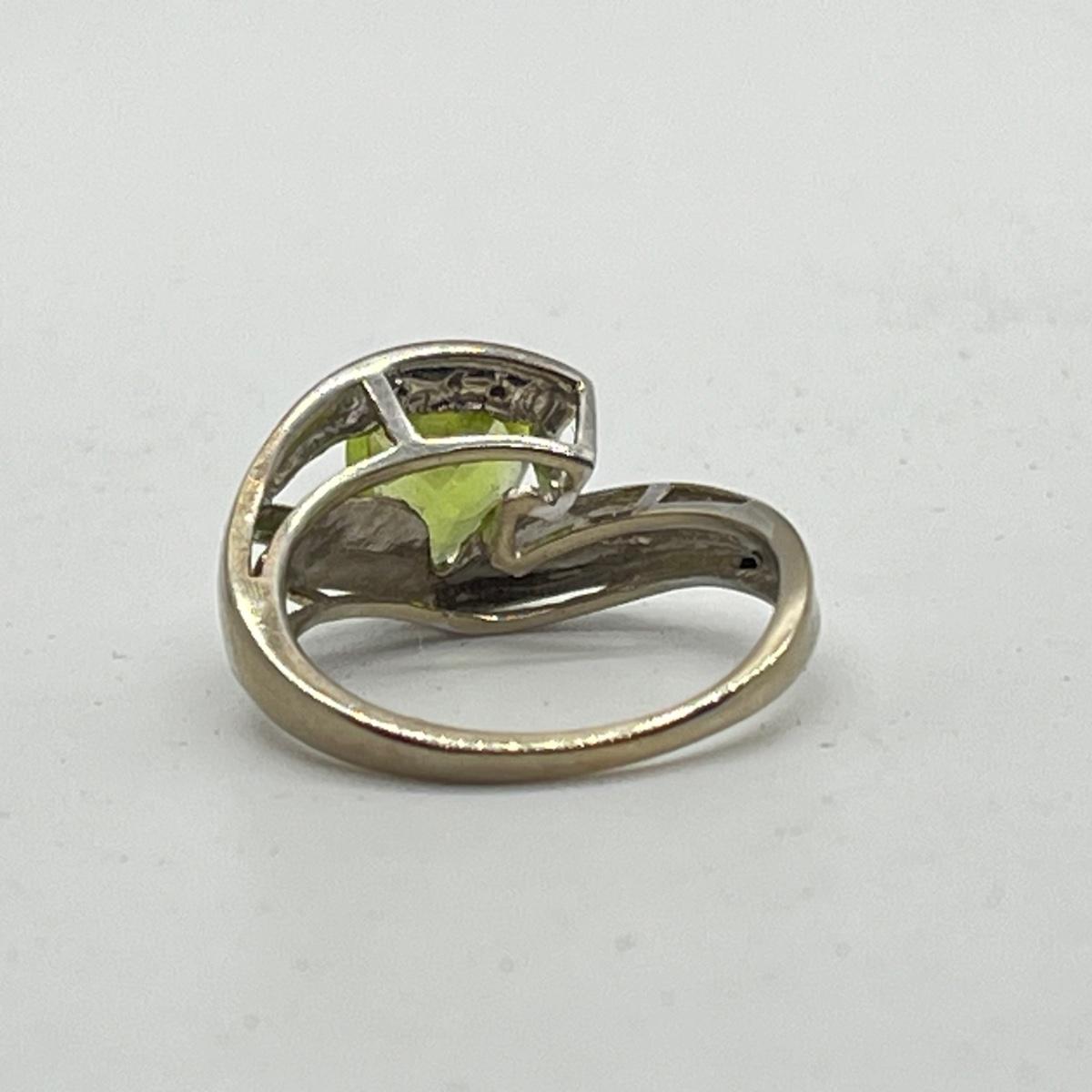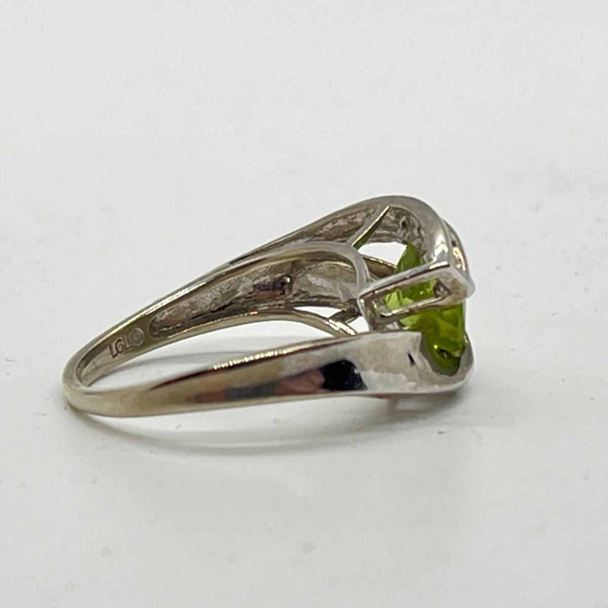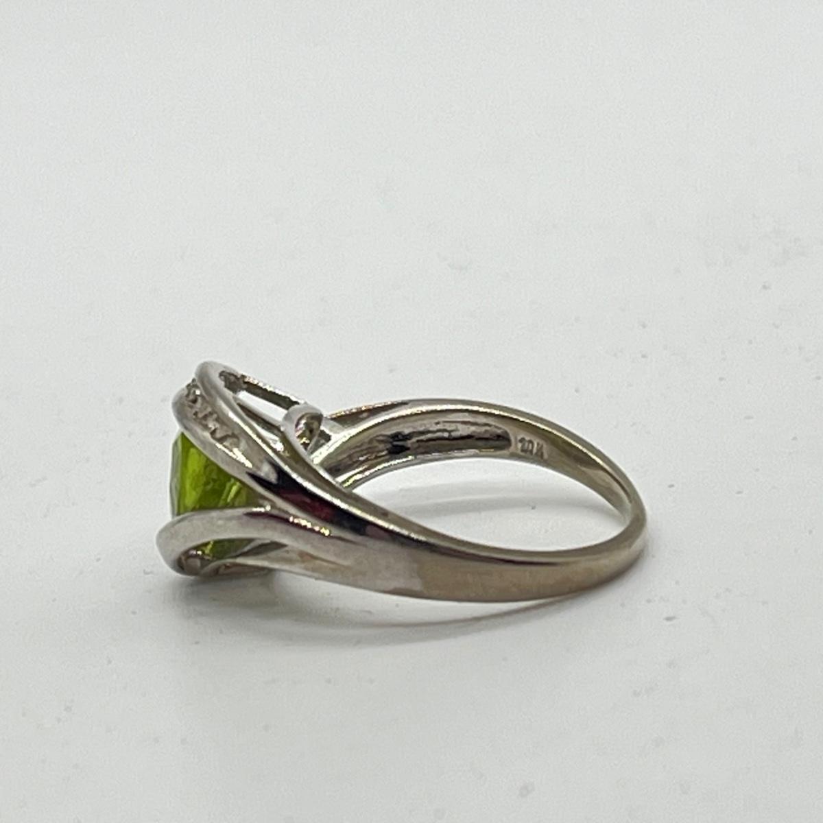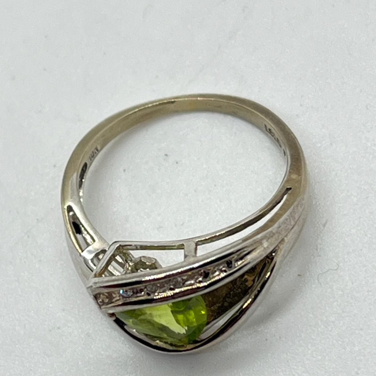 LOT 101J: 10K White Gold Ring with Trillion Cut Peridot with Accents. Sz 6