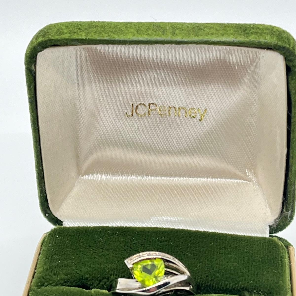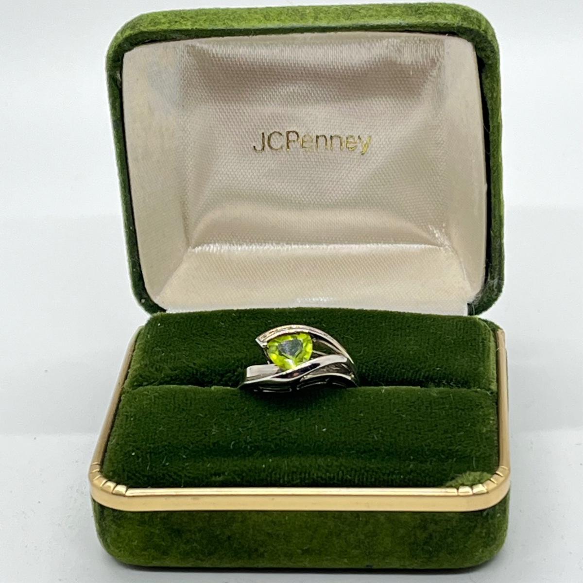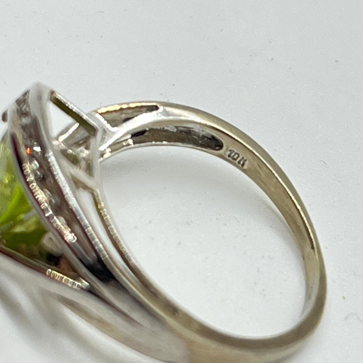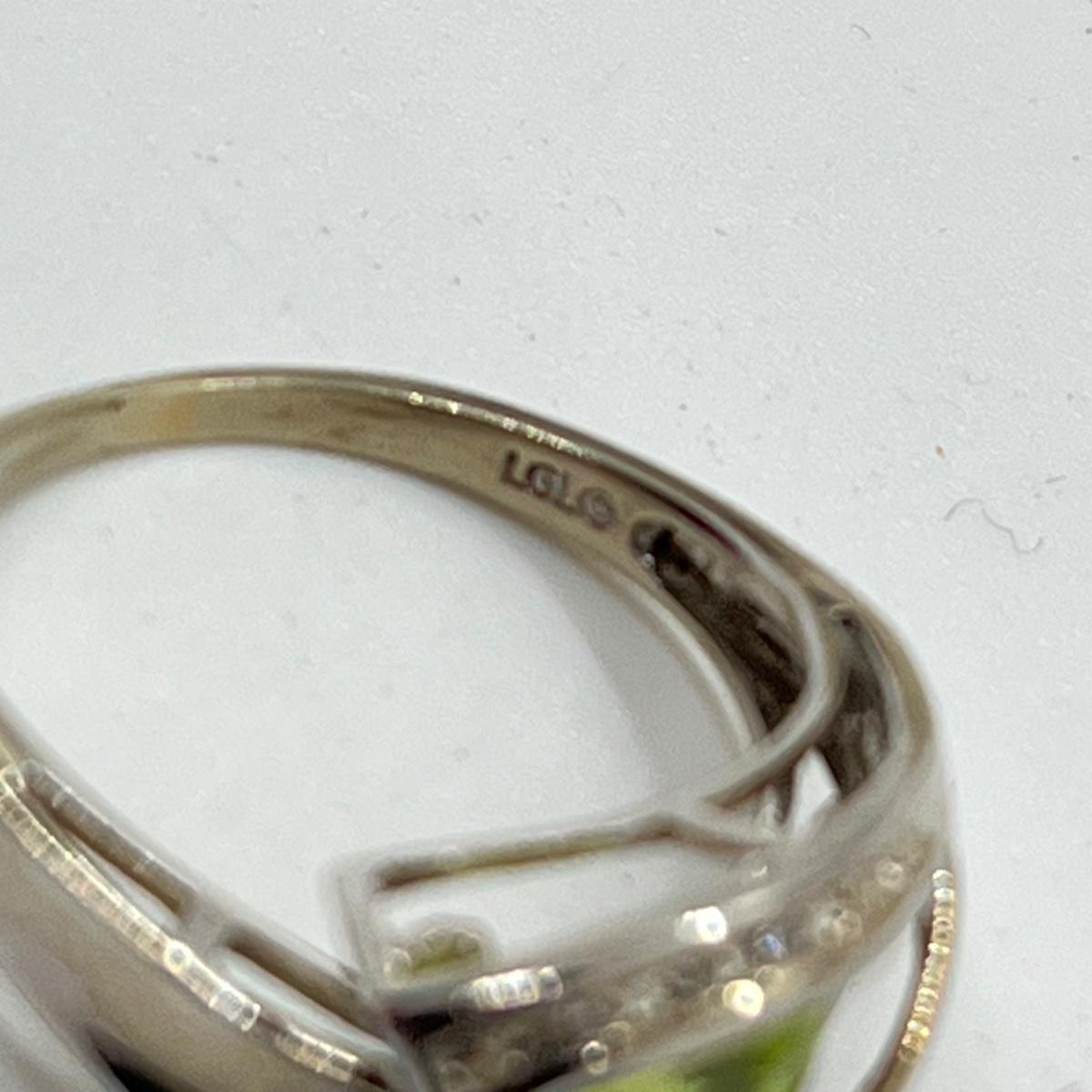 LOT 101J: 10K White Gold Ring with Trillion Cut Peridot with Accents. Sz 6