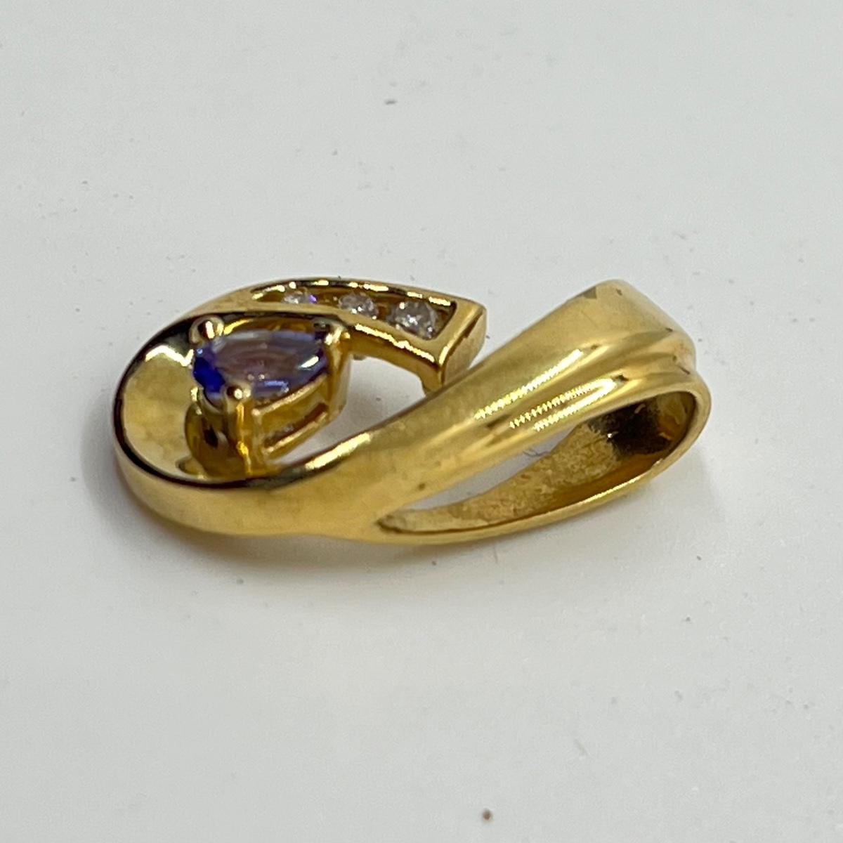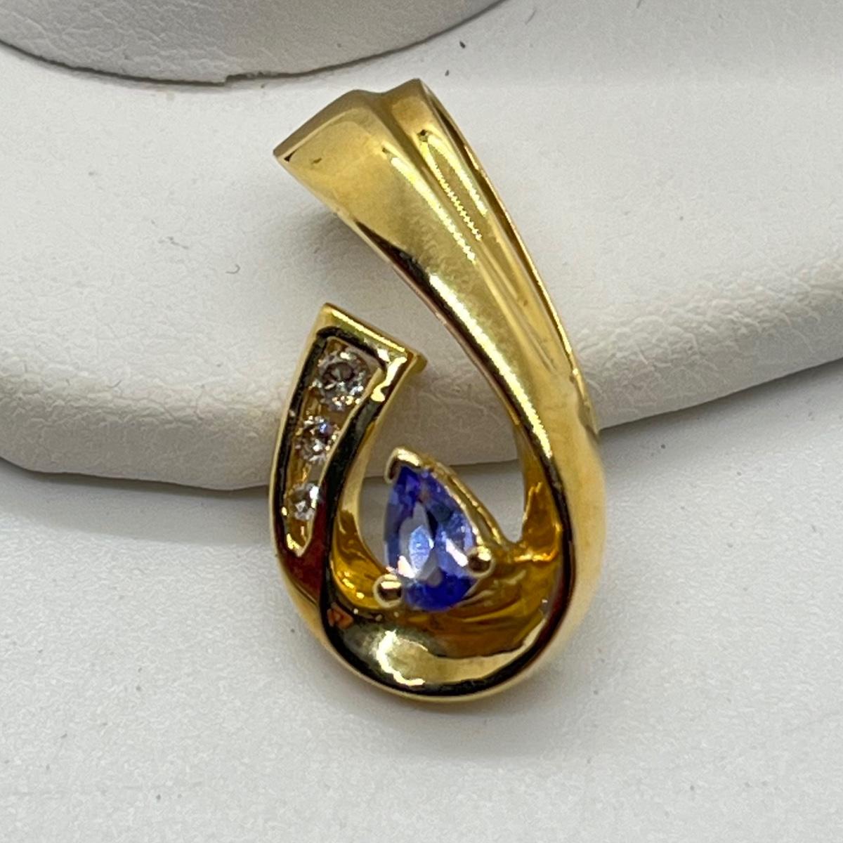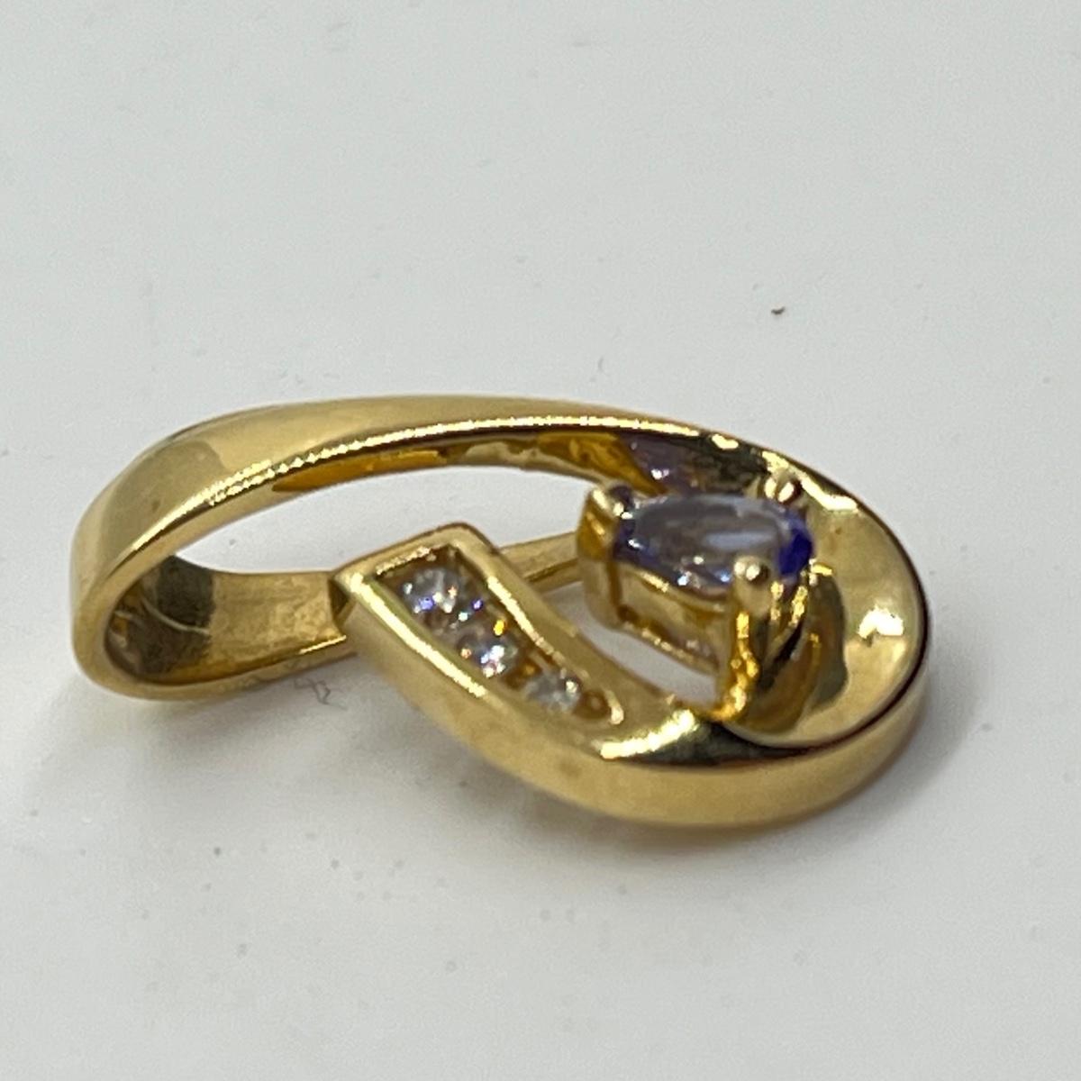 LOT 102J: 2.6g 14K Yellow Gold Tanzanite and Diamond Pendant