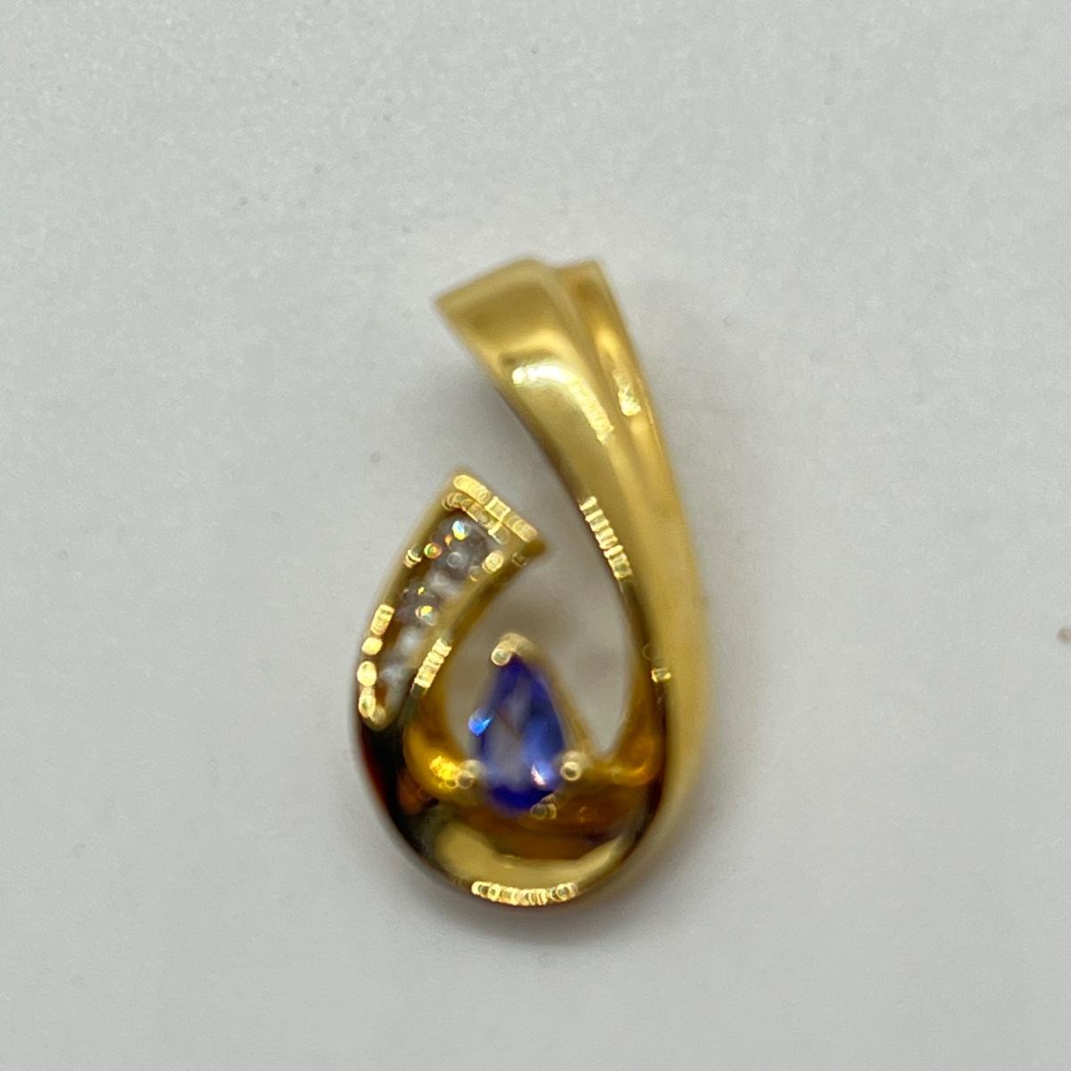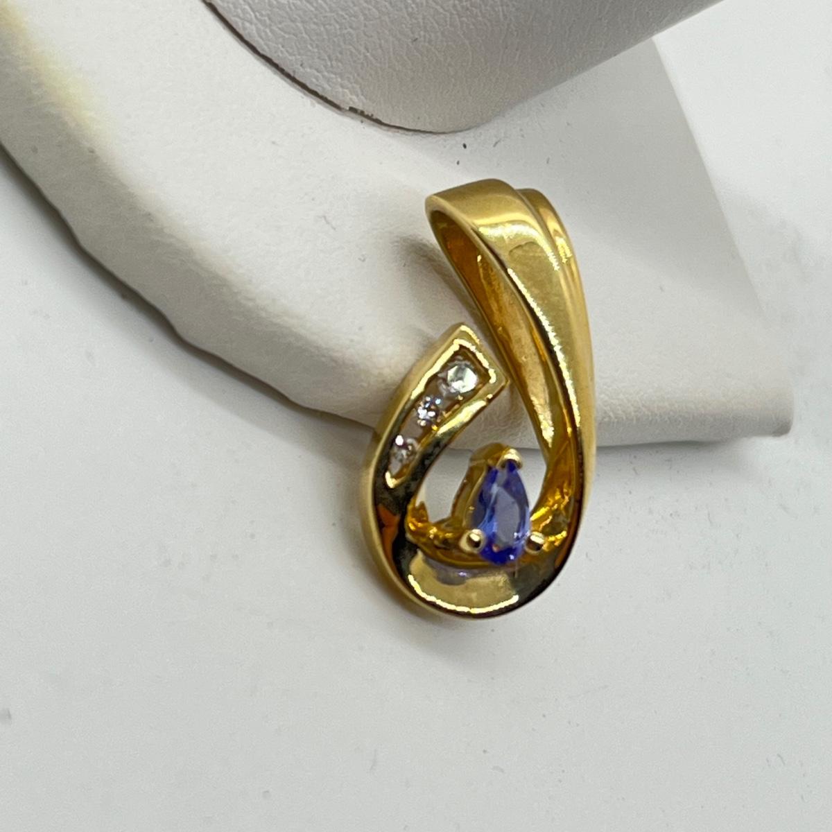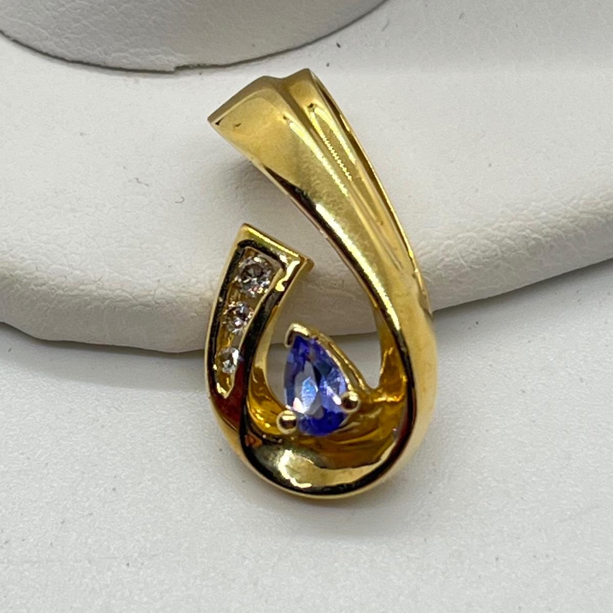 LOT 102J: 2.6g 14K Yellow Gold Tanzanite and Diamond Pendant