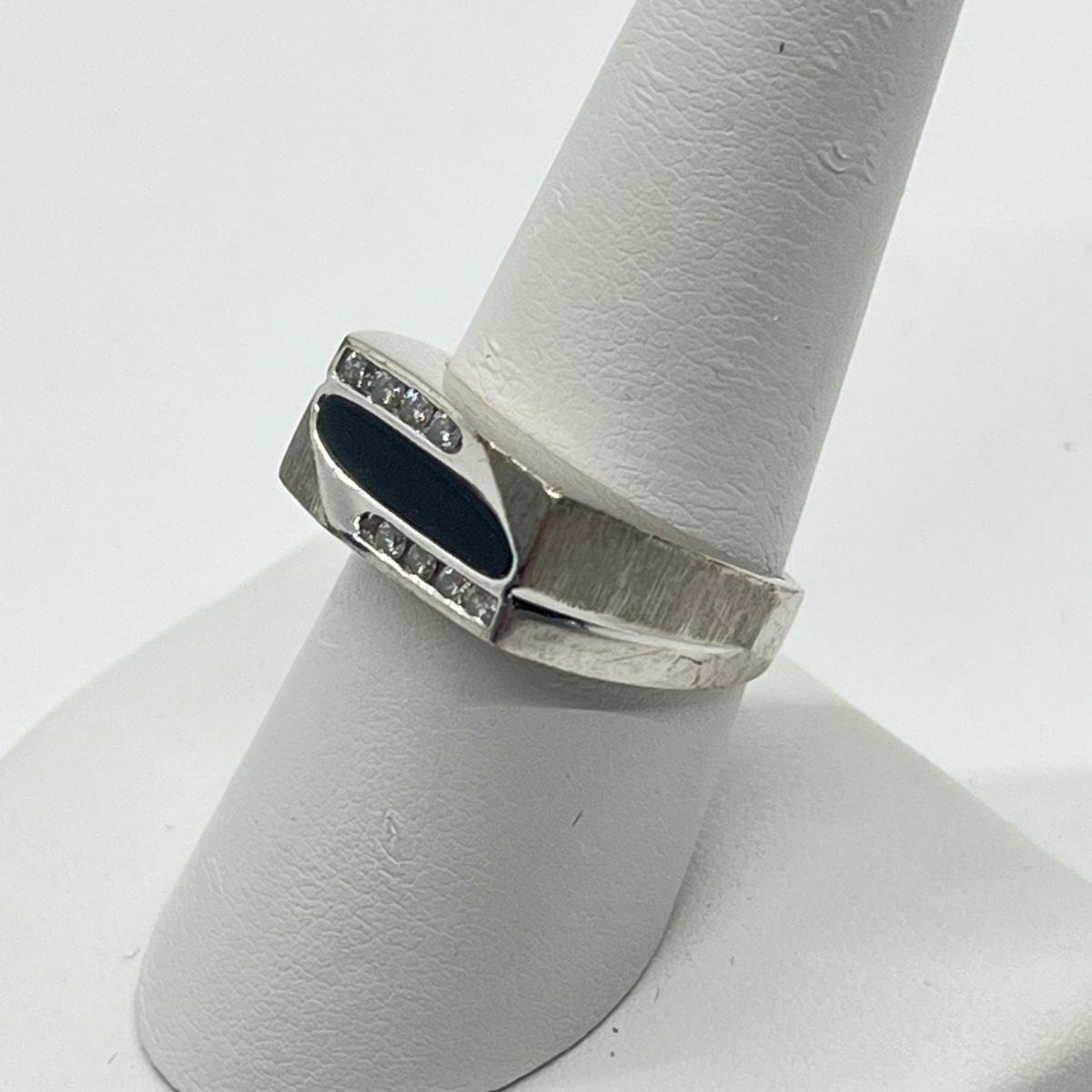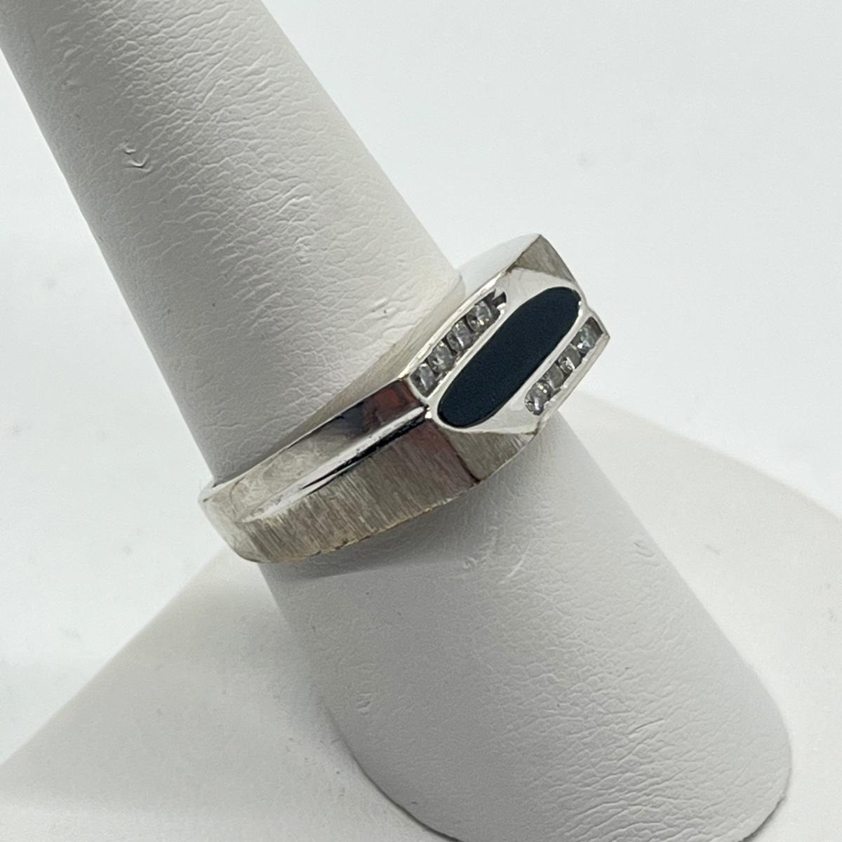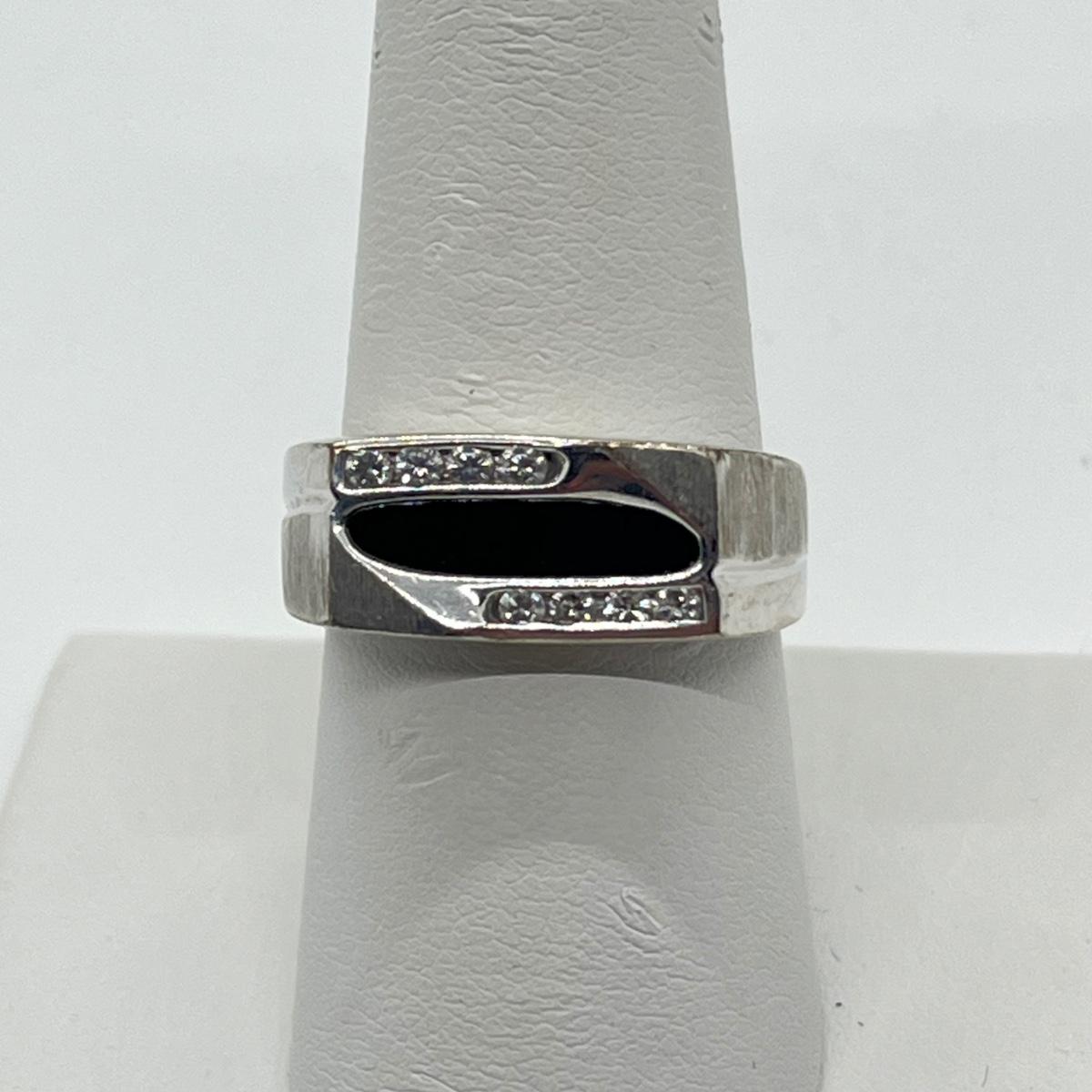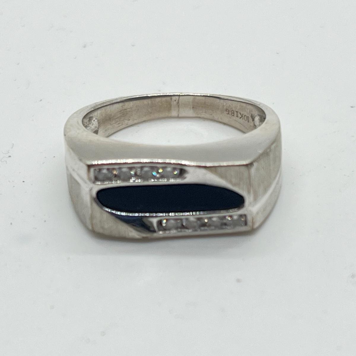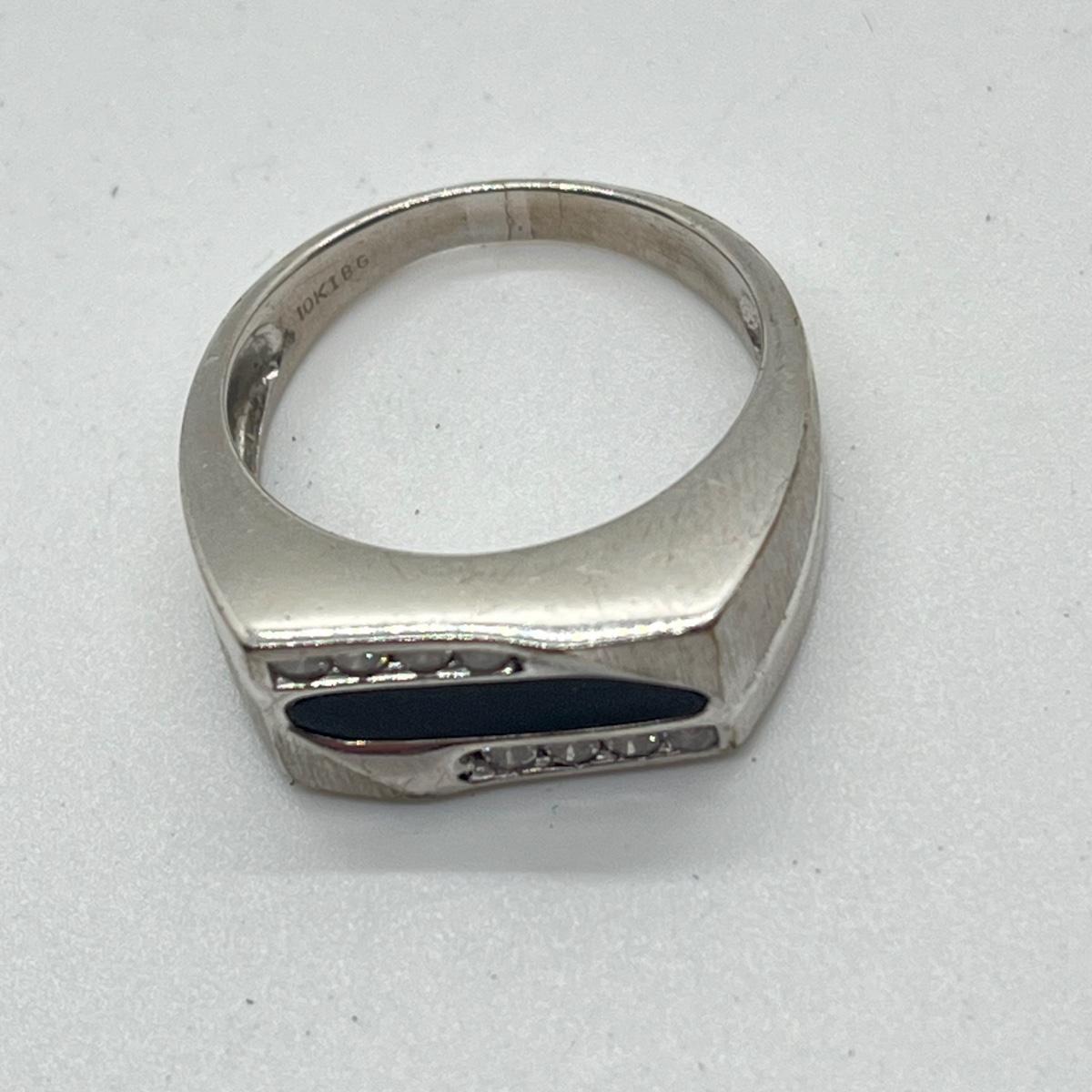 LOT 104J: Vintage 10K White Gold, Black Onyx and Diamond IBG Unisex