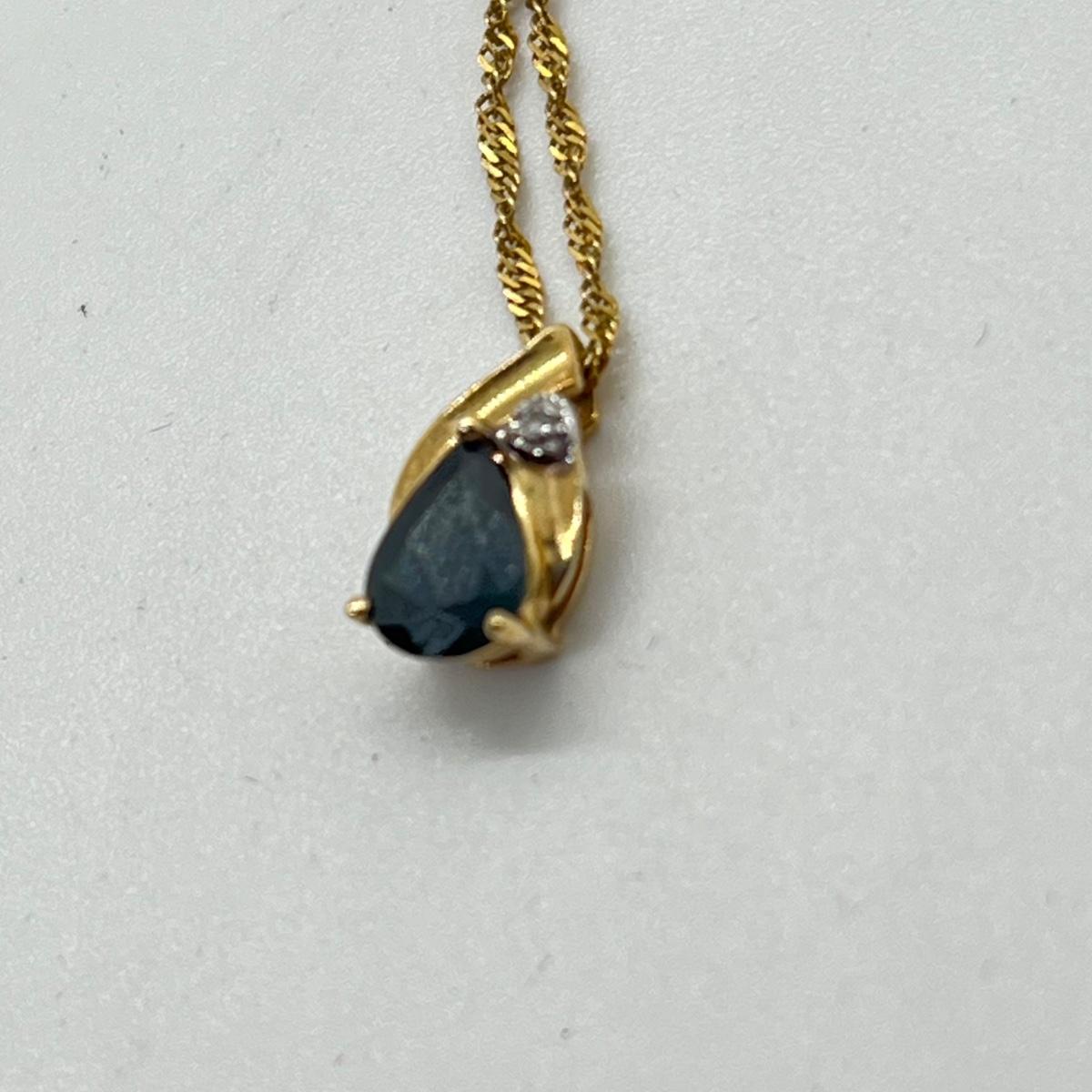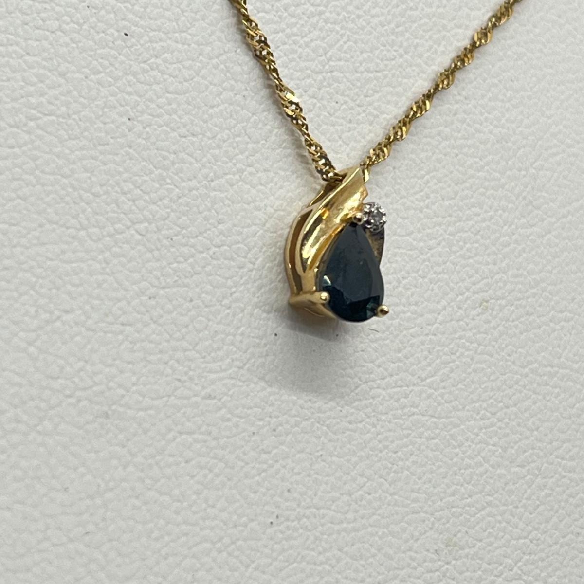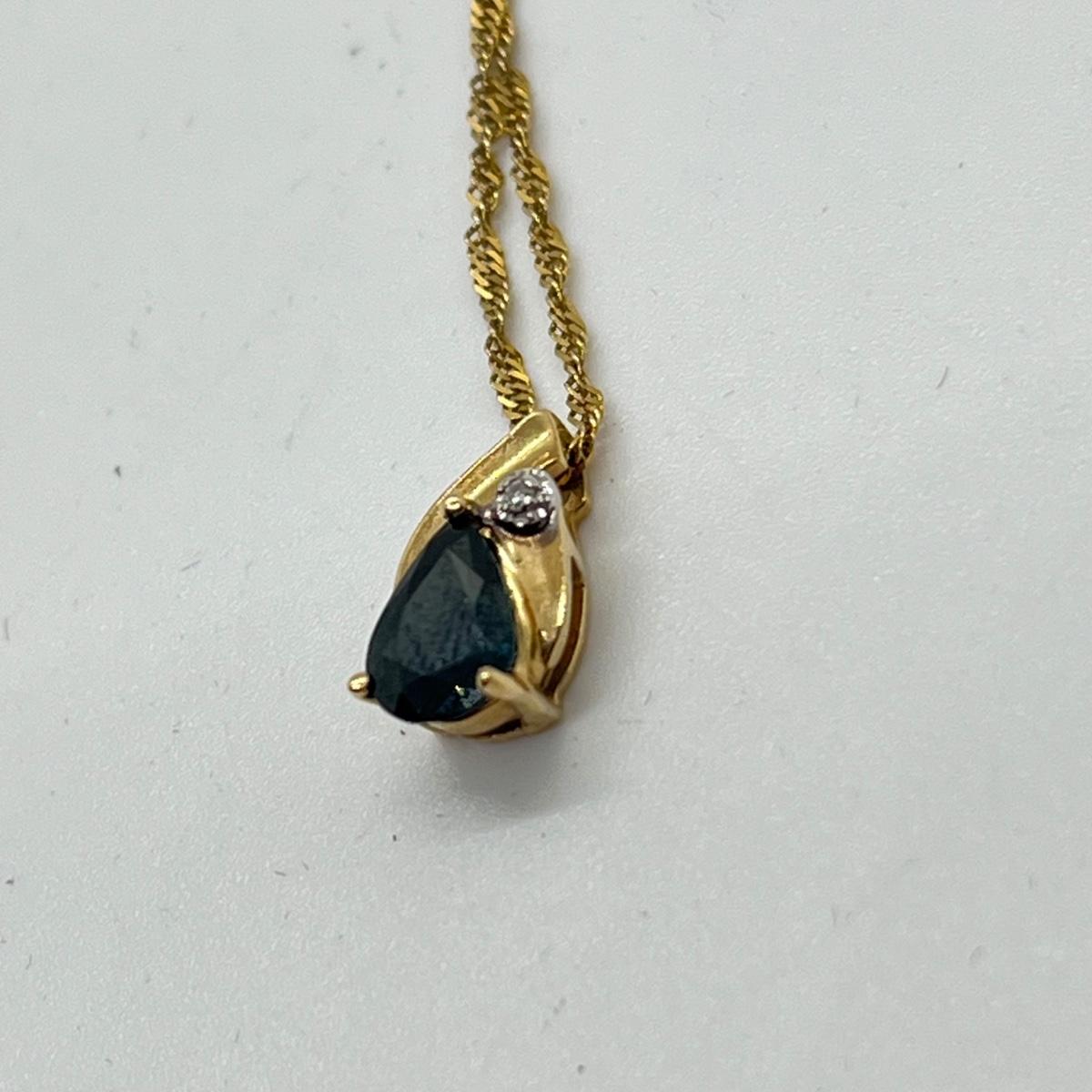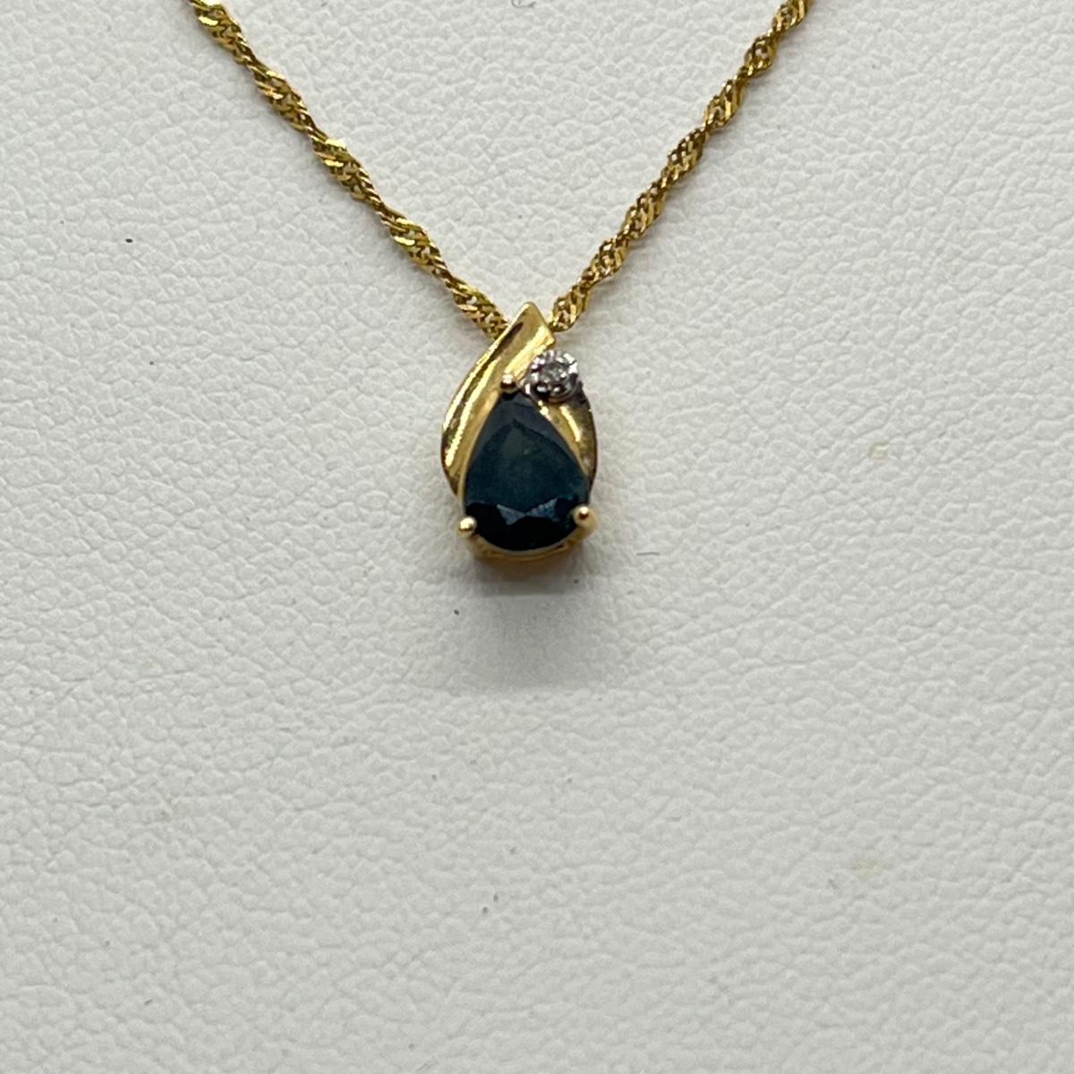 LOT 110J: 14K Teal Sapphire with Diamond Accent Pendant Necklace