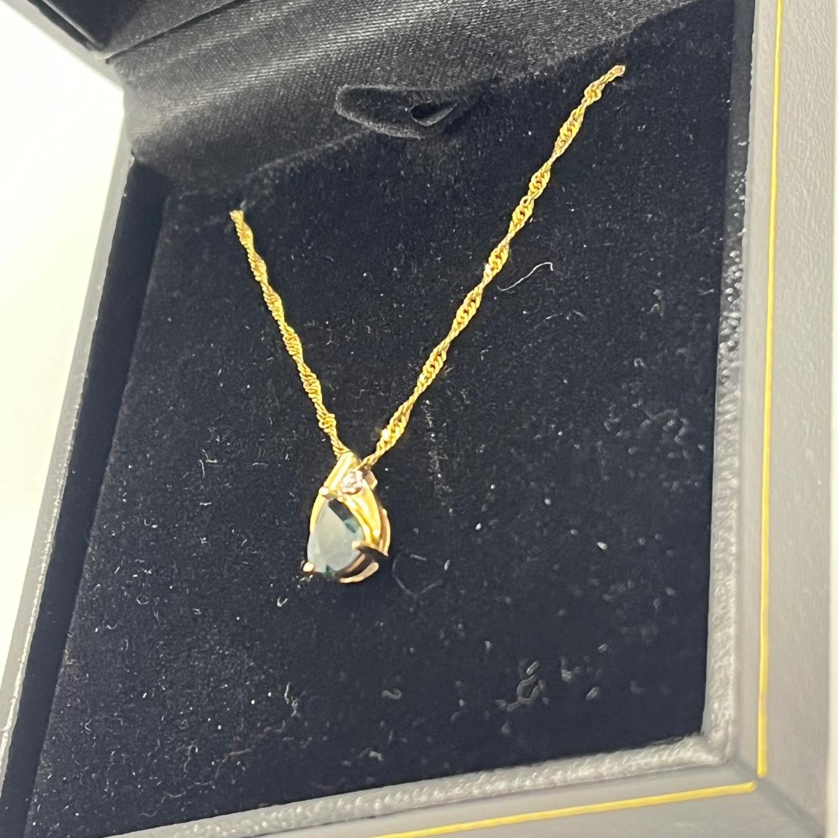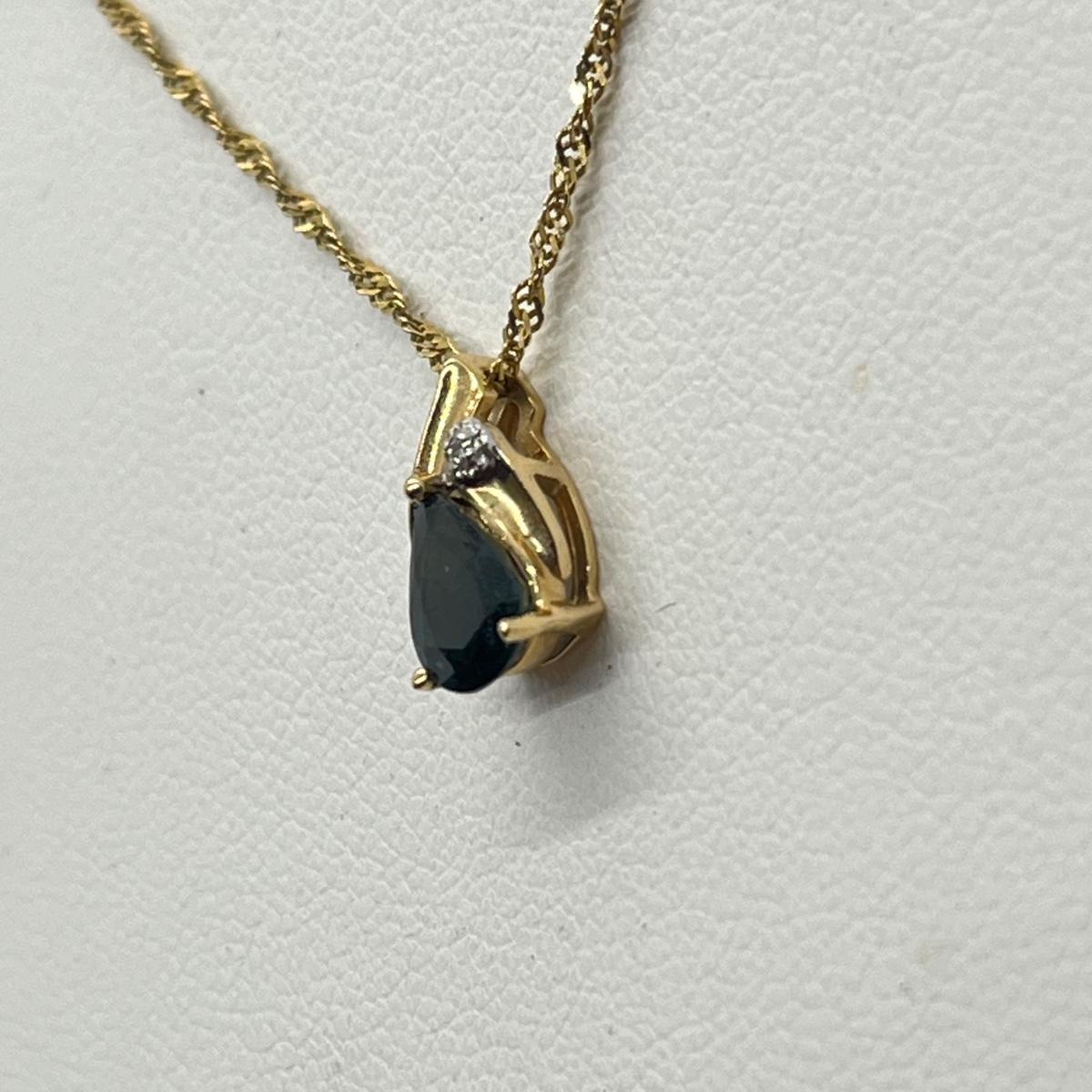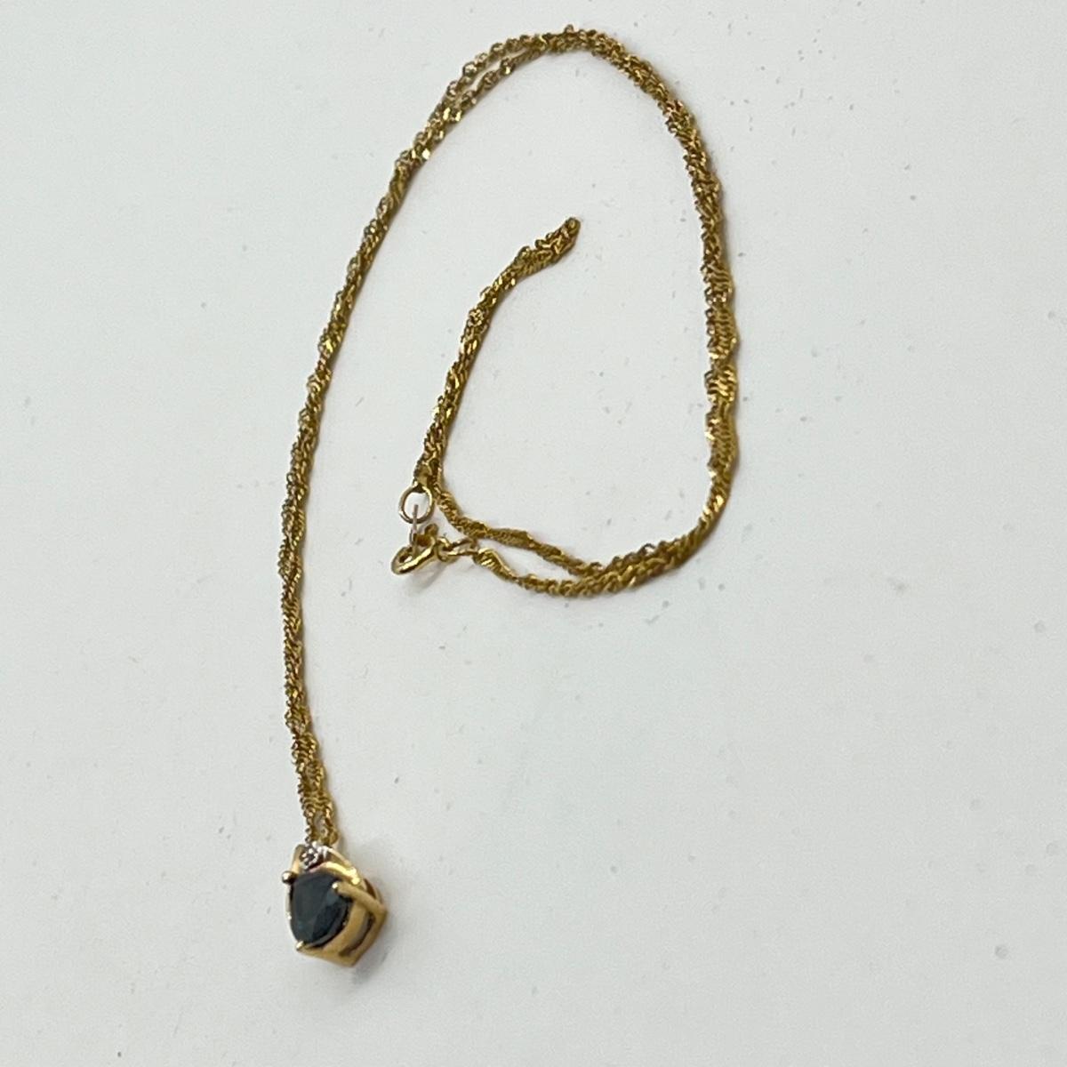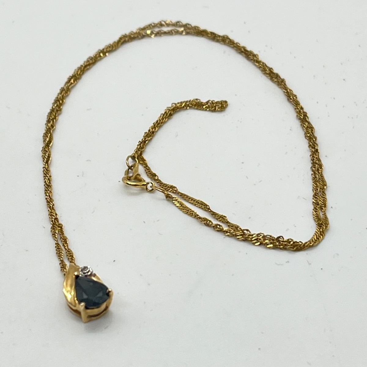LOT 110J: 14K Teal Sapphire with Diamond Accent Pendant Necklace