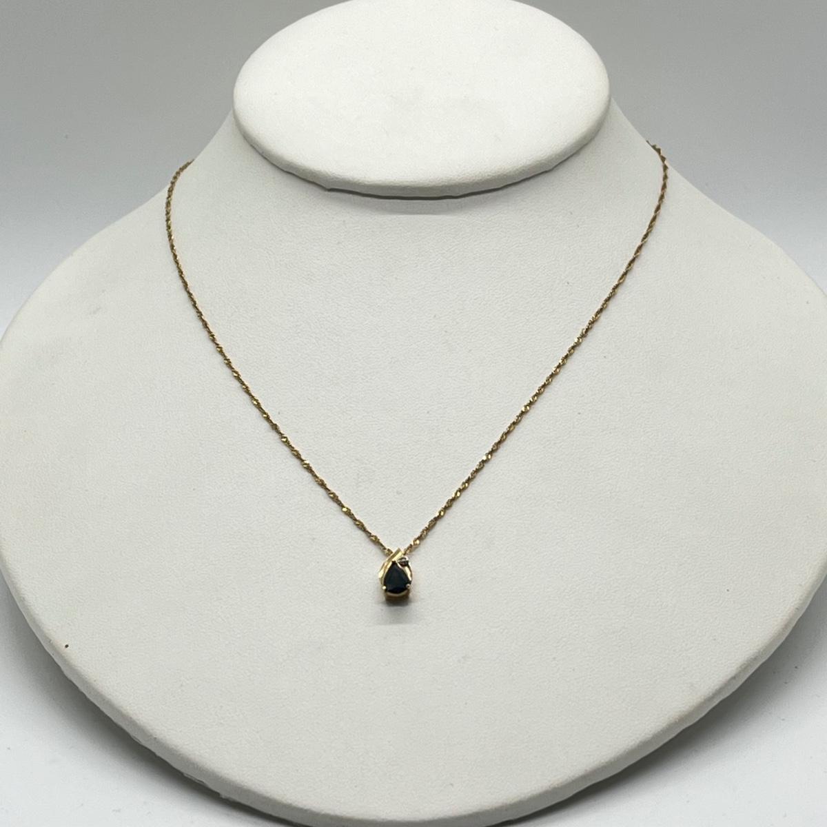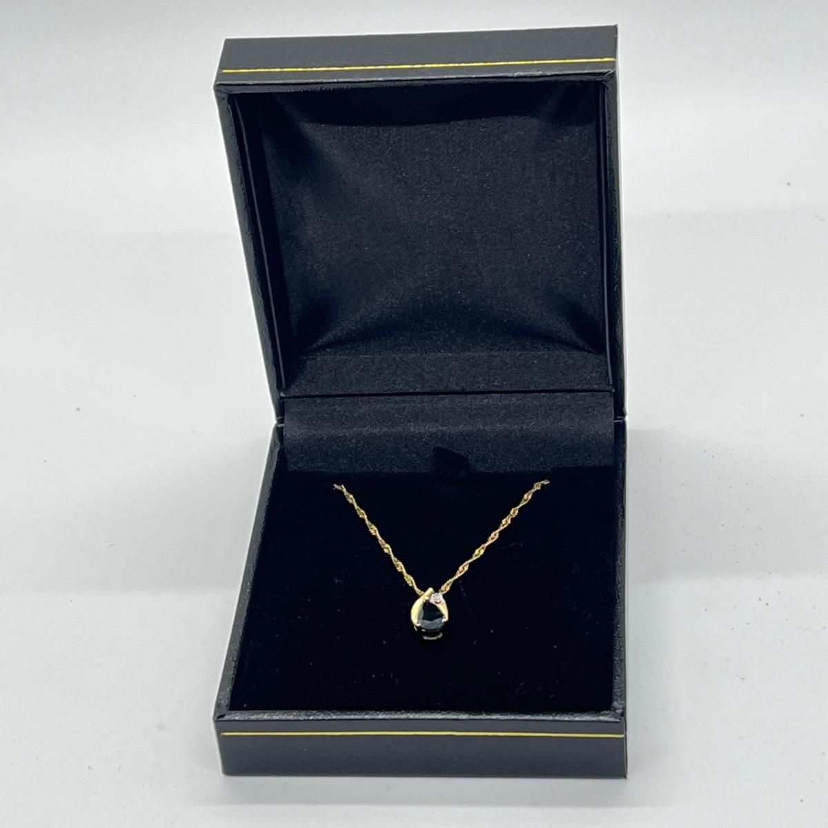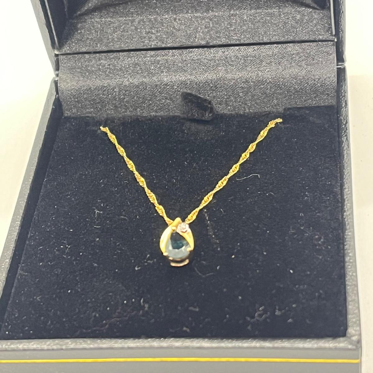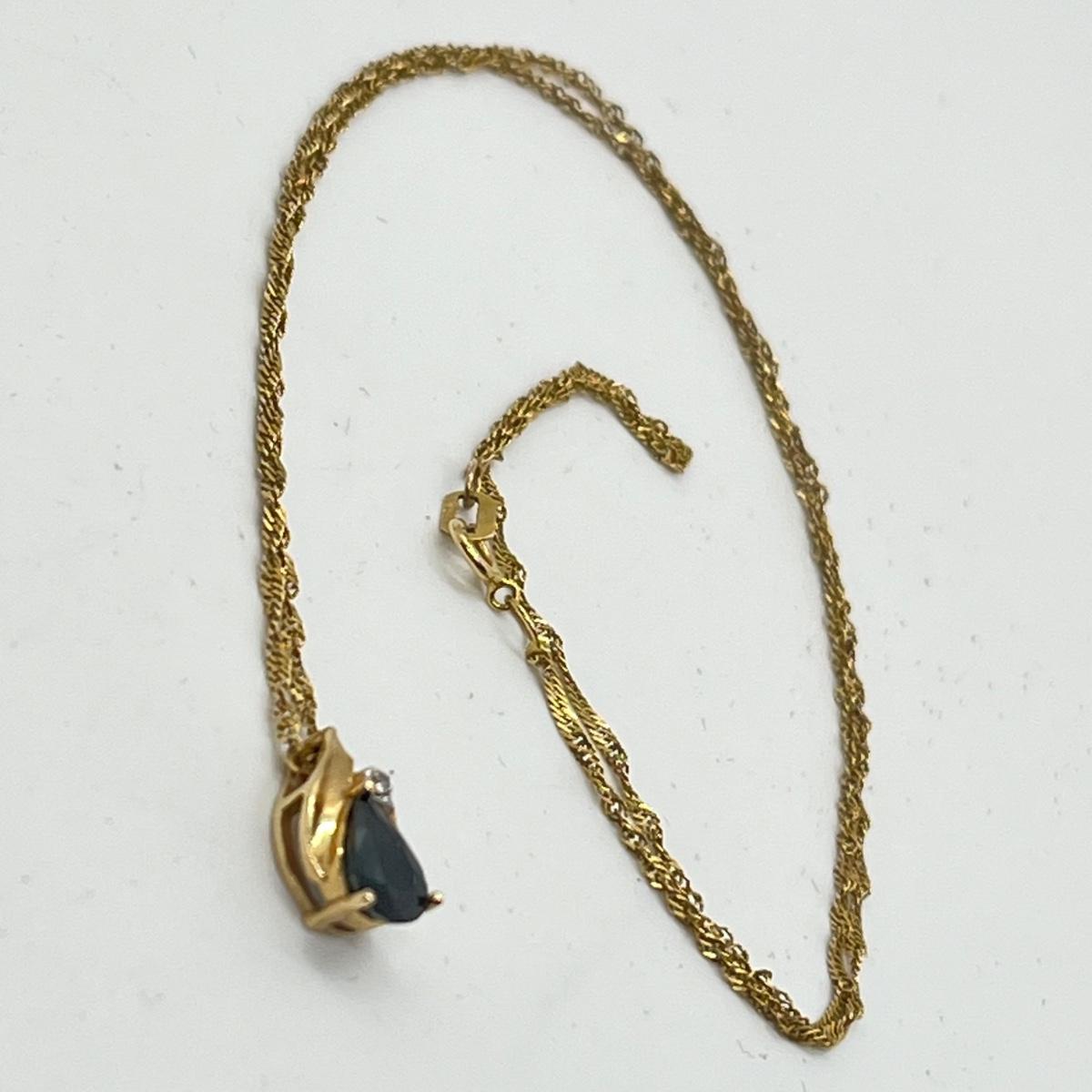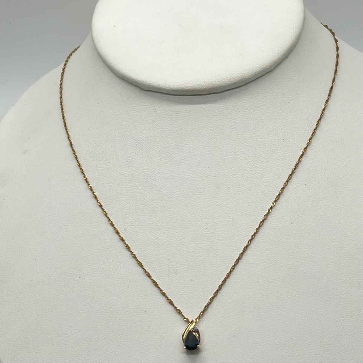 LOT 110J: 14K Teal Sapphire with Diamond Accent Pendant Necklace
