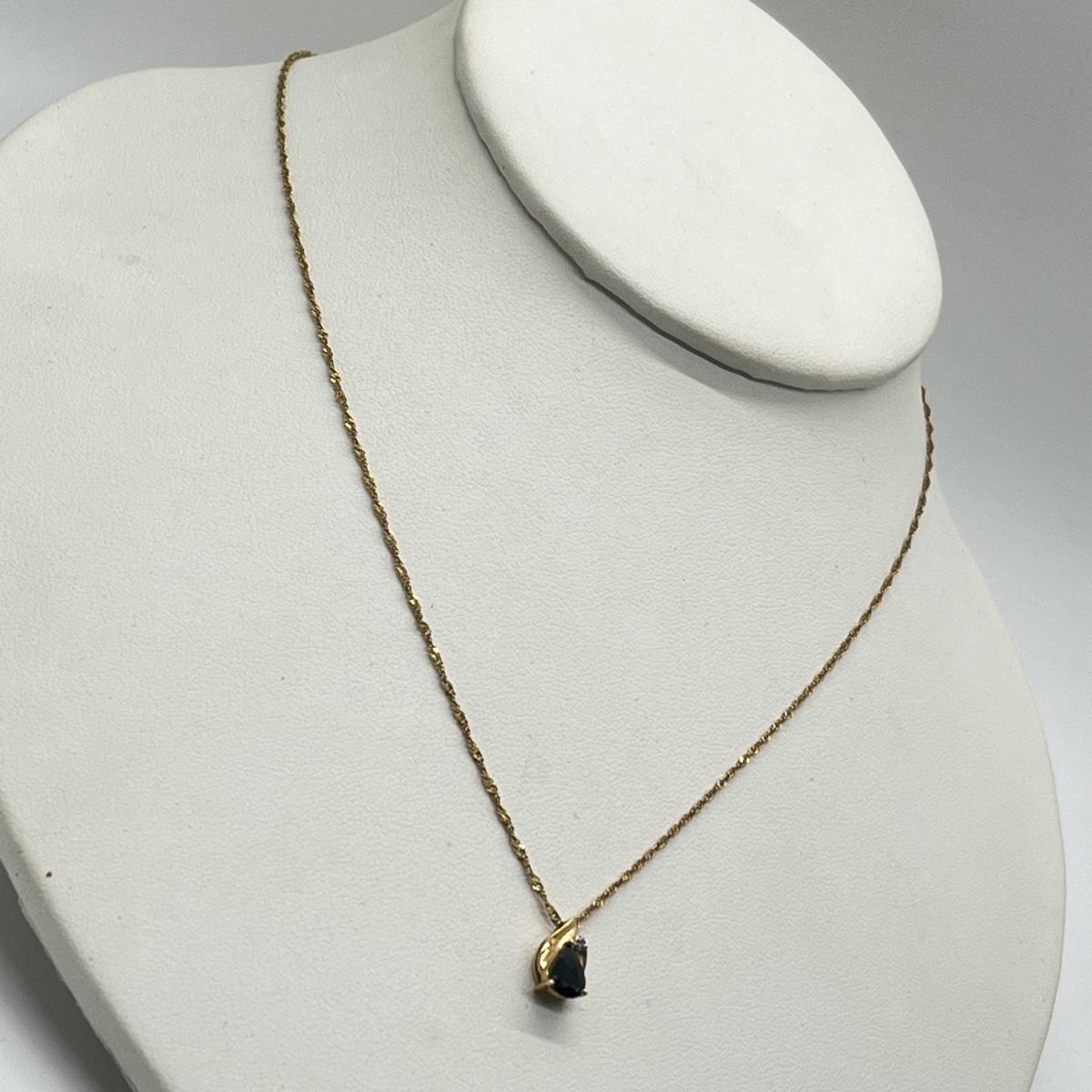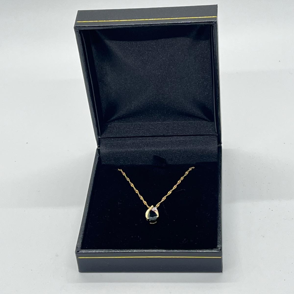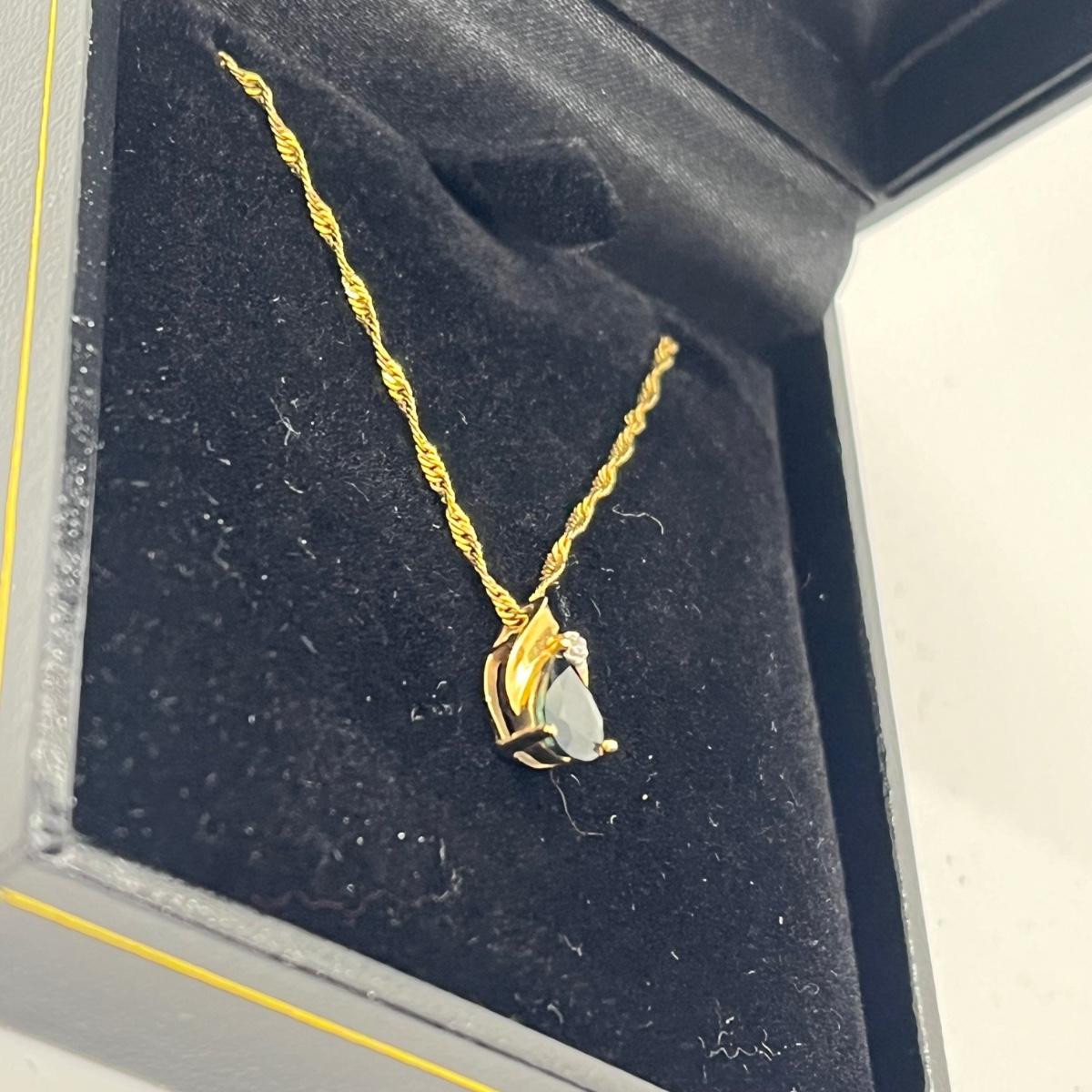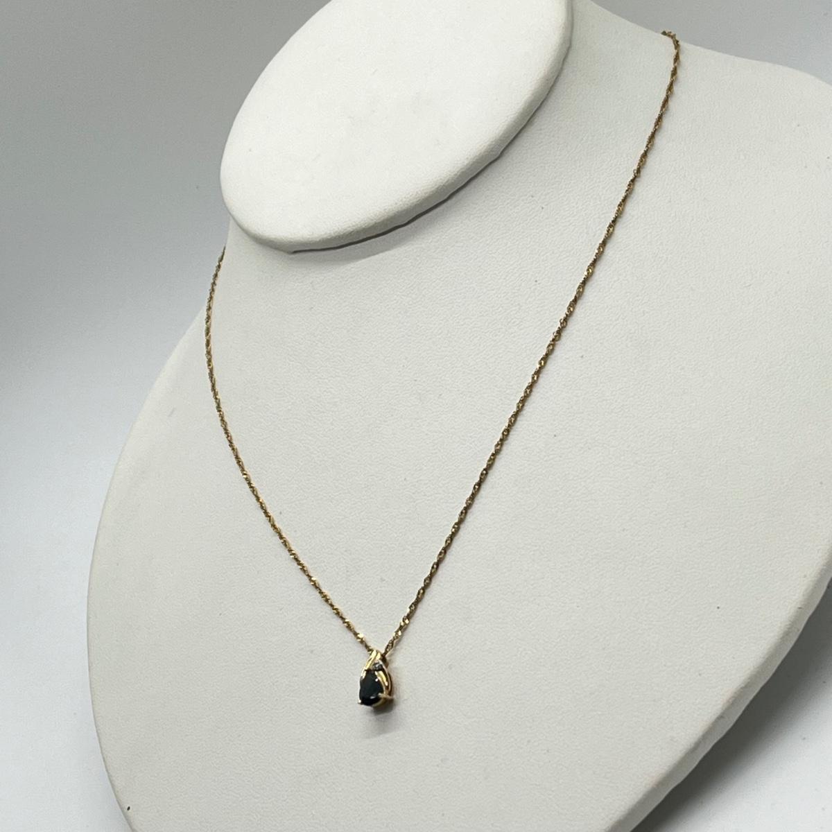 LOT 110J: 14K Teal Sapphire with Diamond Accent Pendant Necklace