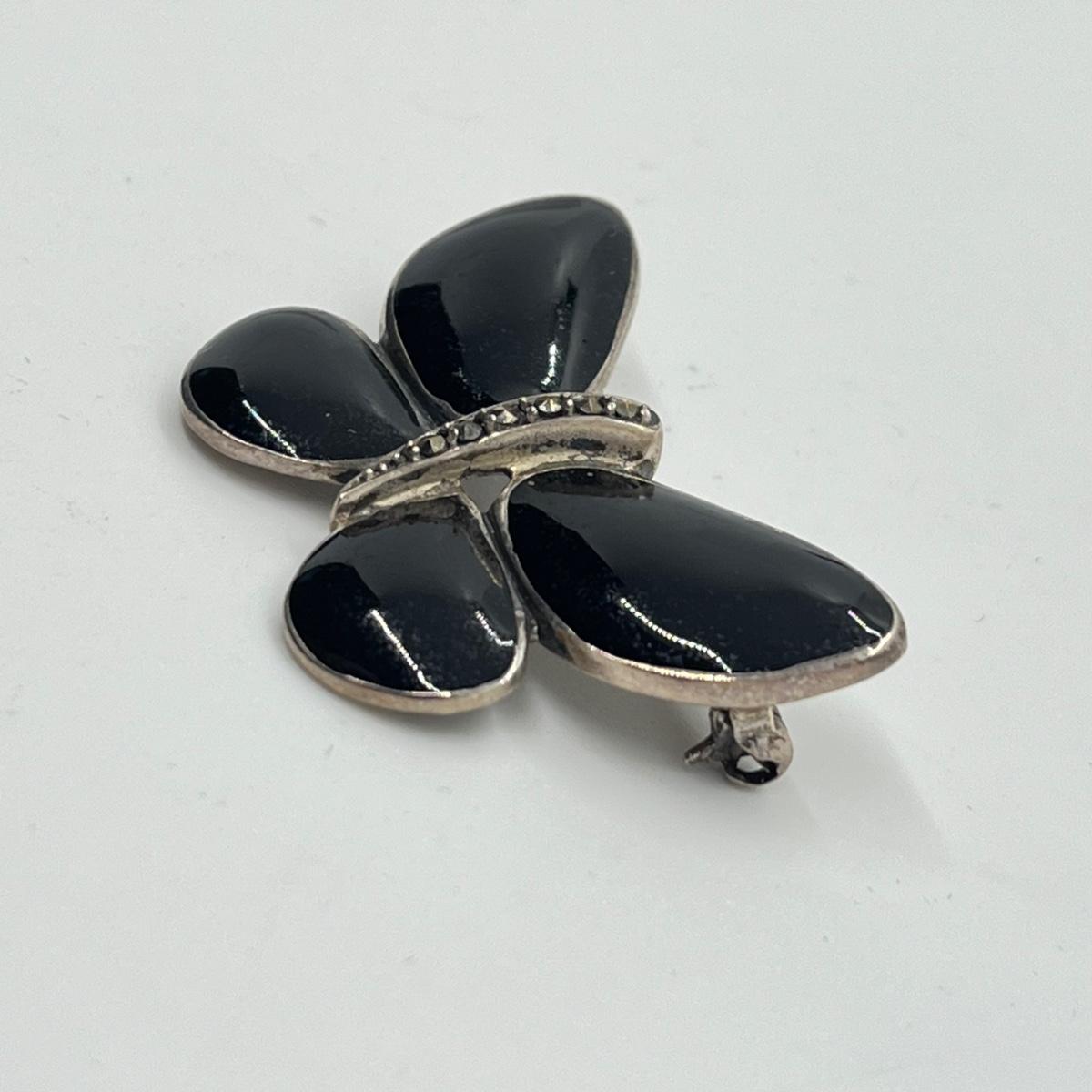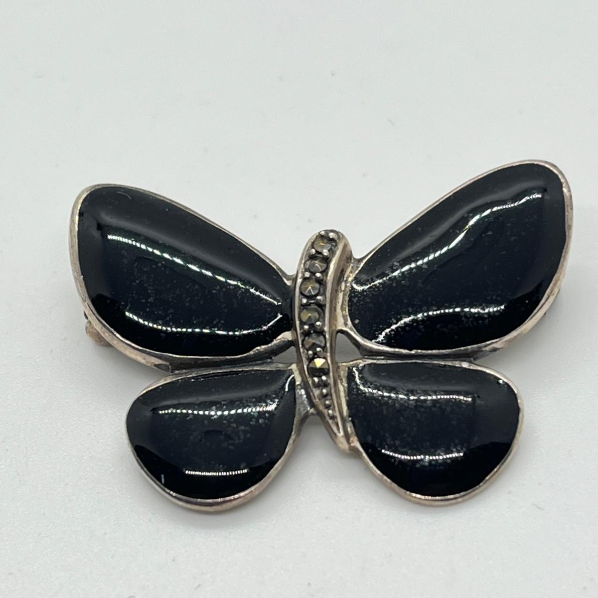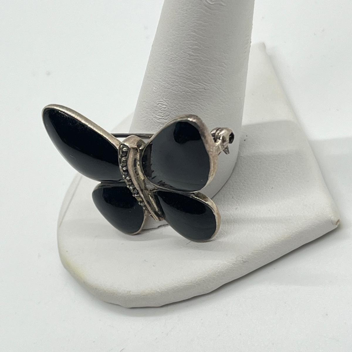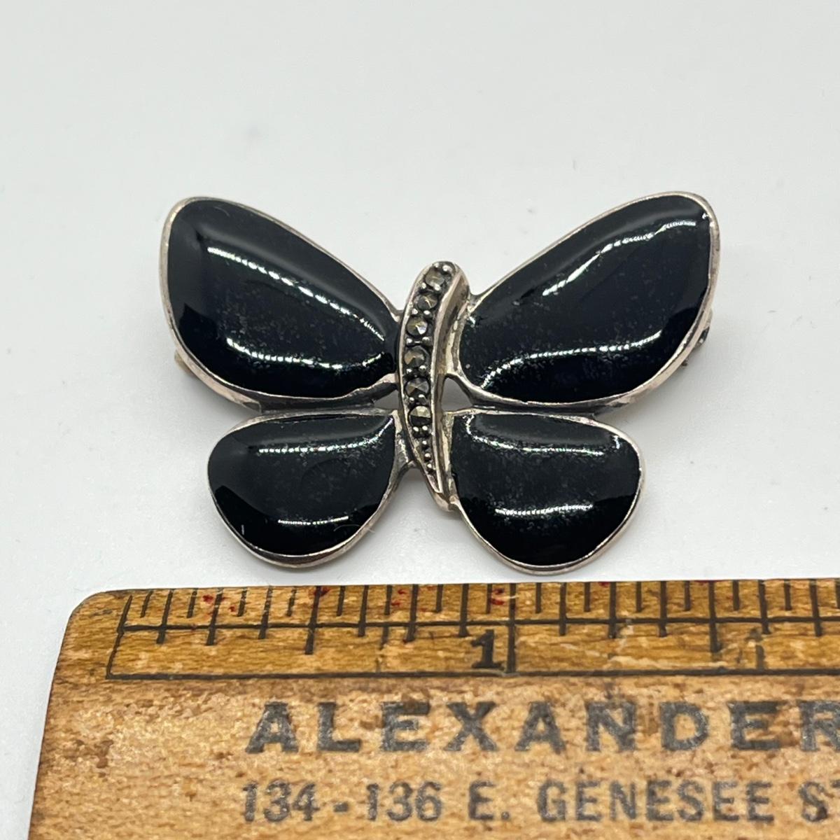 LOT 113J: 925 Black Onyx Marcasite Butterfly Pin