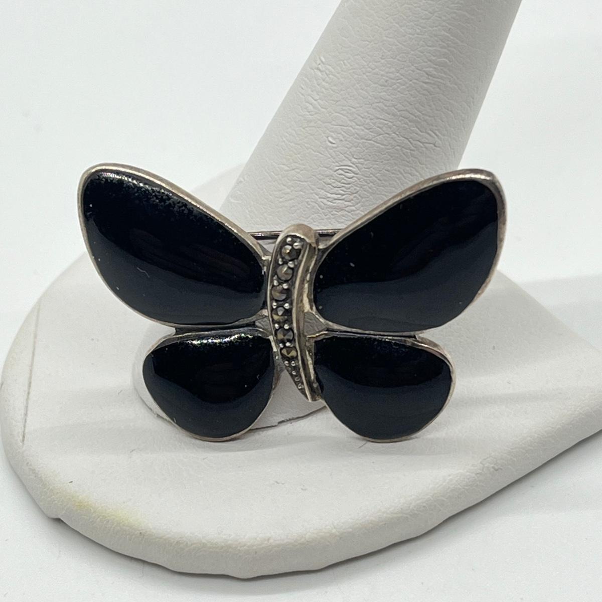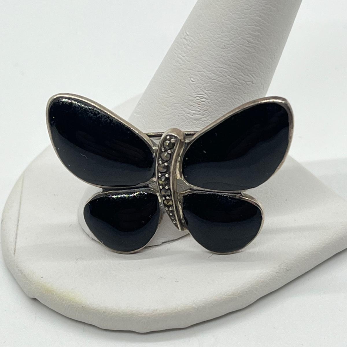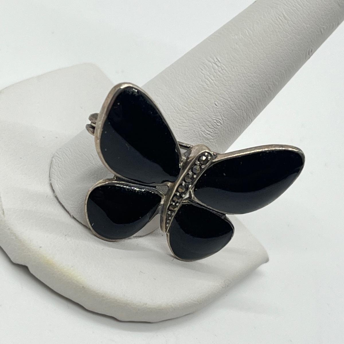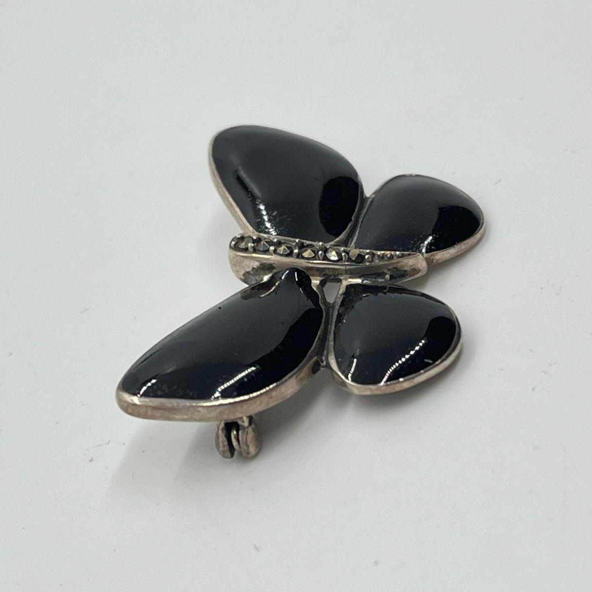 LOT 113J: 925 Black Onyx Marcasite Butterfly Pin