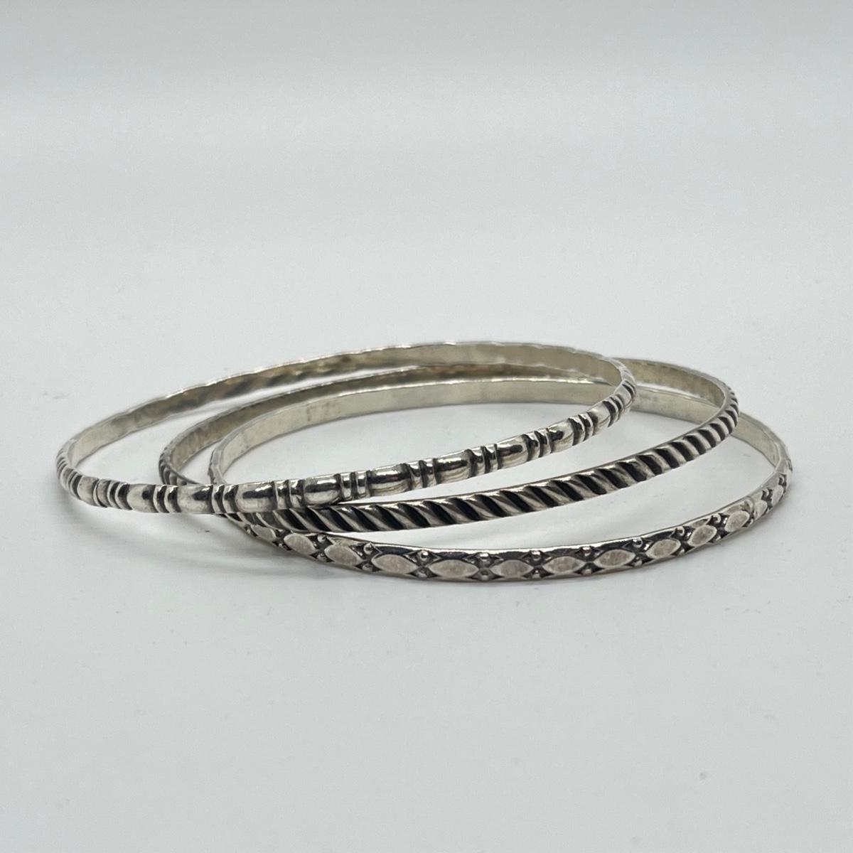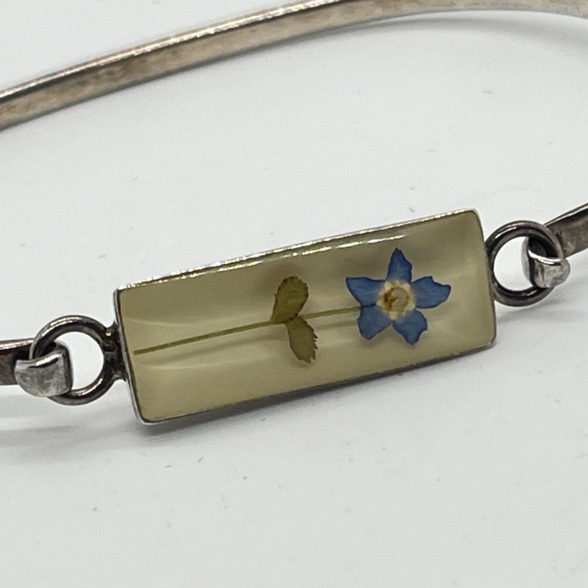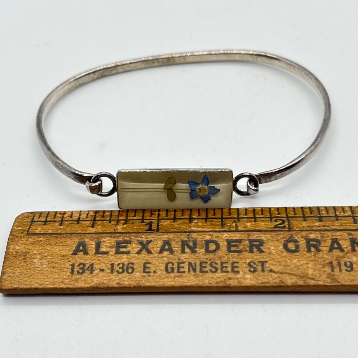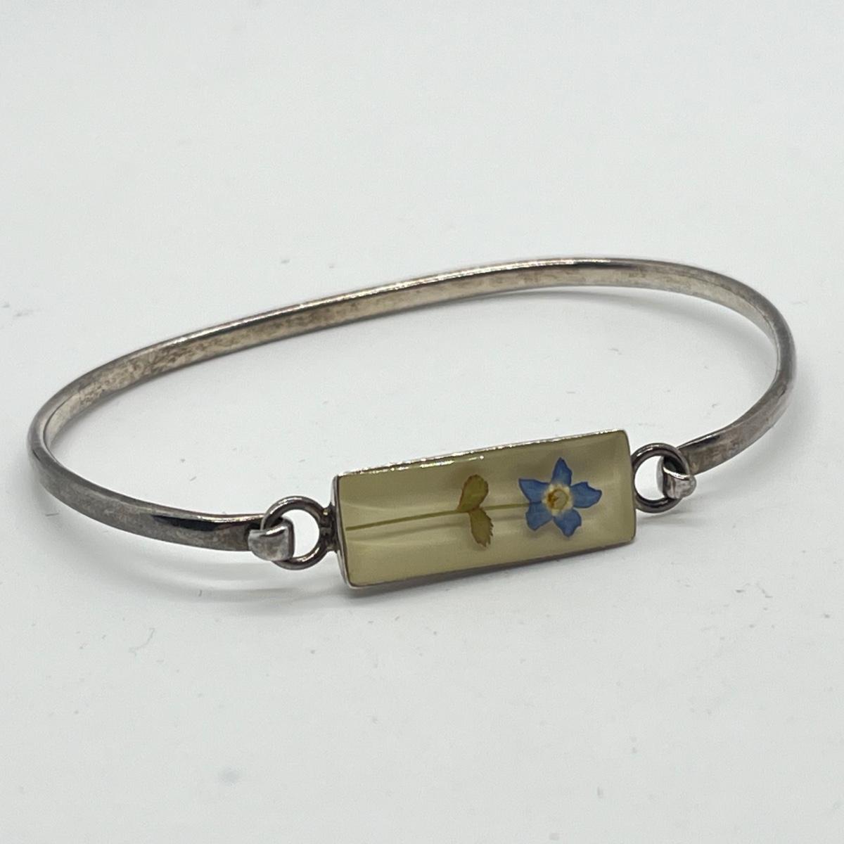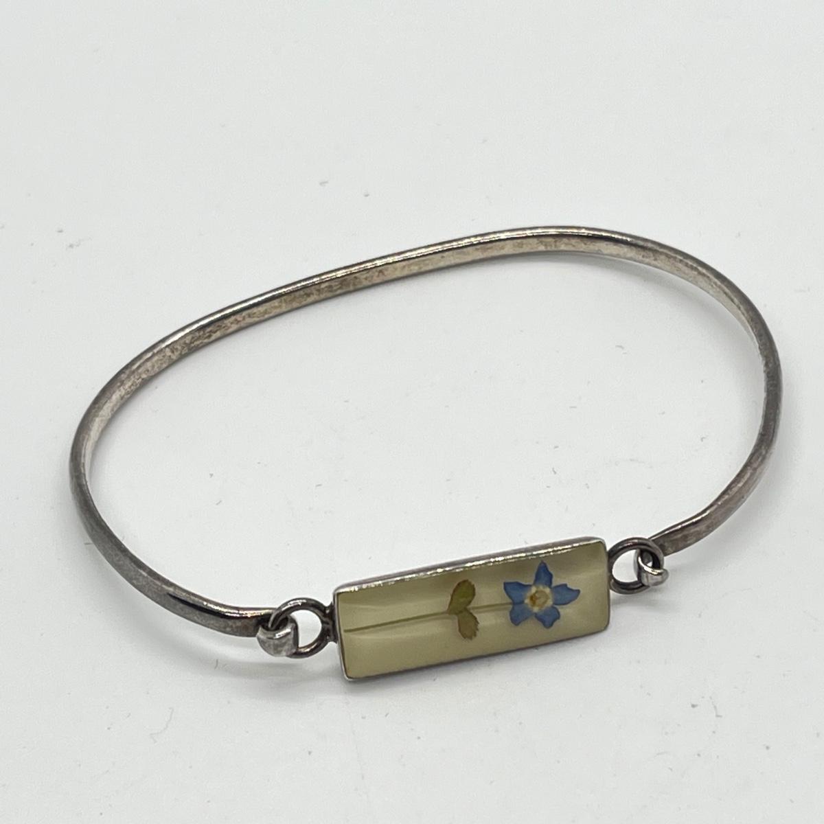 LOT 114J: Vintage 925 Sterling Silver "Forget Me Not" Flower Hinged Bangle Bracelet plus Three Sterling Silver Bangles