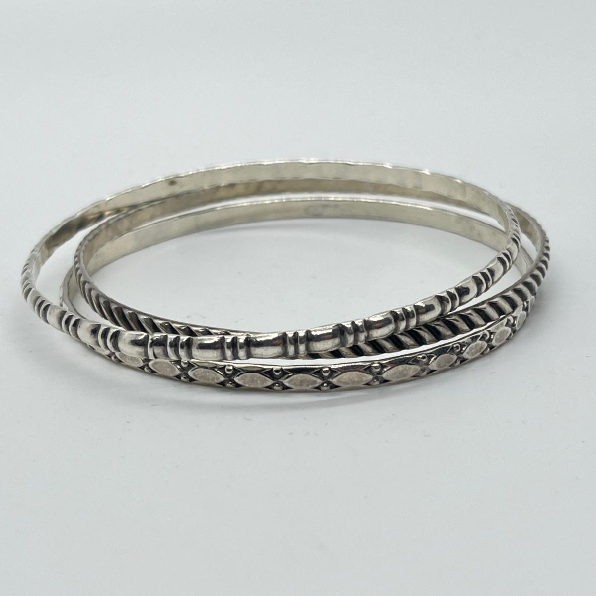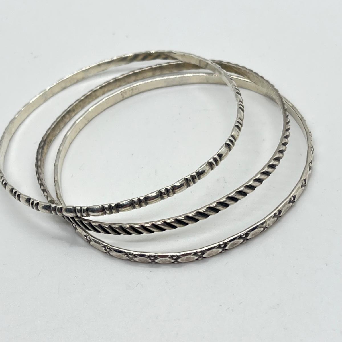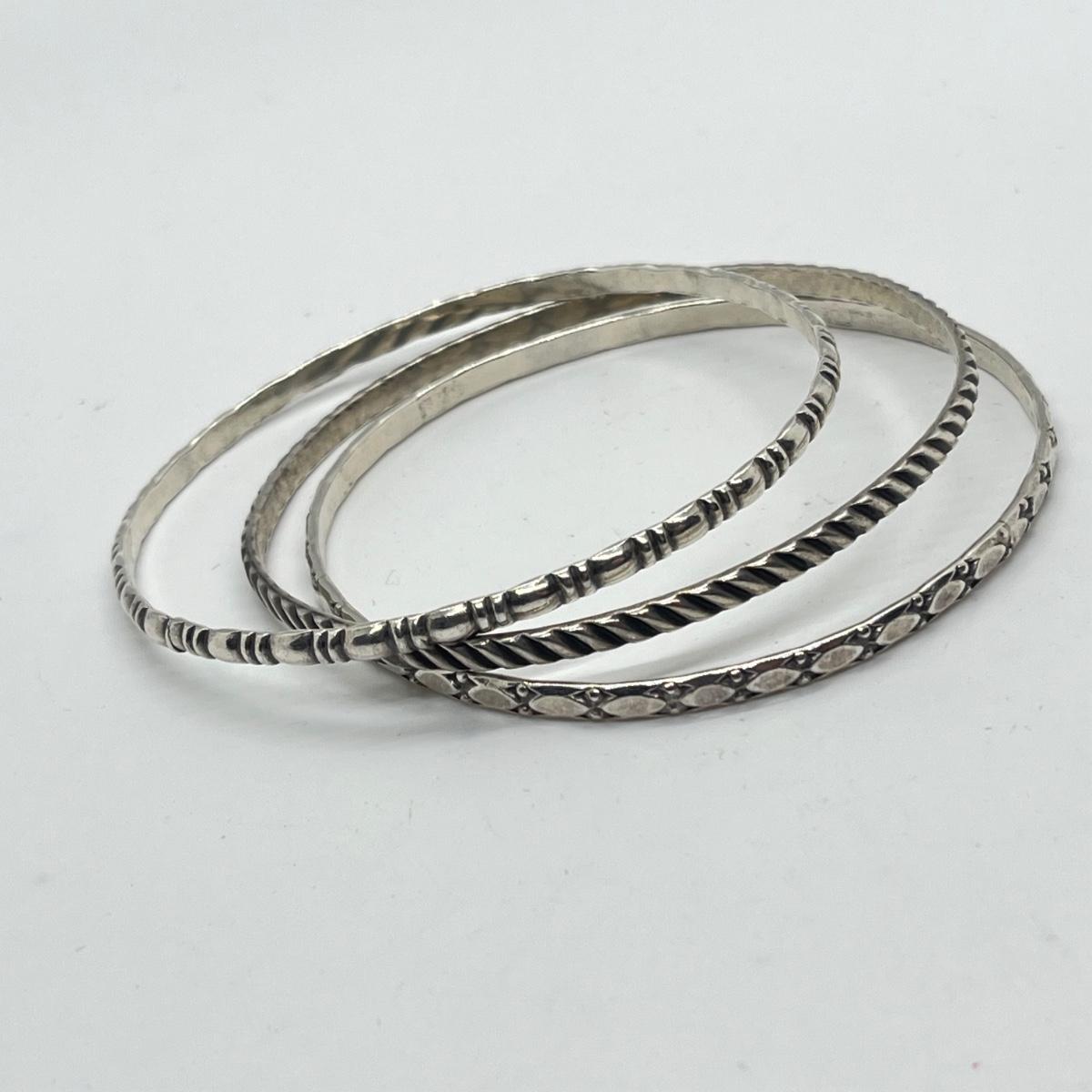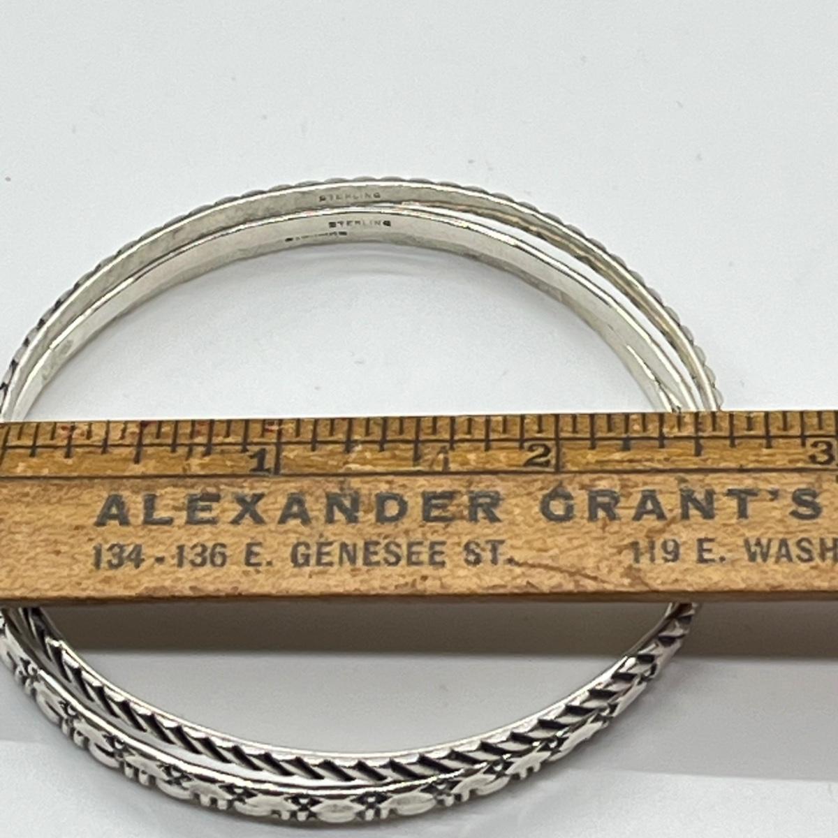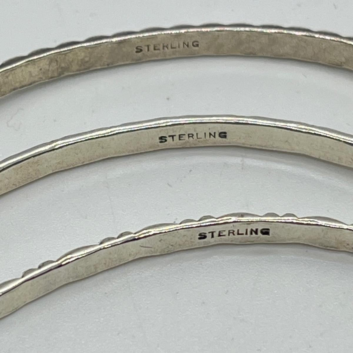 LOT 114J: Vintage 925 Sterling Silver "Forget Me Not" Flower Hinged Bangle Bracelet plus Three Sterling Silver Bangles