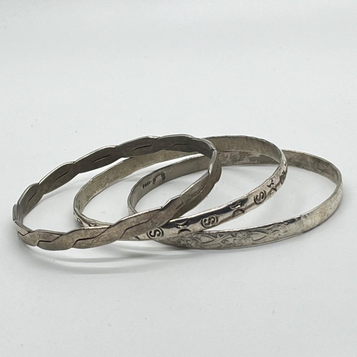 LOT 116J: S. Kirk & Son Sterling Cuff and Two "Mexico" Sterling Bangle Bracelets