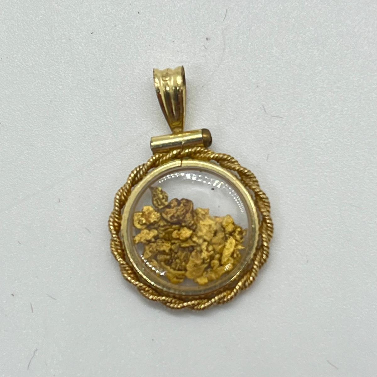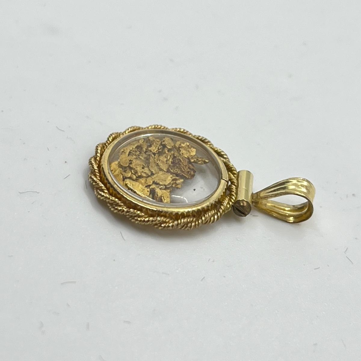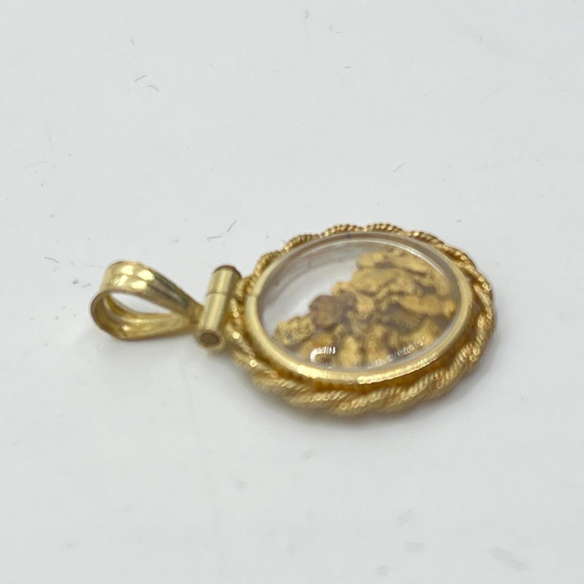 LOT 132J: Vintage Rope Frame Gold Filled Actual Gold Nugget Pendant