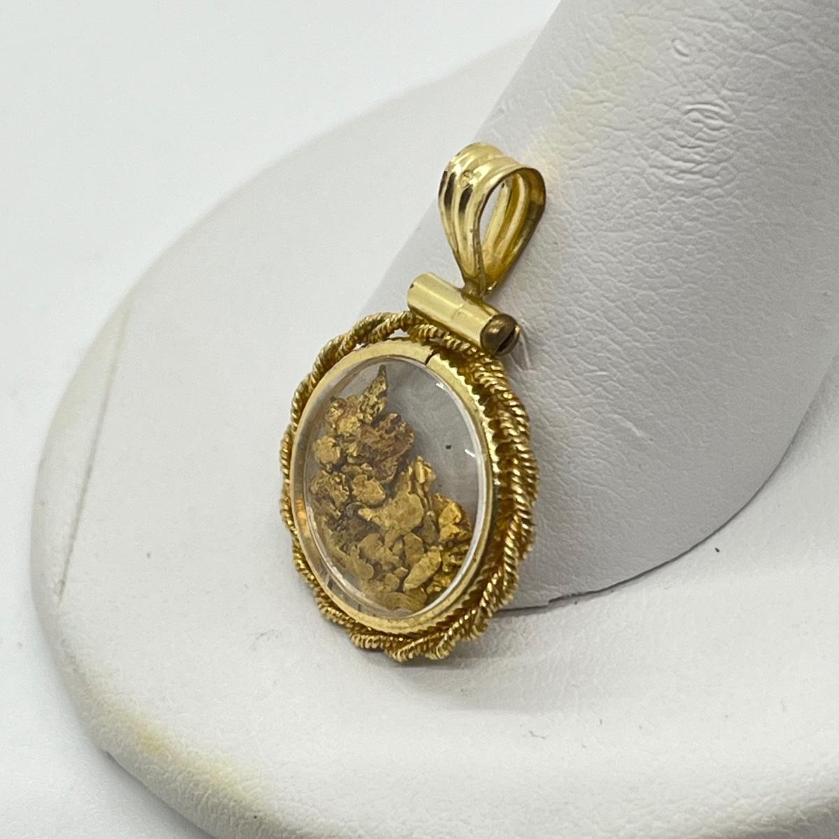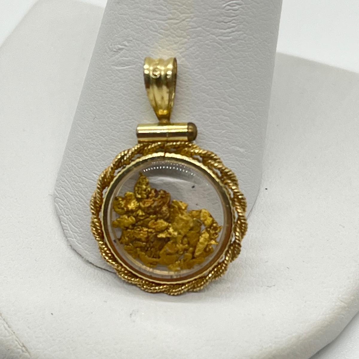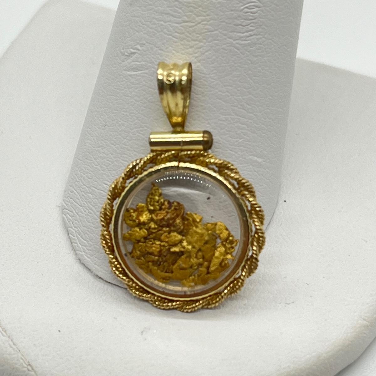 LOT 132J: Vintage Rope Frame Gold Filled Actual Gold Nugget Pendant