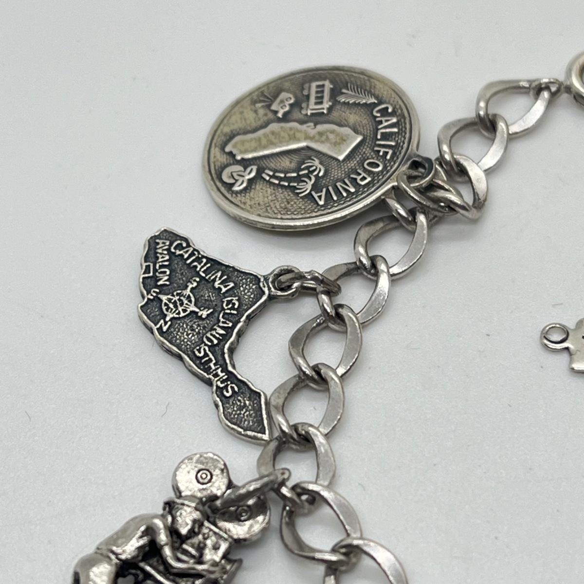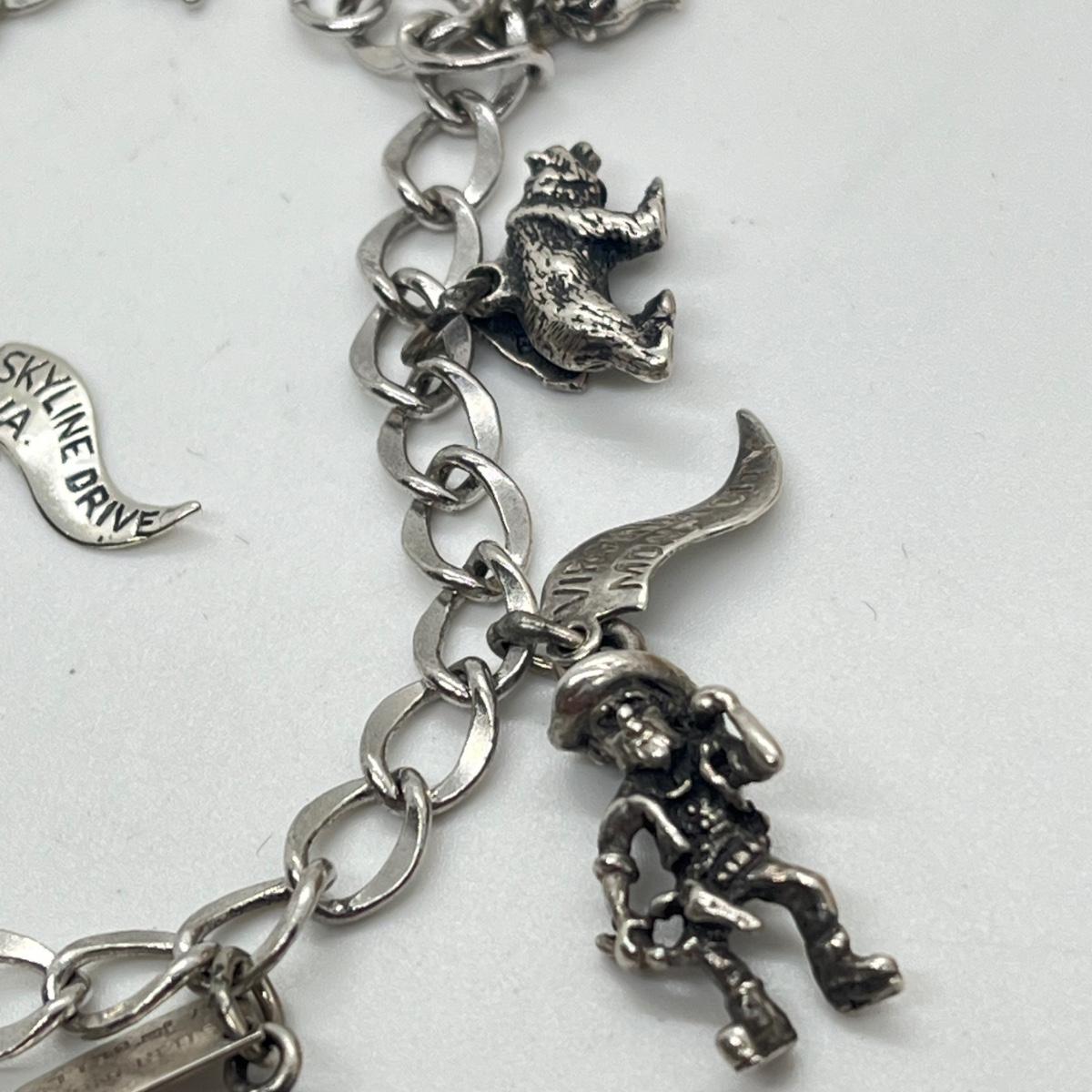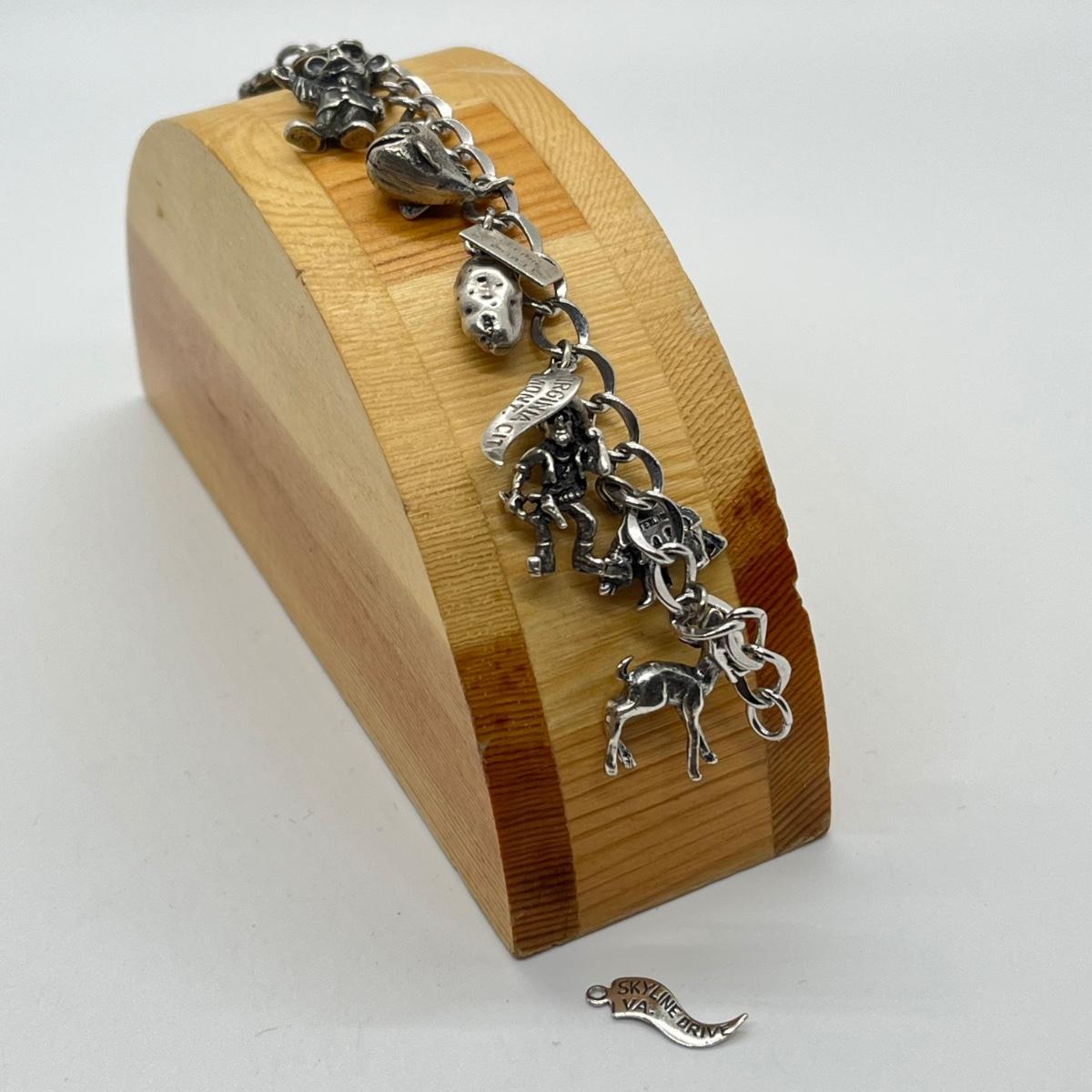 LOT 134J: Travel Souvenir Sterling Silver Charm Bracelet - 7" - 32.3 grams