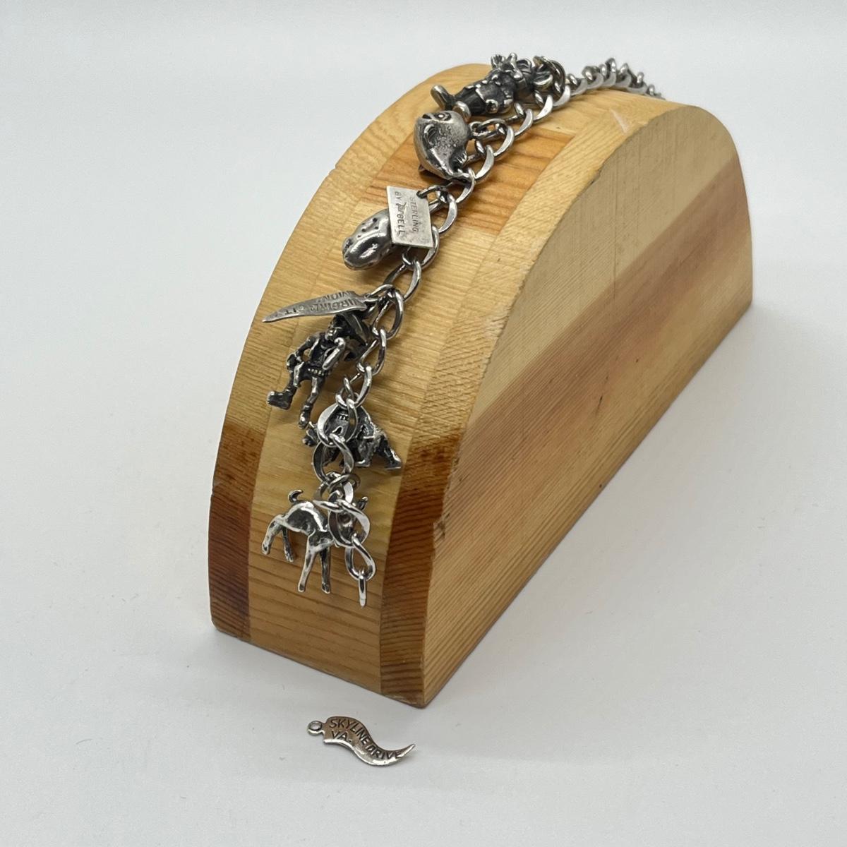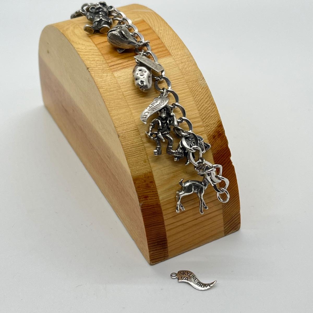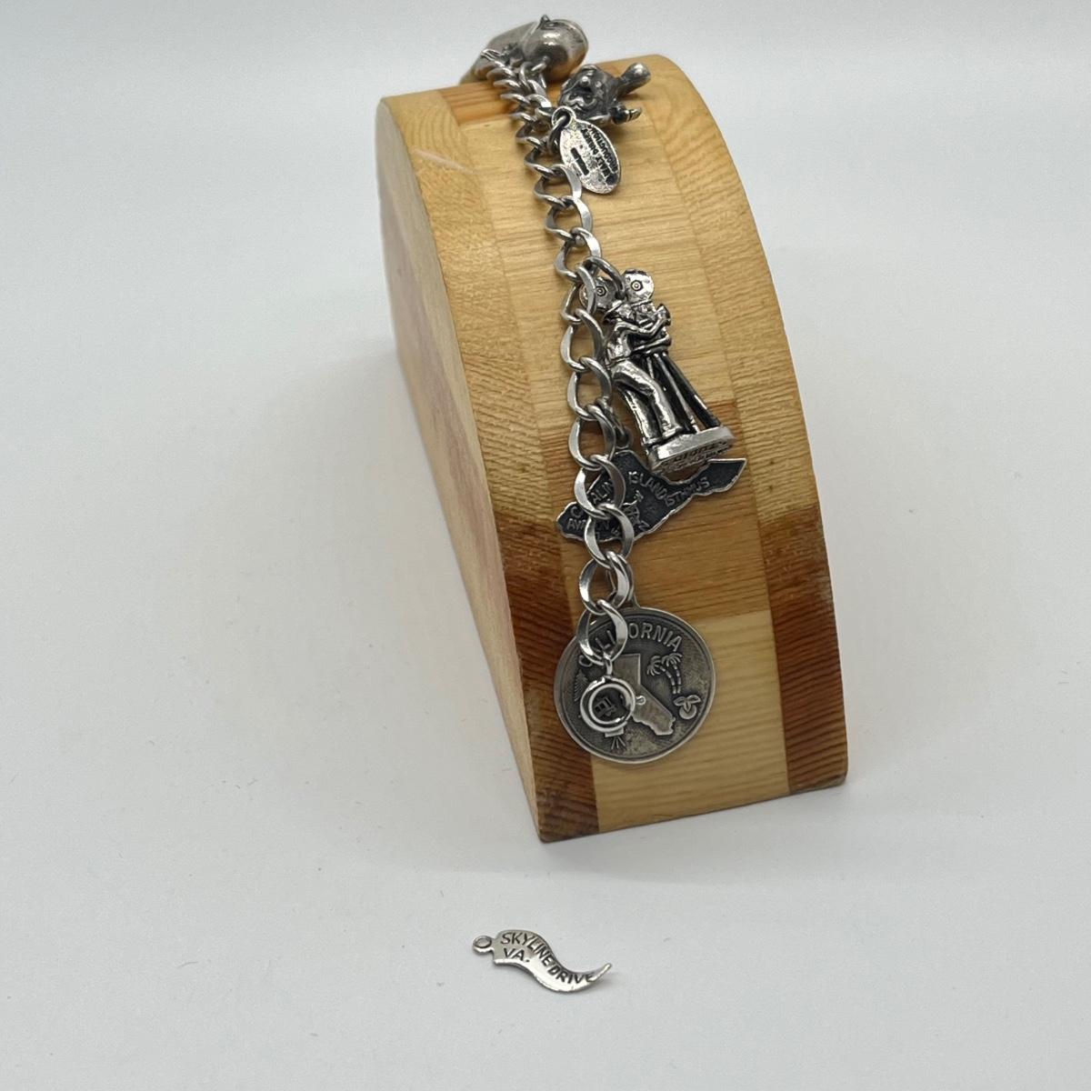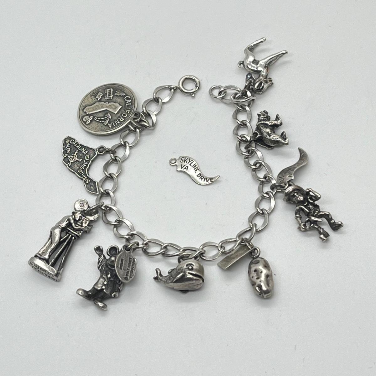 LOT 134J: Travel Souvenir Sterling Silver Charm Bracelet - 7" - 32.3 grams