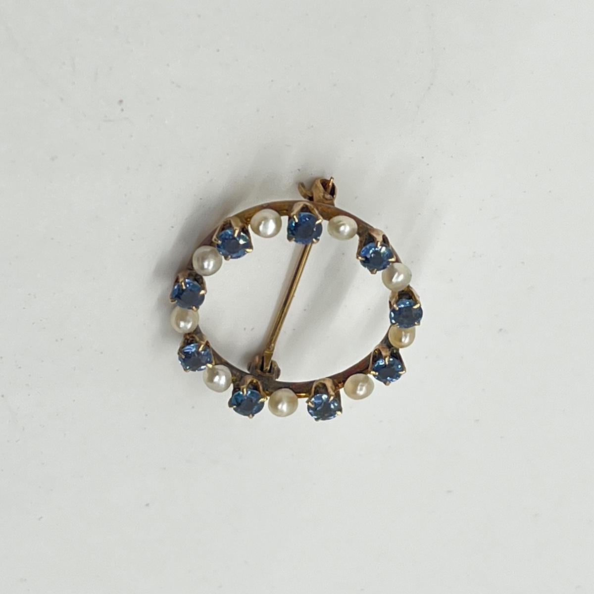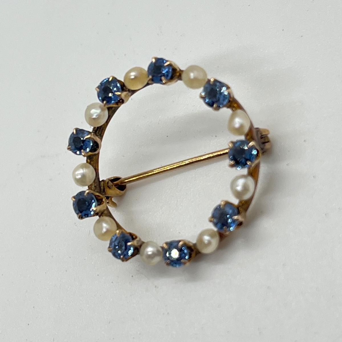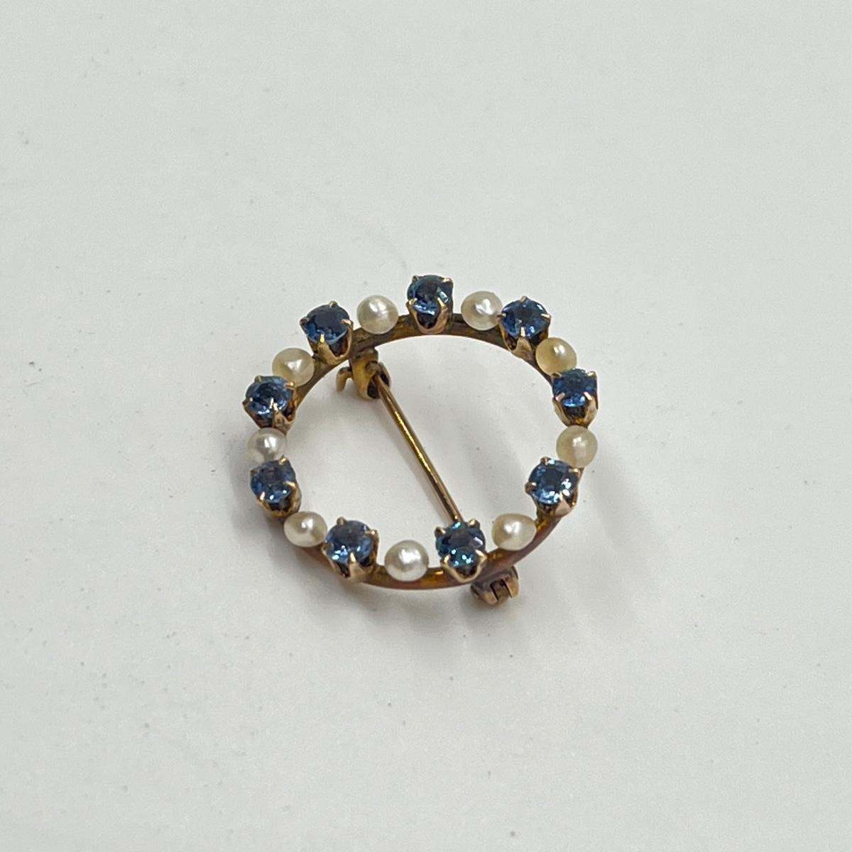 LOT 137J: Antique 10K Genuine Sapphires and Pearls Open Circle Brooch/Pin
