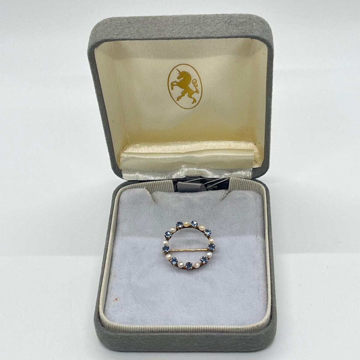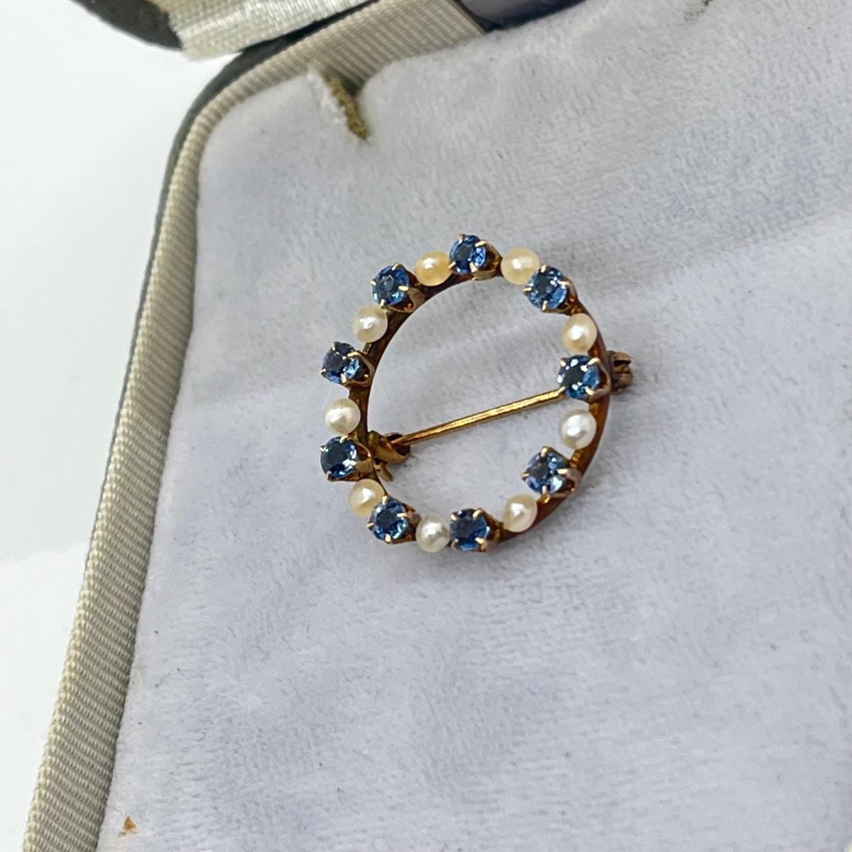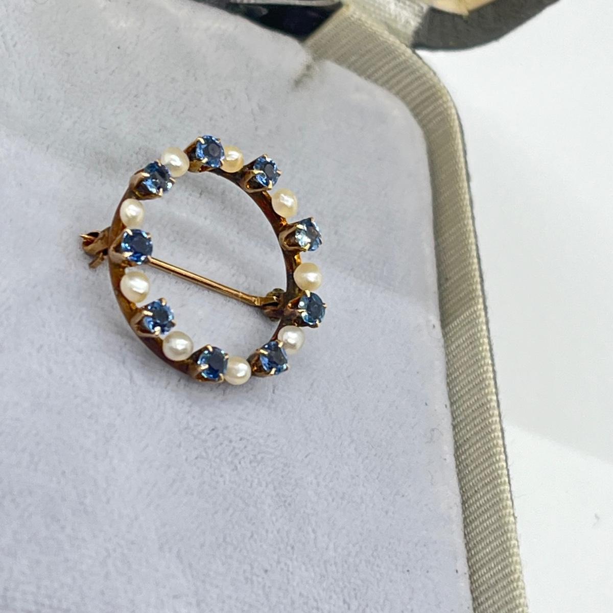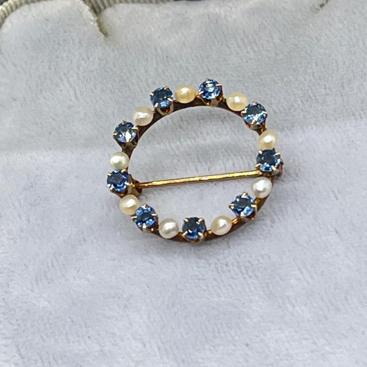 LOT 137J: Antique 10K Genuine Sapphires and Pearls Open Circle Brooch/Pin