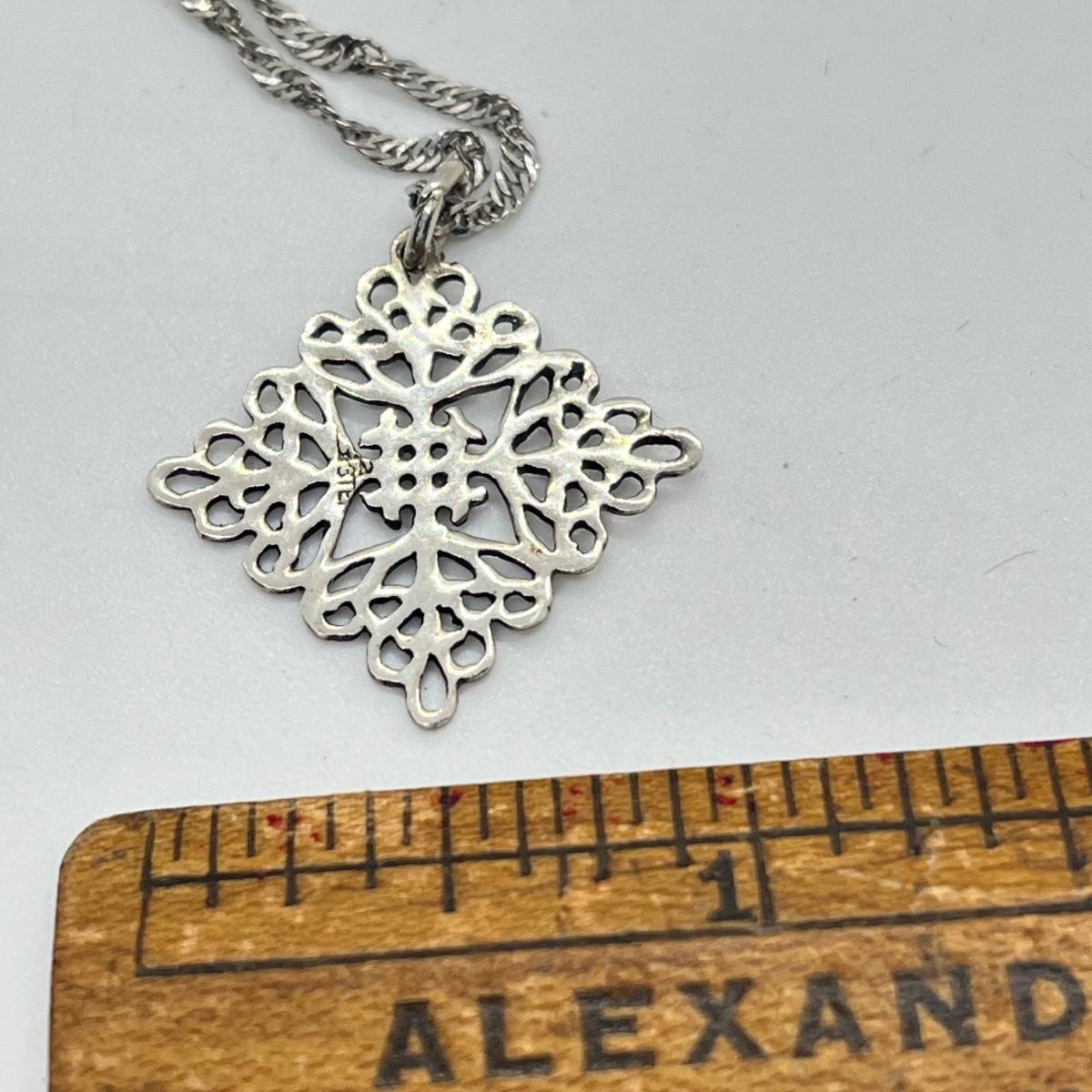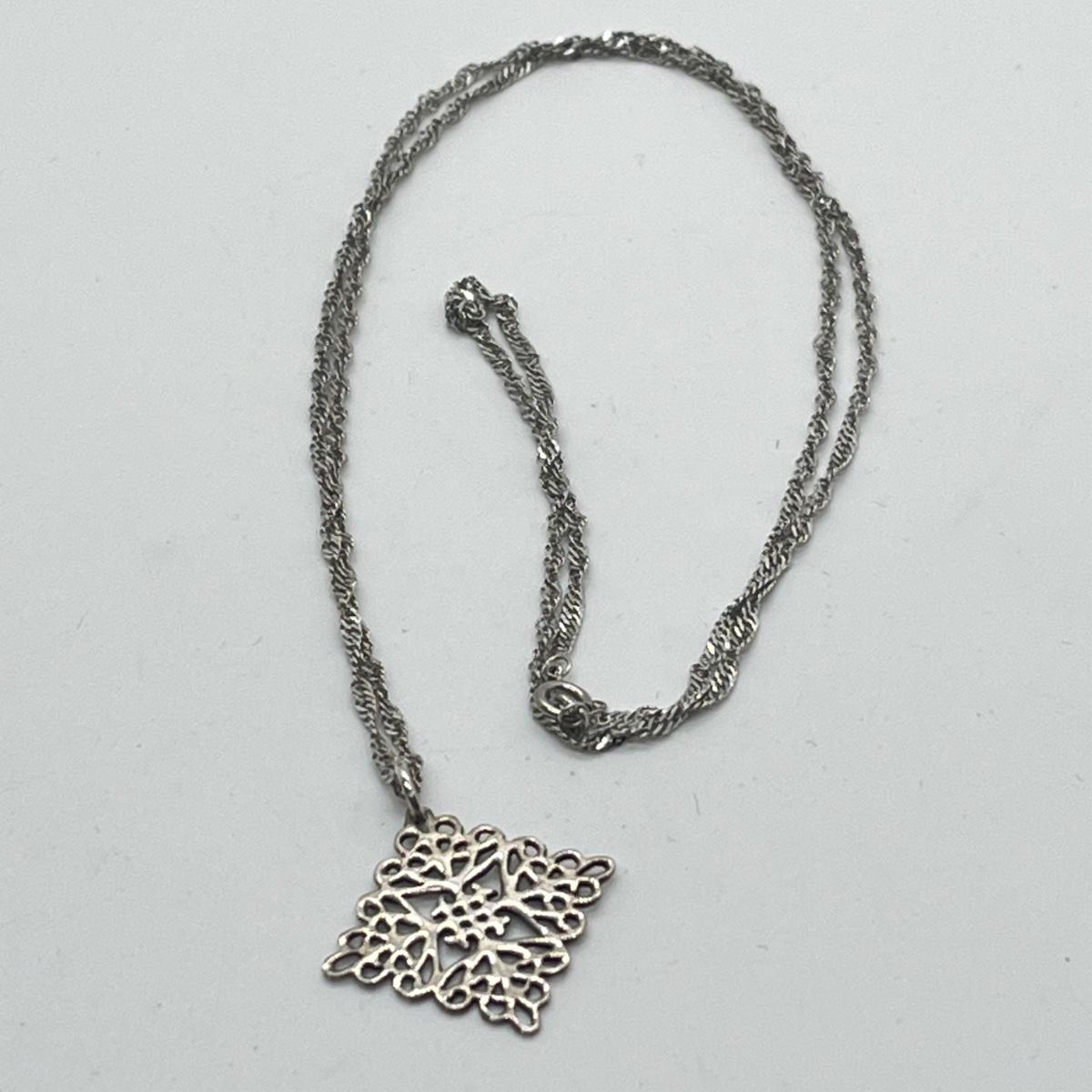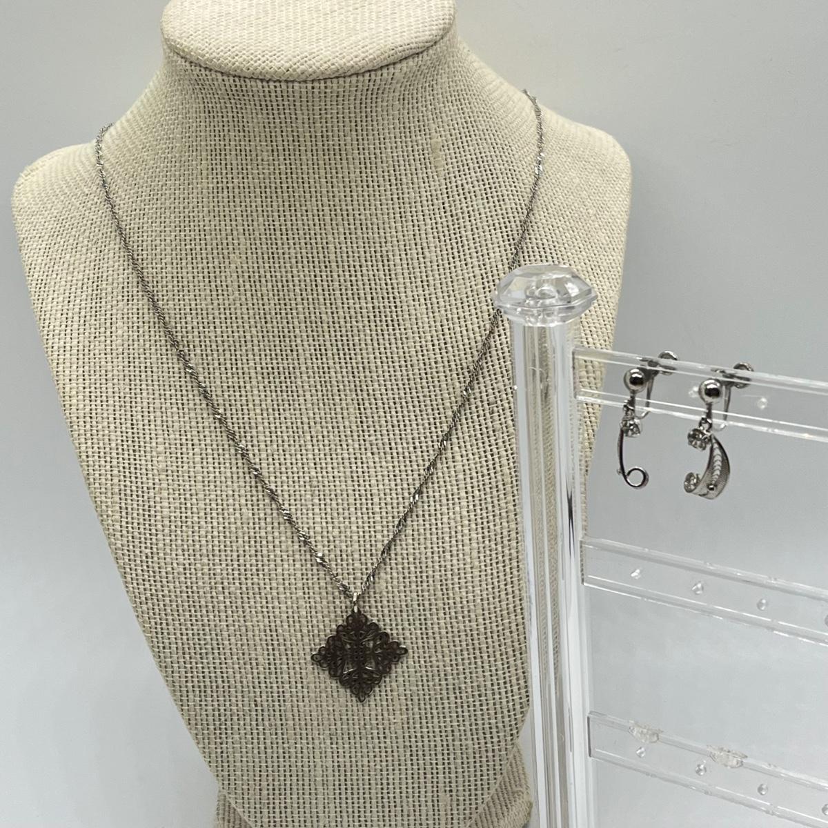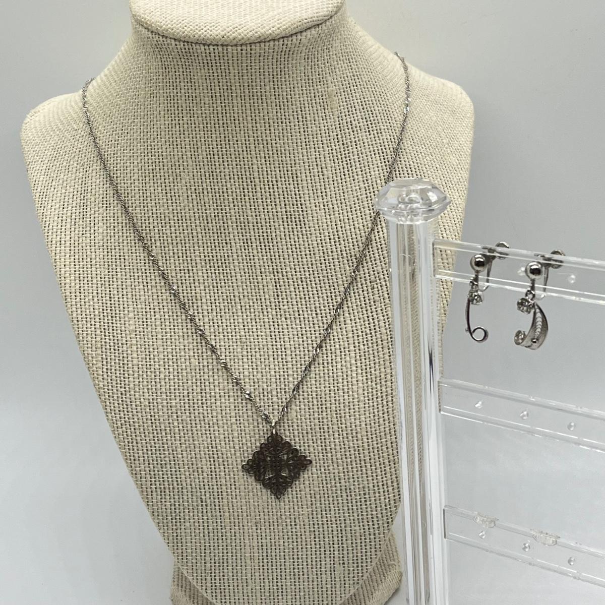 LOT 138J: 14K White Gold Chain, Sterling Screwback Earrings and Pendant