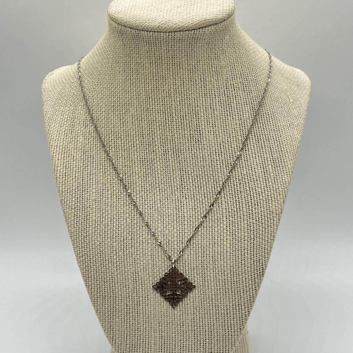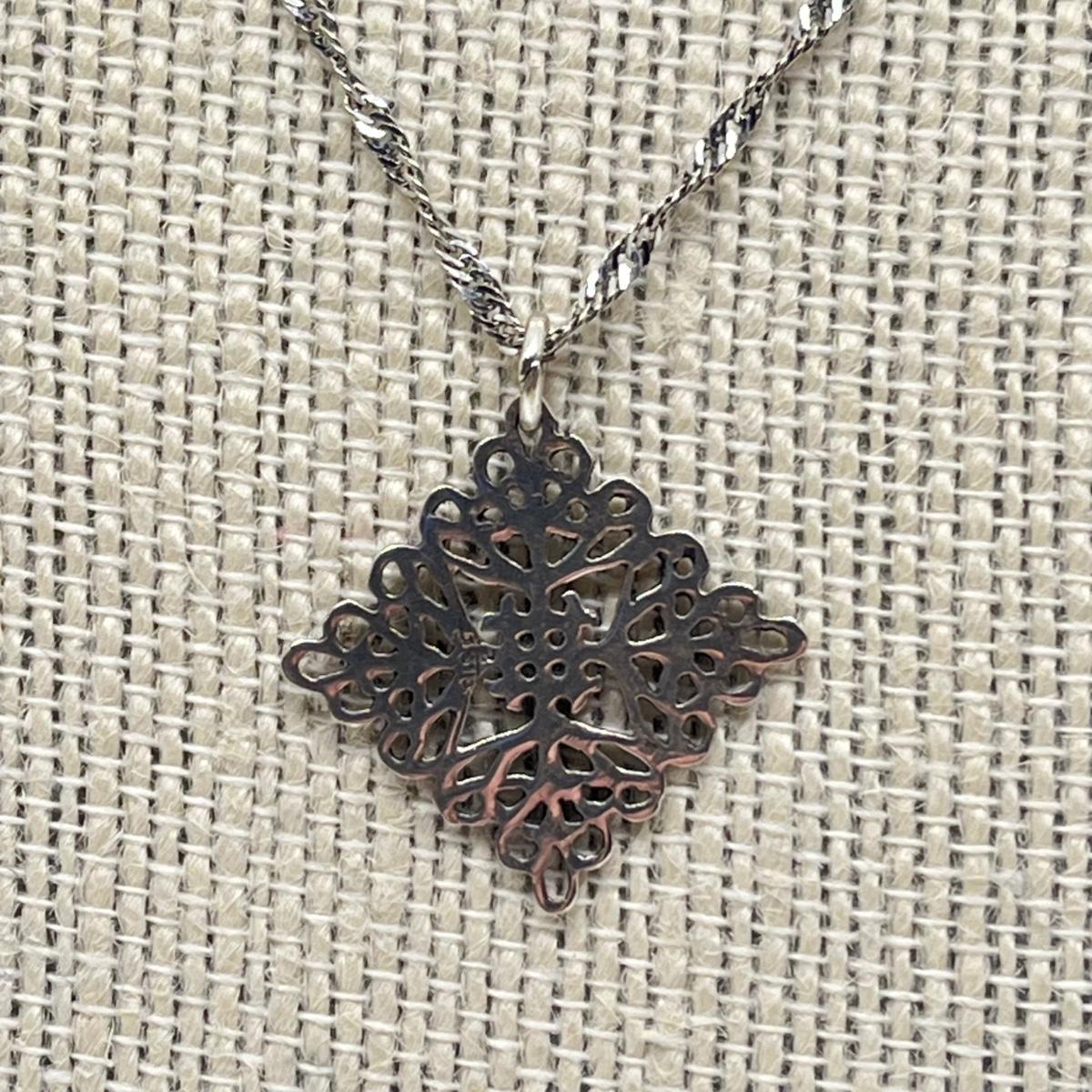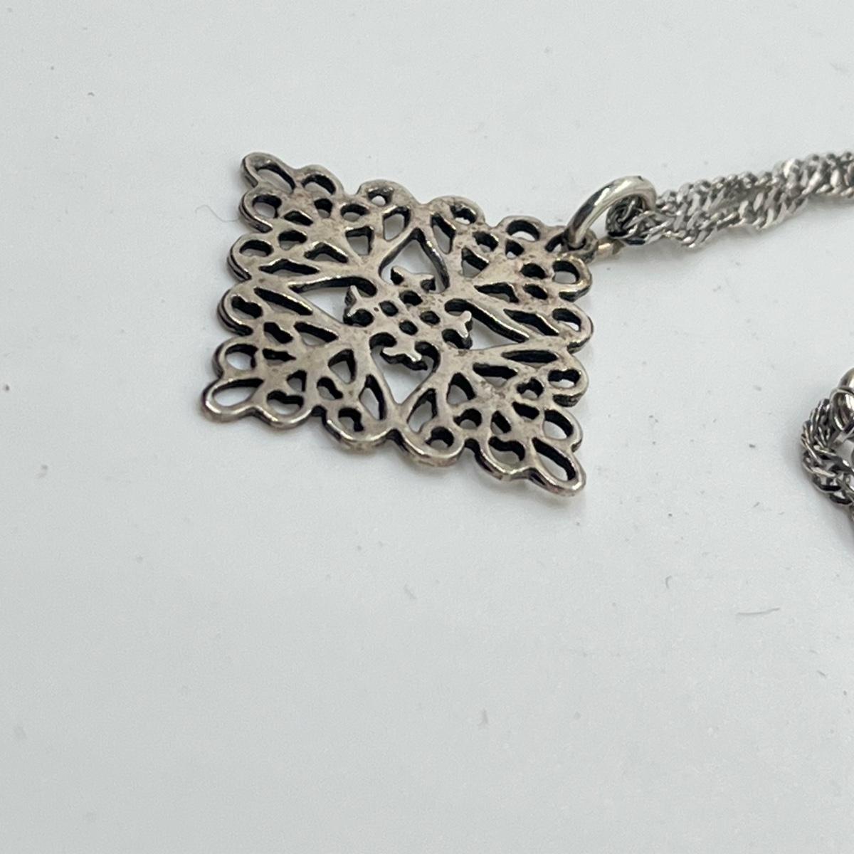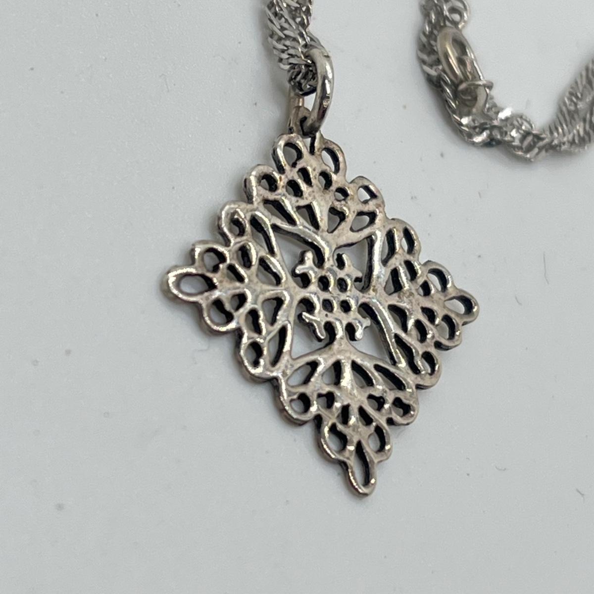 LOT 138J: 14K White Gold Chain, Sterling Screwback Earrings and Pendant