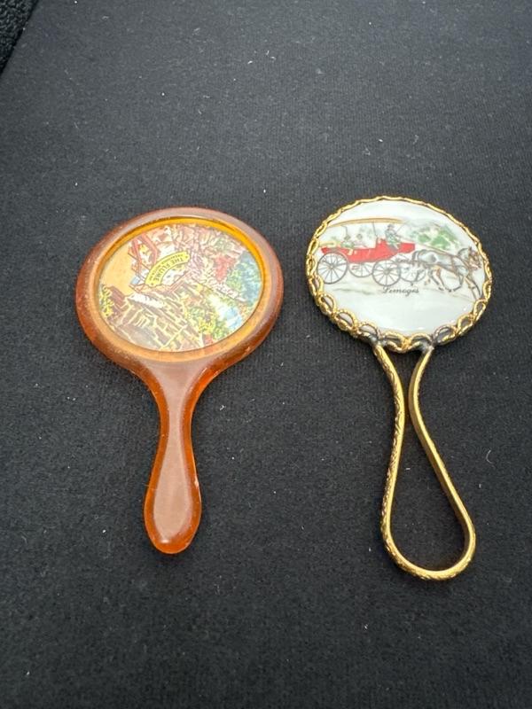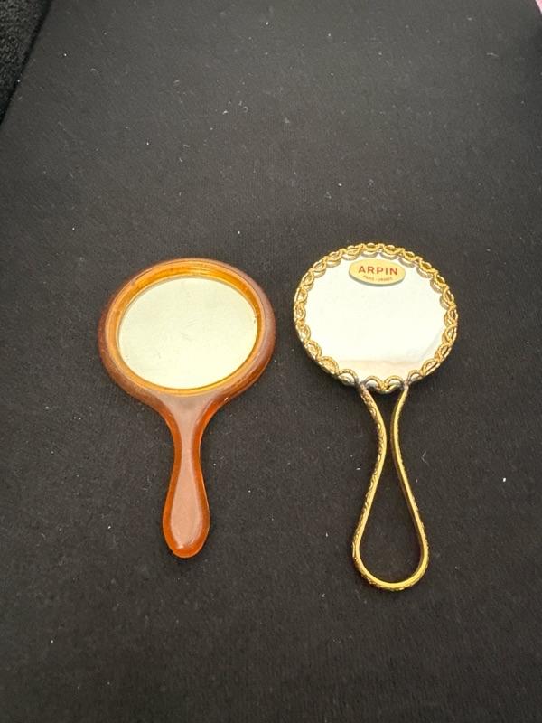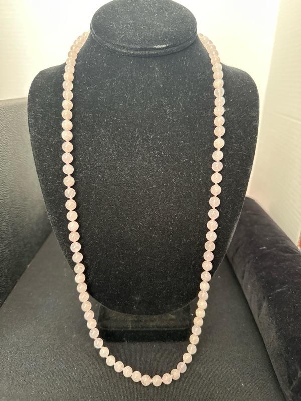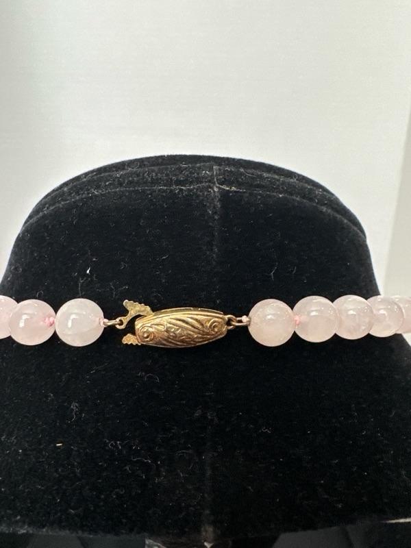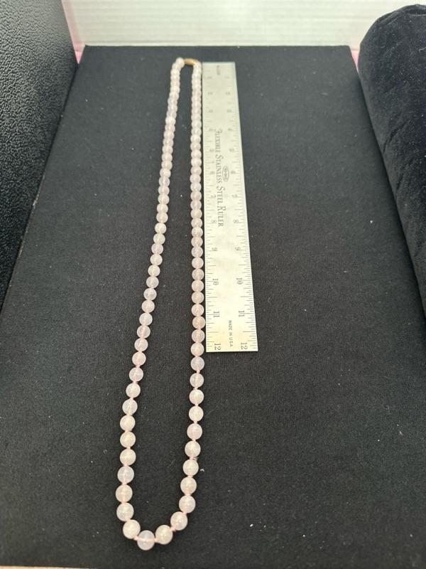 Lot 1018 pink rose quartz round beaded necklace and 2 mirrors
