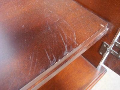 Very nice dress + tv stand. Measures 68 1/2'' tall x 40 1/8'' wide x 22 3/4'' deep. Light scratches inside from TV