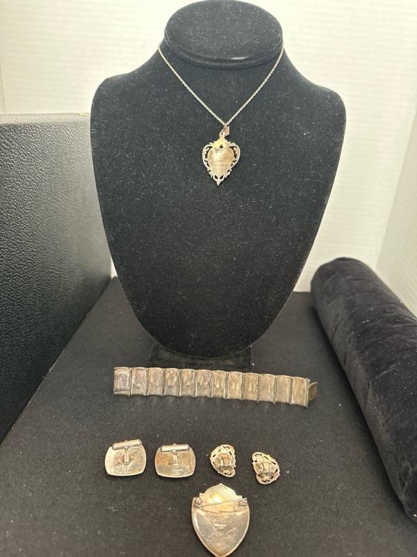 Vintage set of Siam necklace pendant, earrings, pin/ brooch,cufflinks, bracelet chain is not sterling