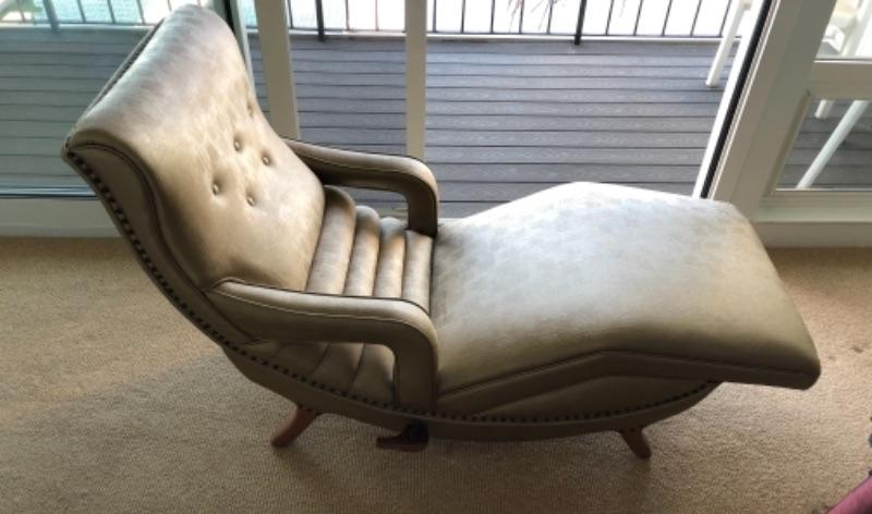 Lot 101U. Mid century Chaise recliner lounge, pleather, gold --$75