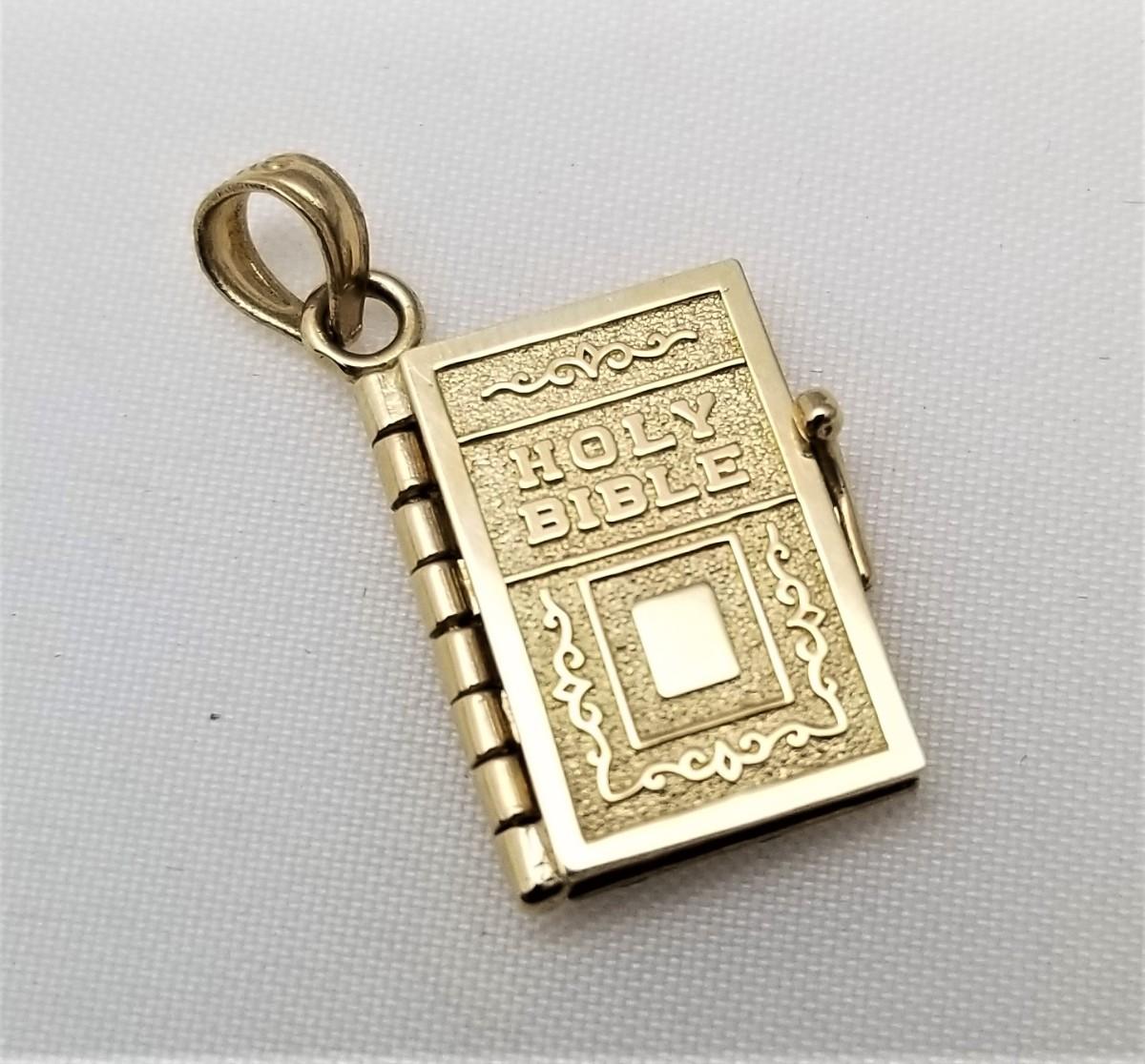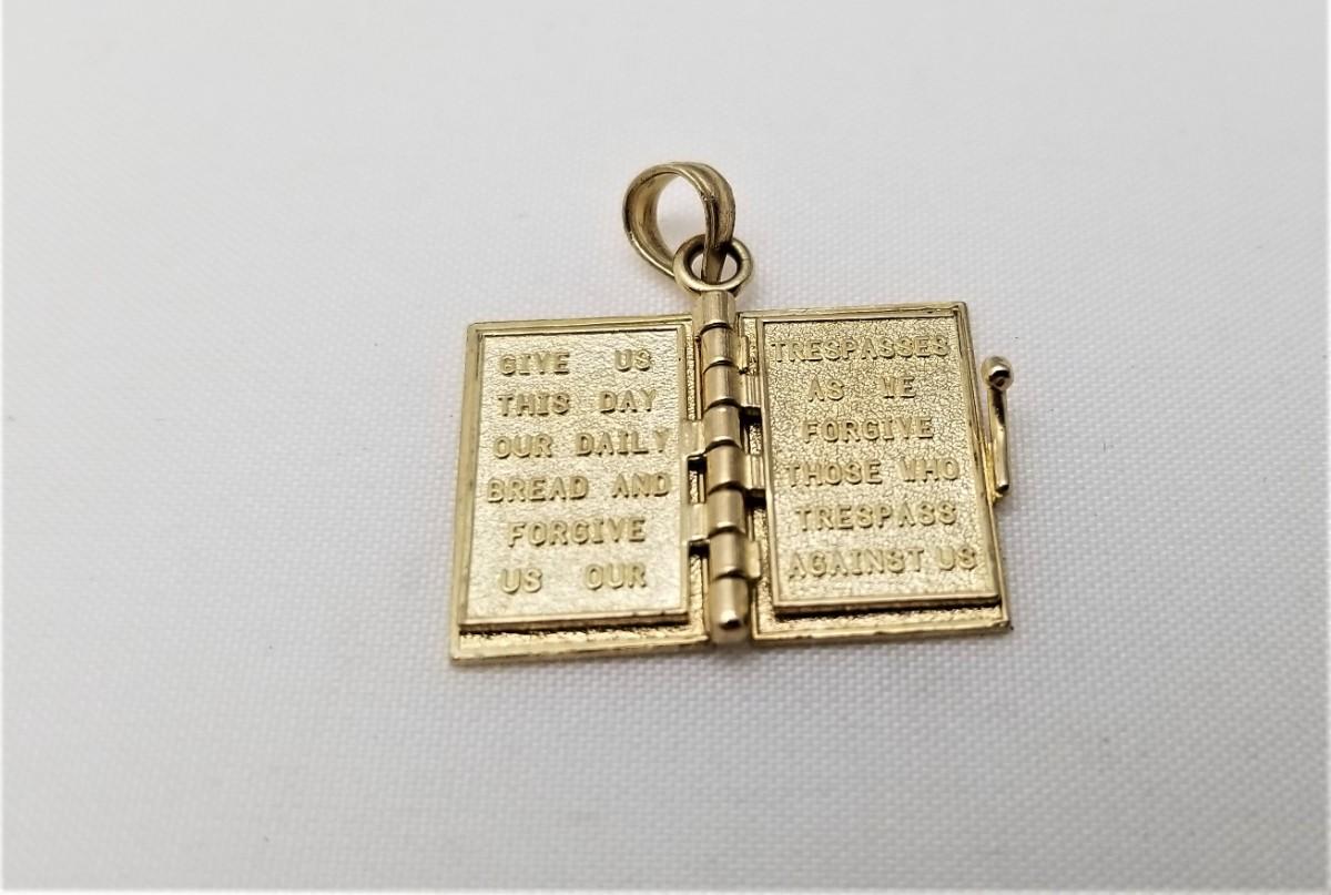 This 14kt gold charm opens - has four "pages" with the complete text of the Lord's Prayer. Vintage charms like this are hard to find. Great condition. Note: There is a reasonable reserve on this item.
