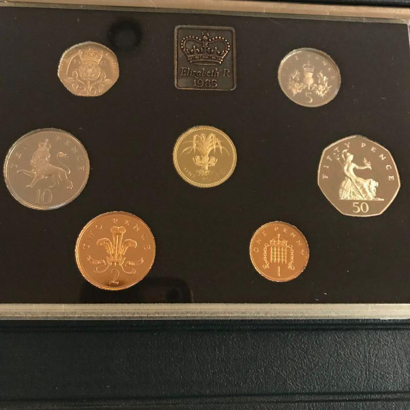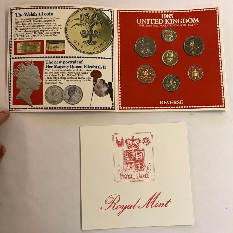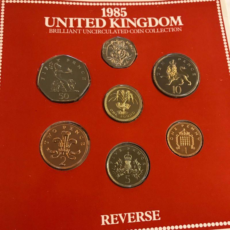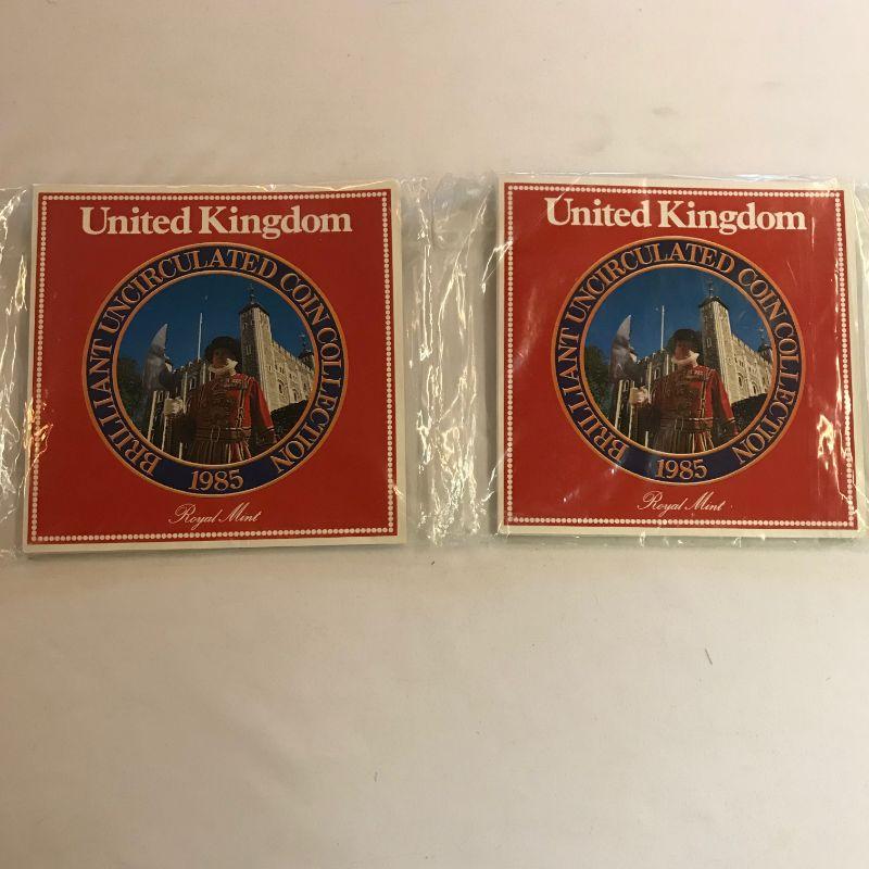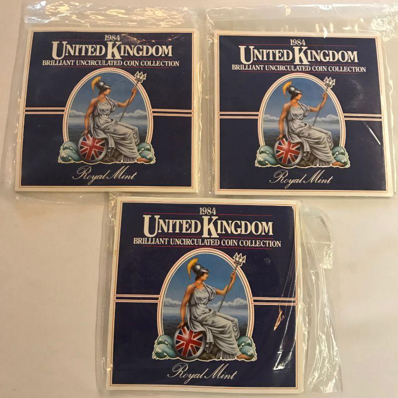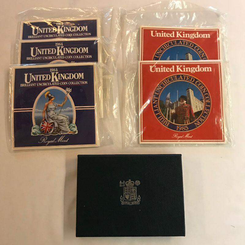 Three 1984 UK Mint Sets. Two 1985 Mint Sets. One 1985 Proof Set.