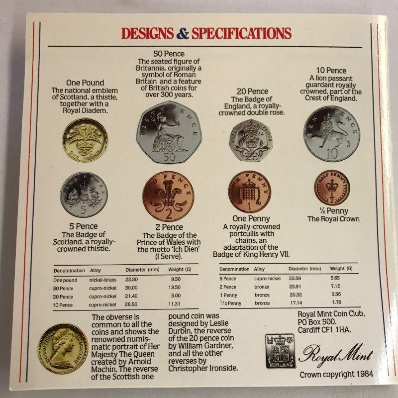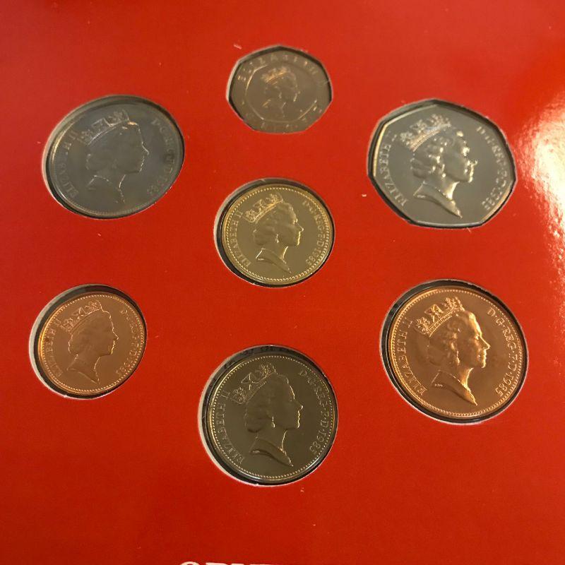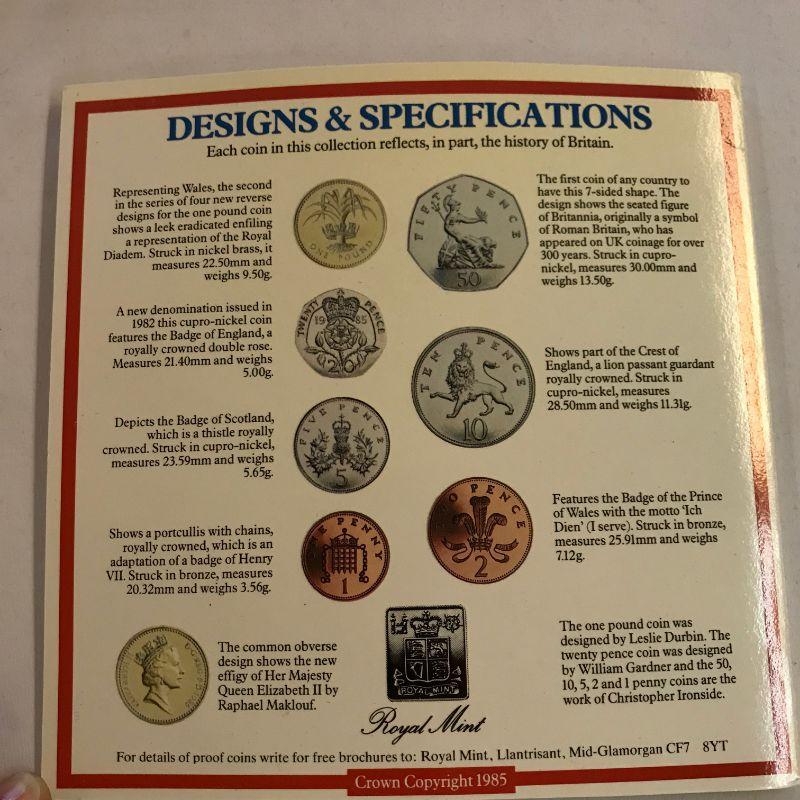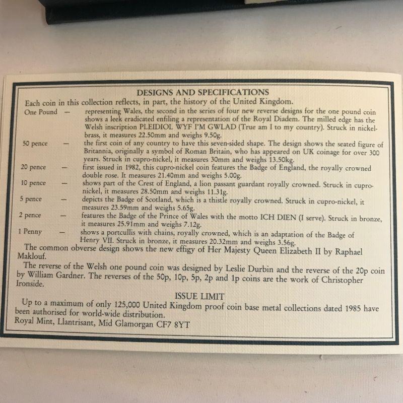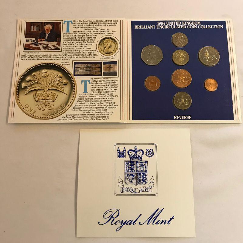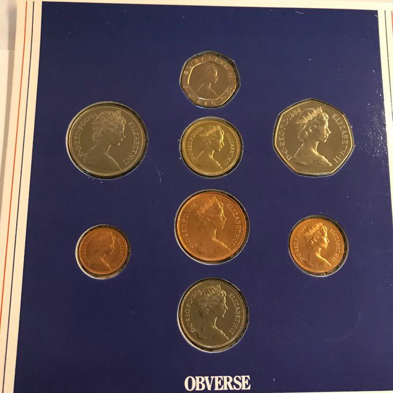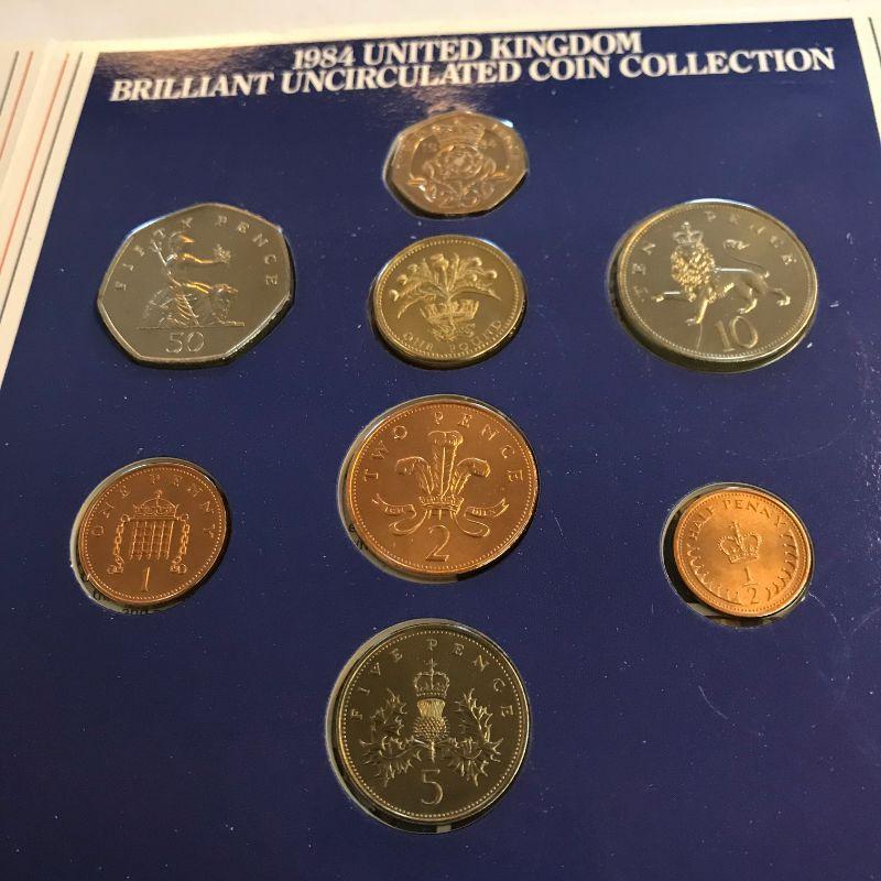 Three 1984 UK Mint Sets. Two 1985 Mint Sets. One 1985 Proof Set.