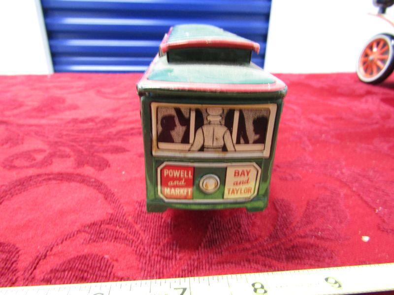 LOT 102  VINTAGE TOY JALOPY AND TROLLEY CAR