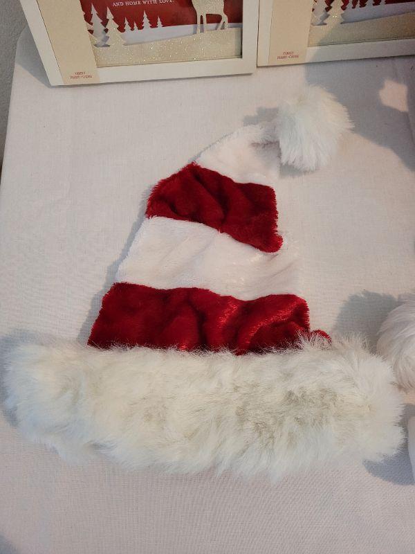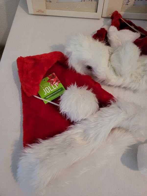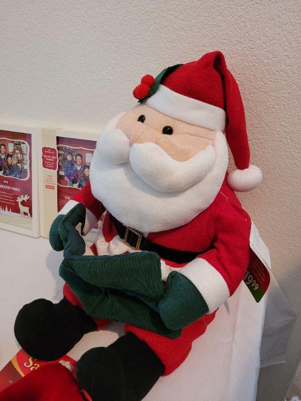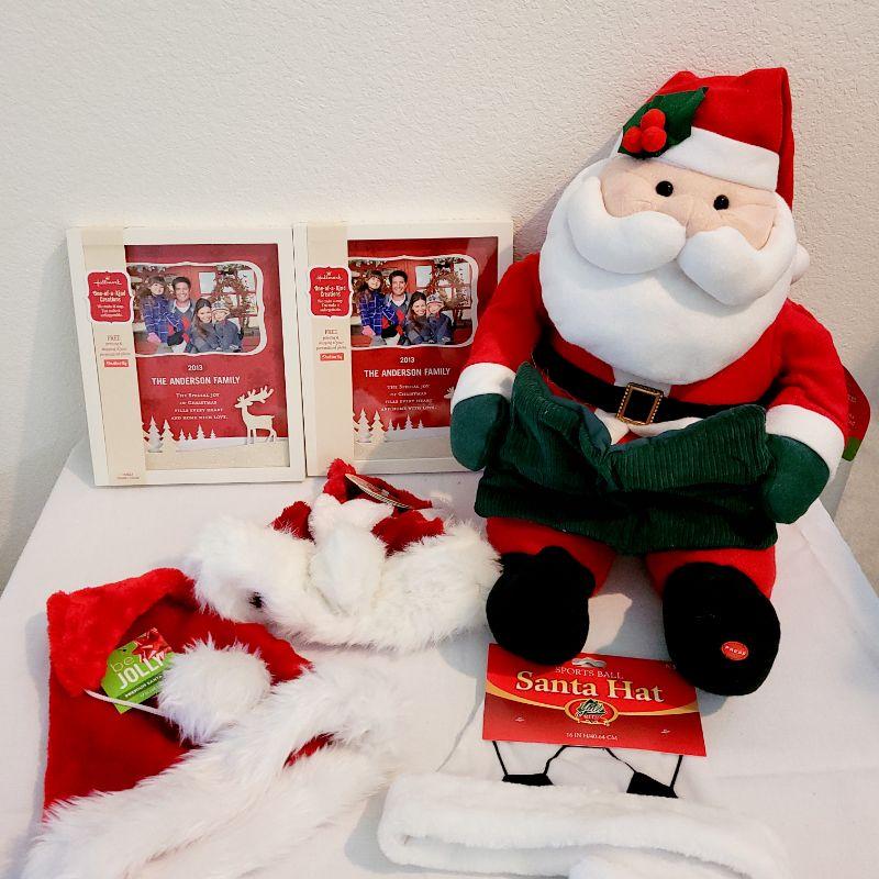 Lot 102: NEW Santa Hats (3), Santa Animated Plushie, and (2) Picture Frames