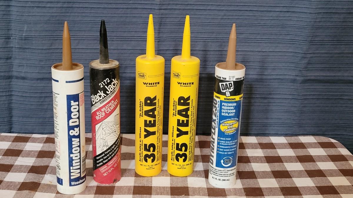 Lot 102: Window Sealant, (2) White Silicone, All Weather Roof Cement ect.