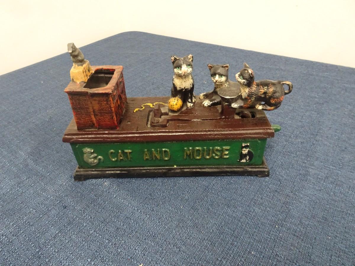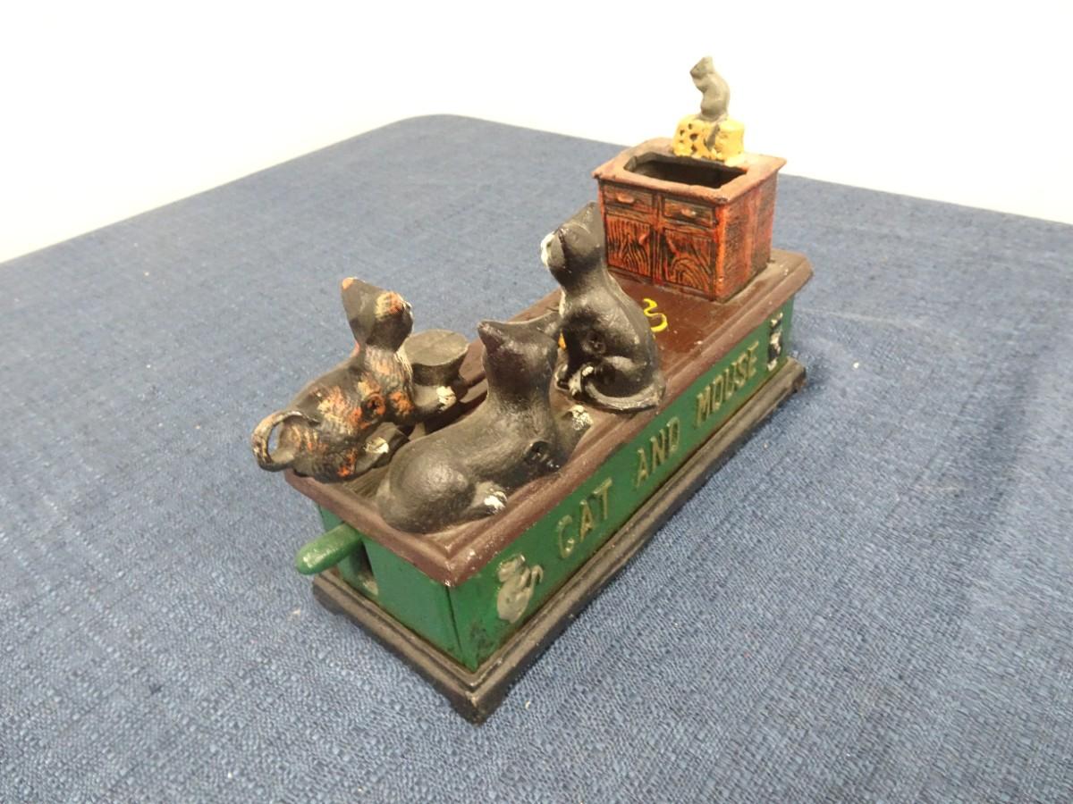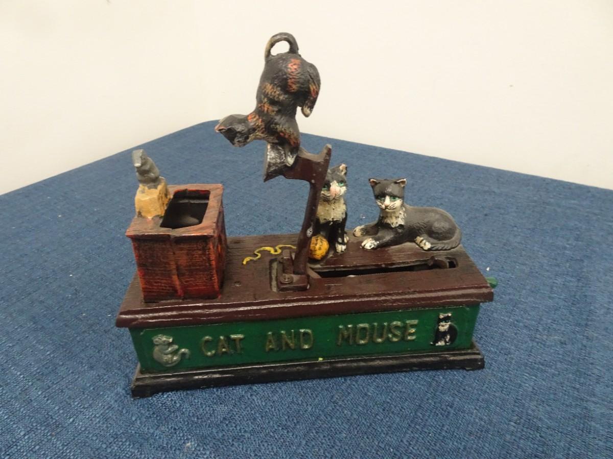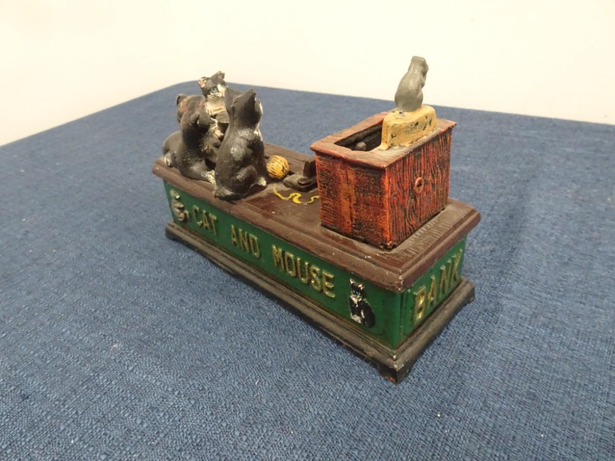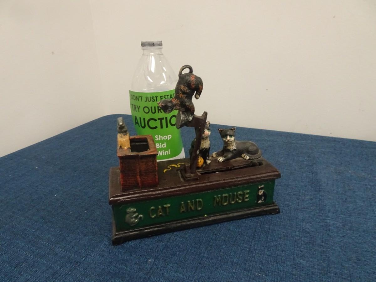 LOT 102 VINTAGE DIE CAST METAL CAT AND MOUSE BANK