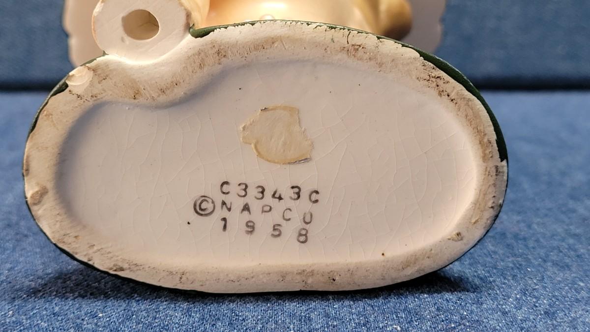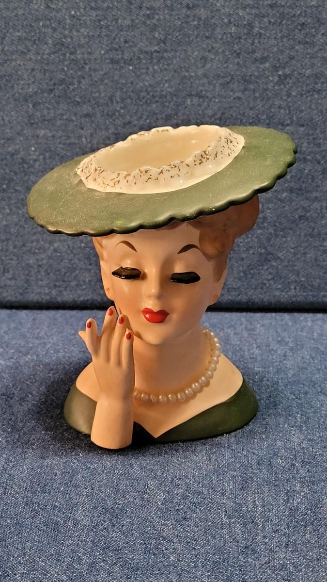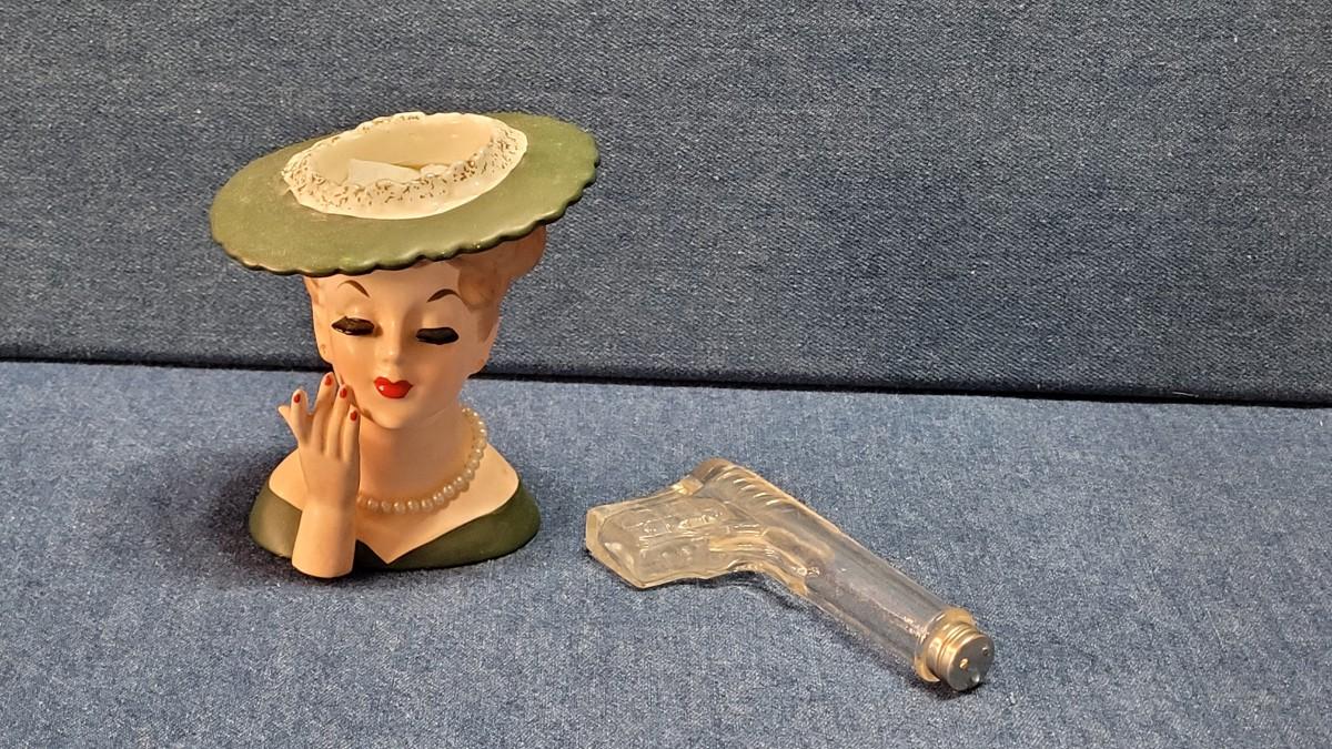 Lot 102: Vintage 1958 Napco Head Vase with Jewelry and Glass Gun Powder Bottle