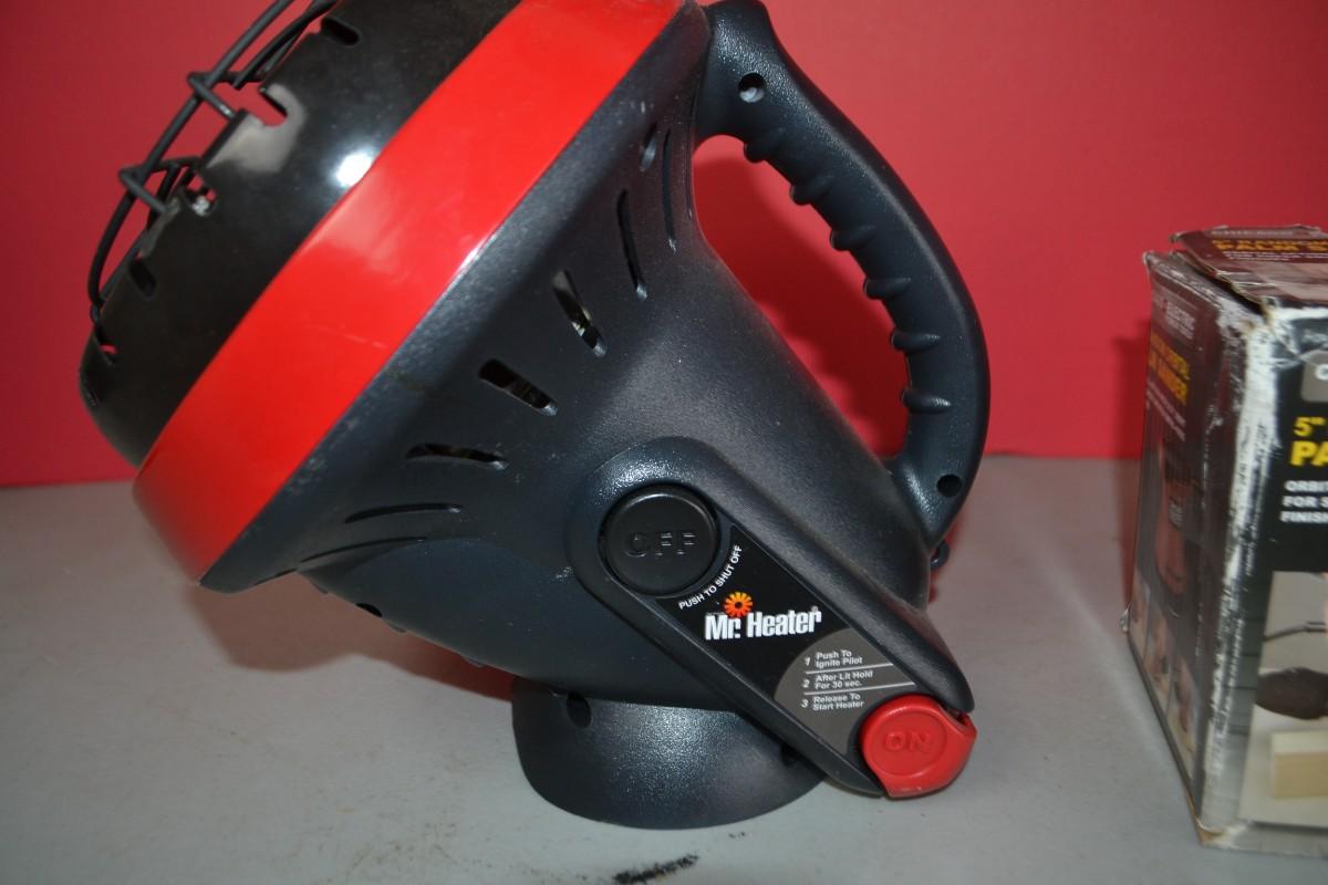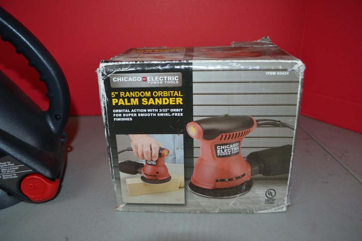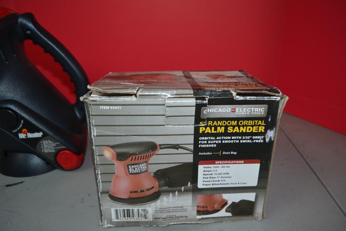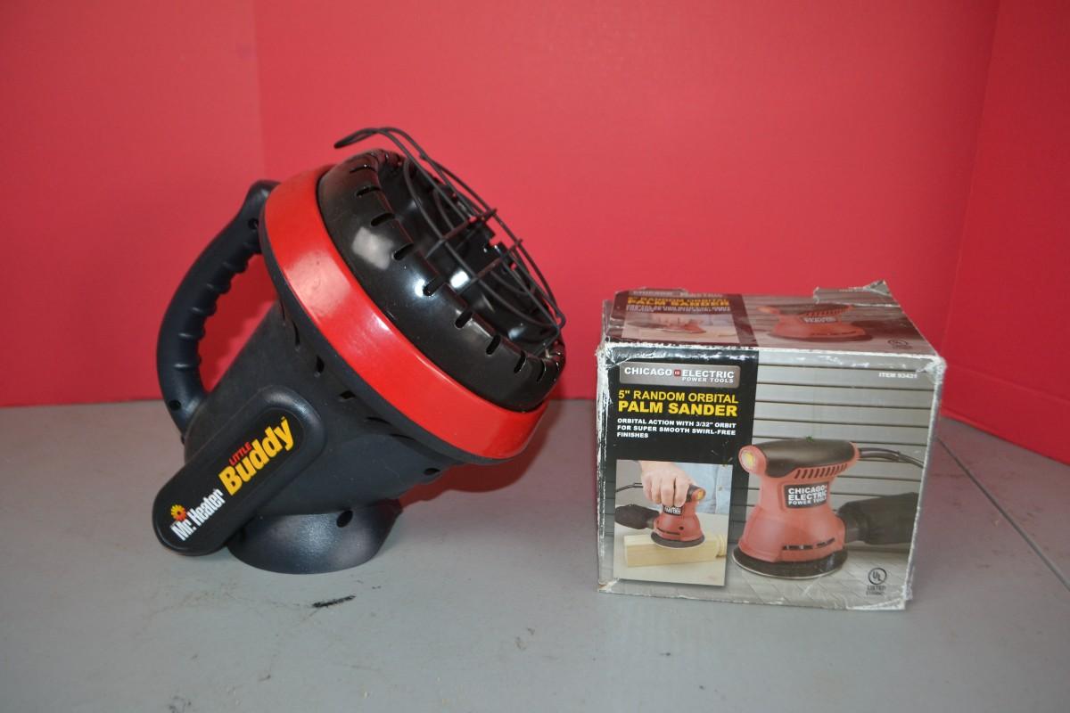 LOT 102. PORTABLE HEATER AND PALM SANDER