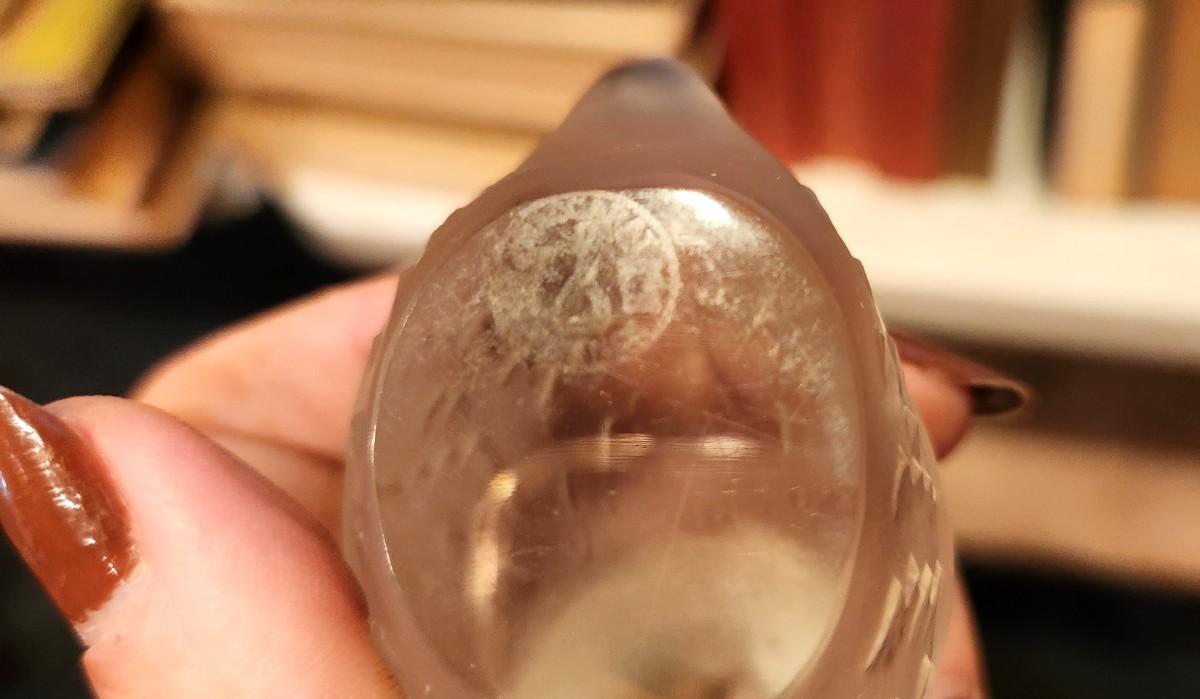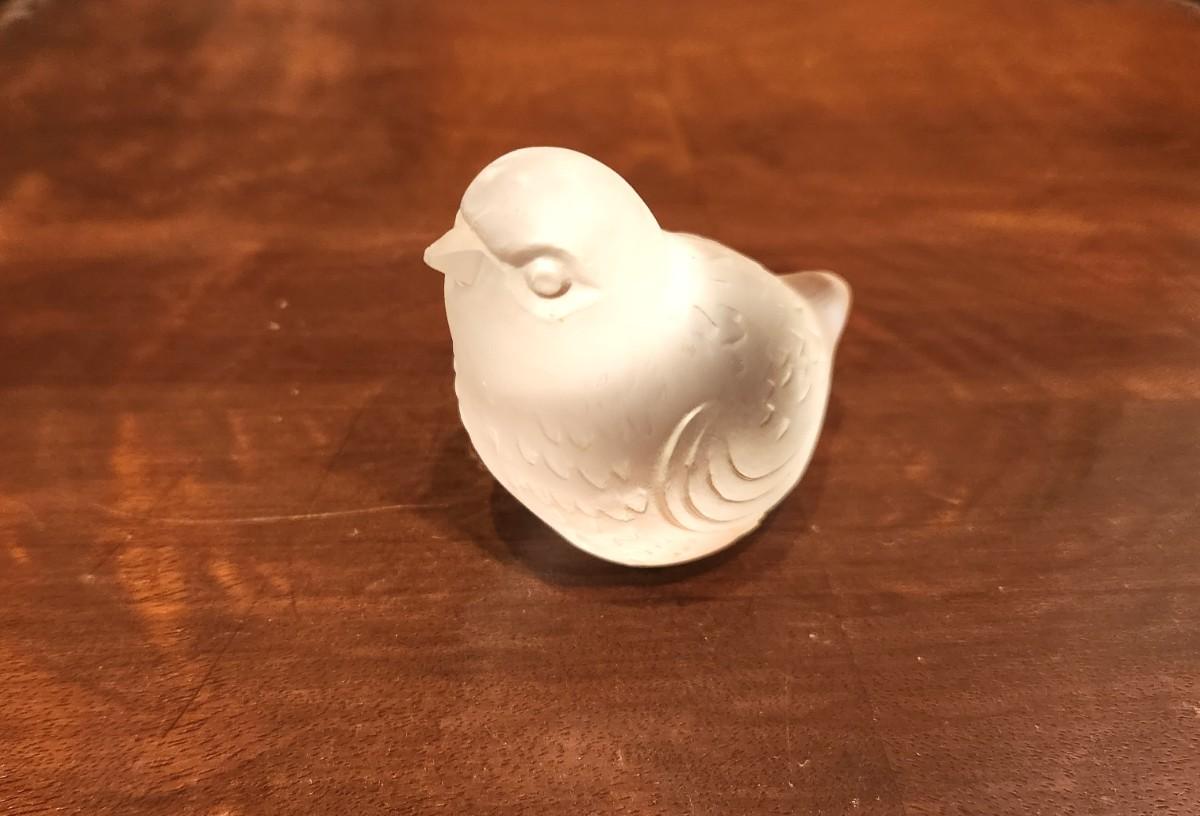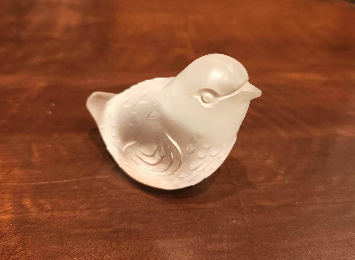 Baccarat (signed on bottom) crystal bird - frosted glass, 2 5/8" tall. This one is called the "heads up" chick.
