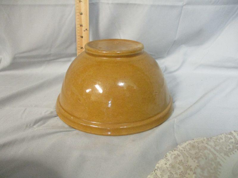 This bowl is in excellent shape with the only issue being three very small chips on the rim. It's ready to hold your popcorn or salad. It is 4.5" tall and 9.25" in diameter.