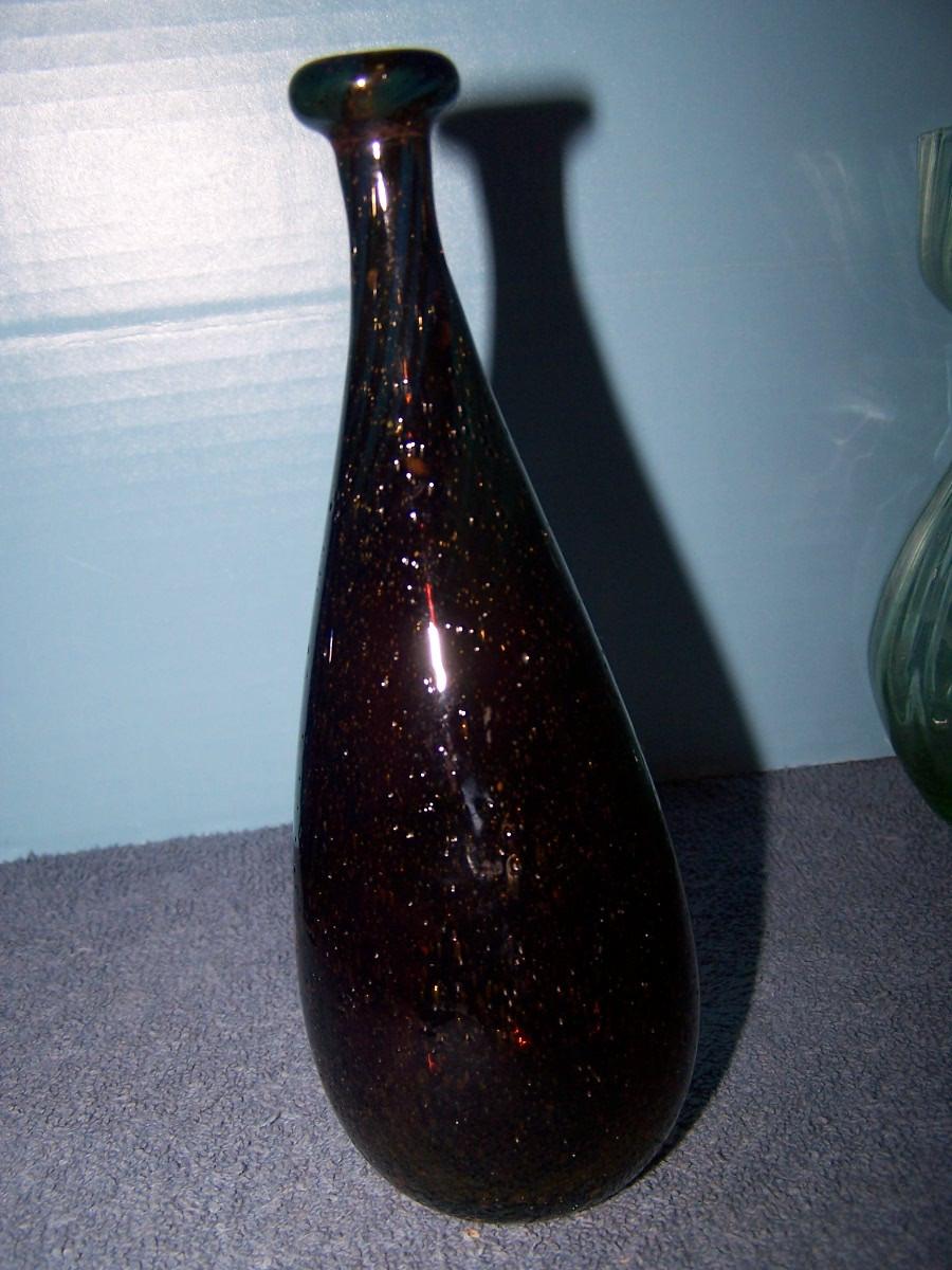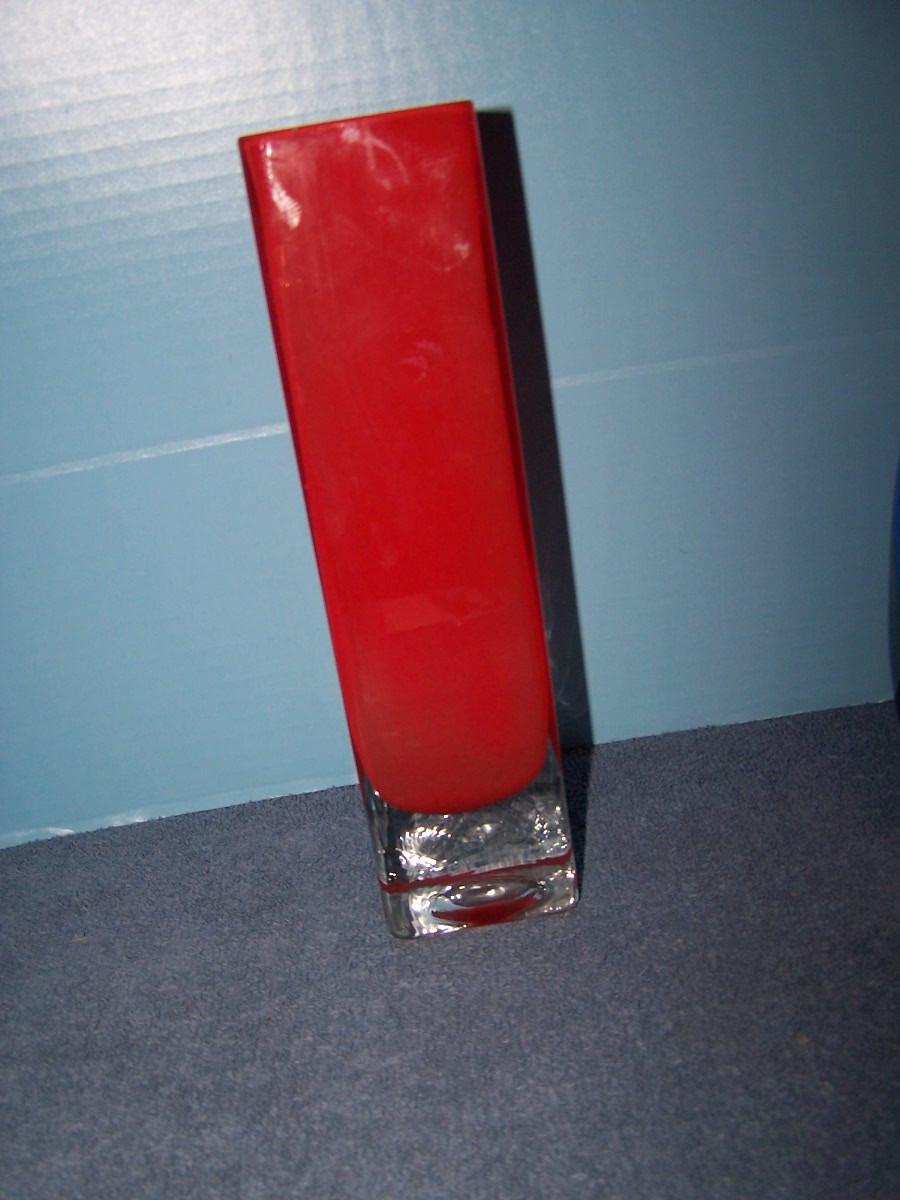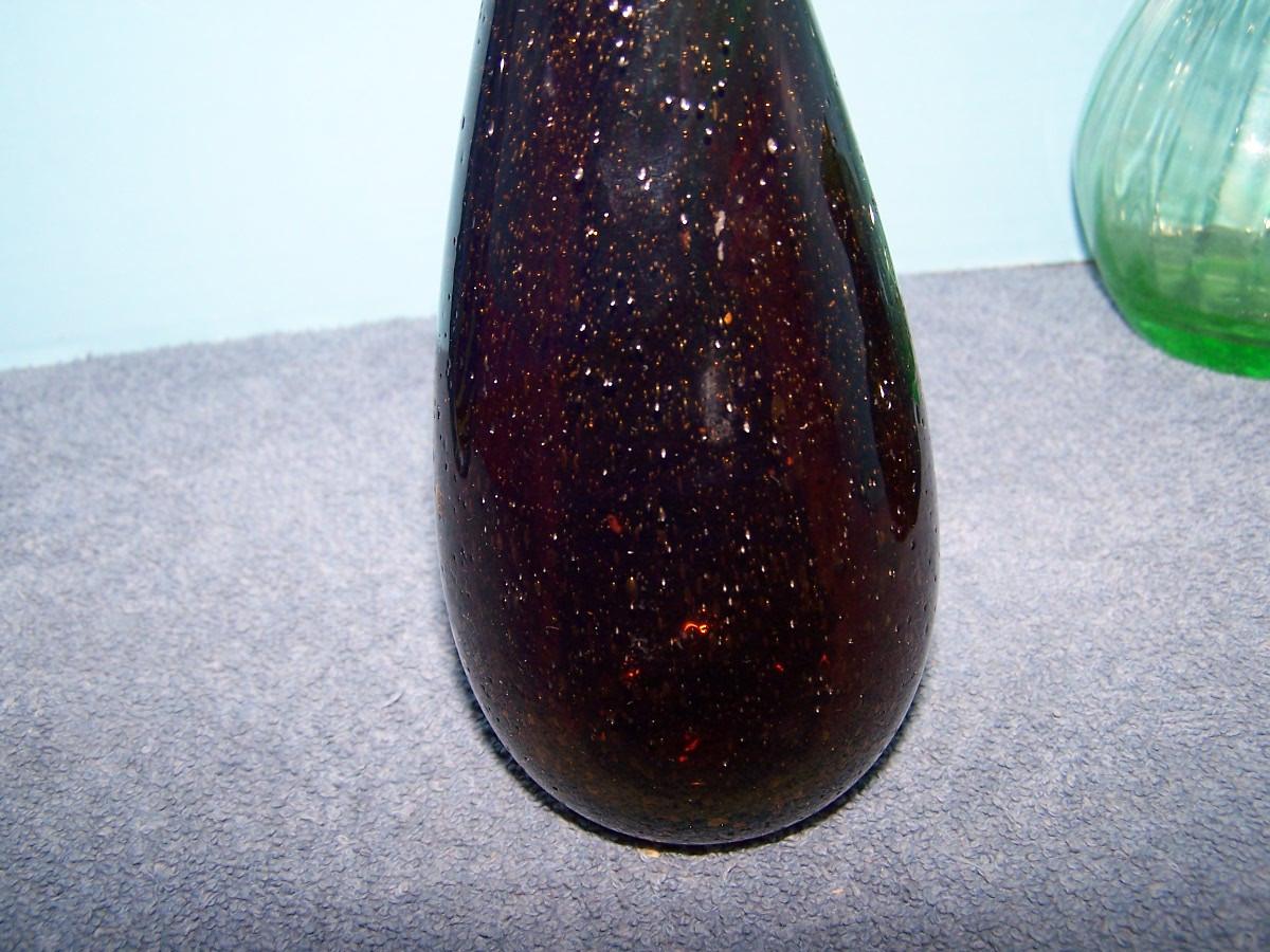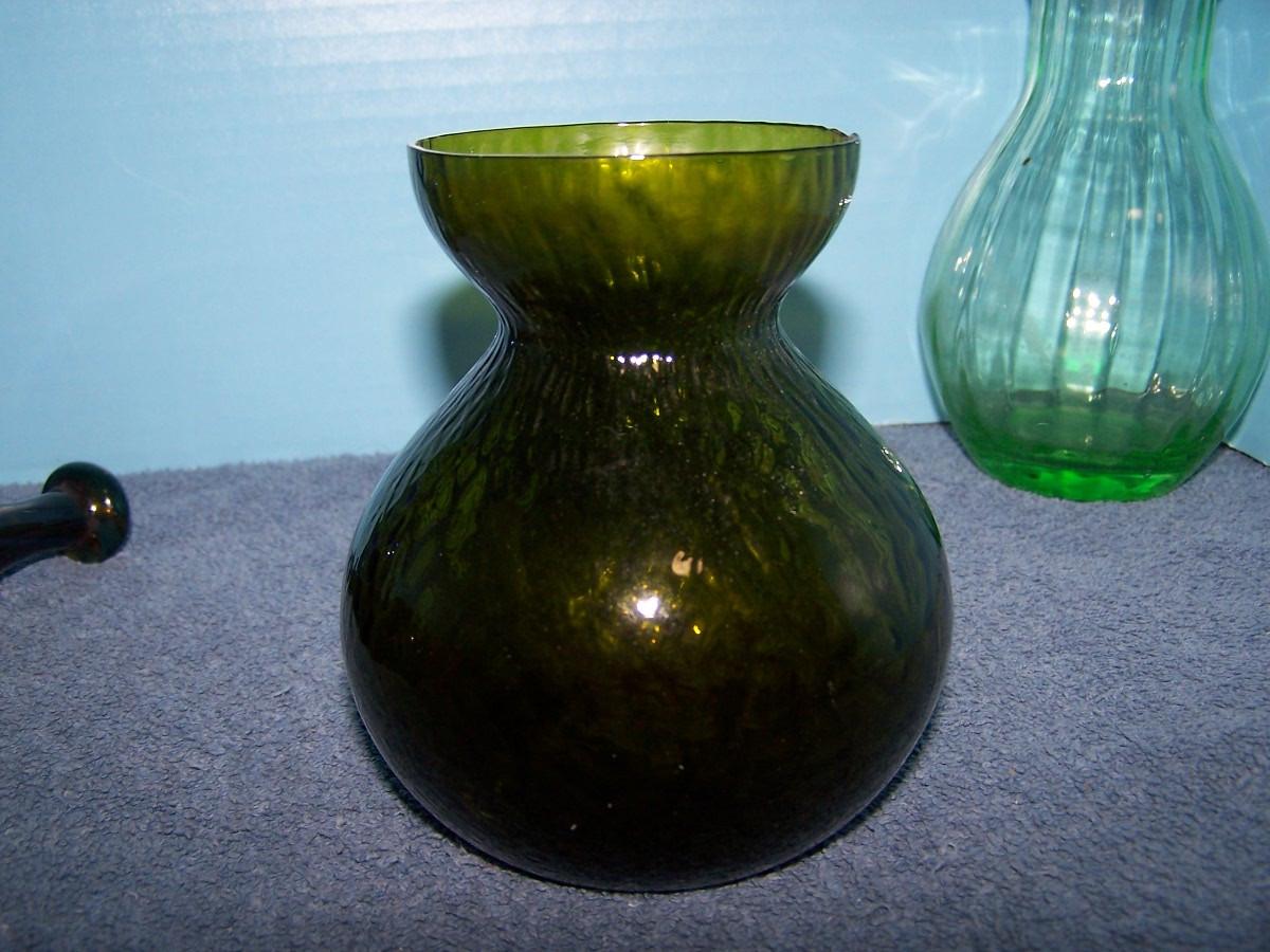 SOME BEAUTIFUL VINTAGE MCM ART GLASS, PLUS 2 TULIP VASES!!! UNMARKED.. BLUE/YELLOW SWIRL-8'' TALL.. LIGHT WEAR.
